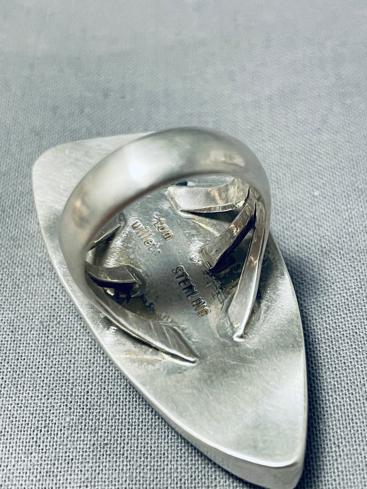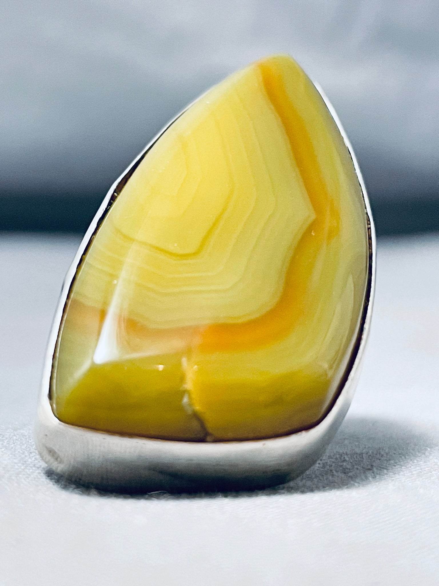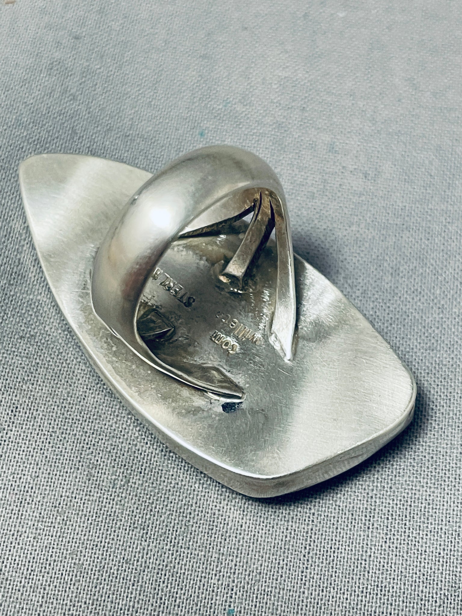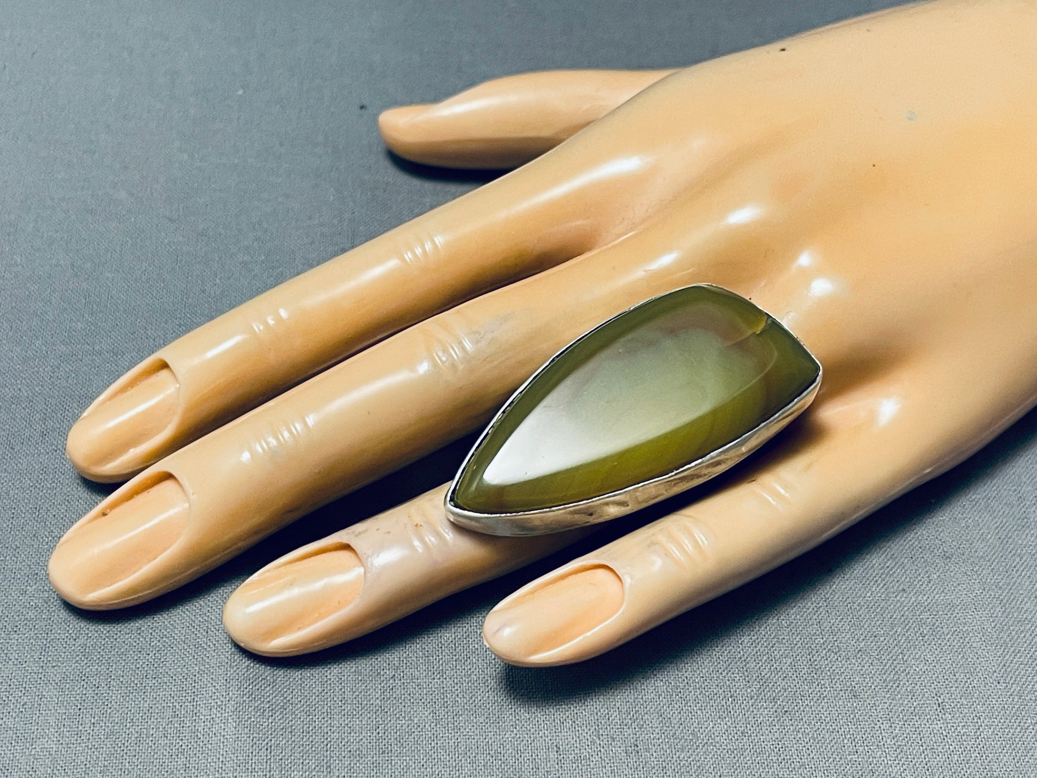 Astonishing Native American Navajo Green Agate Sterling Silver Ring Signed