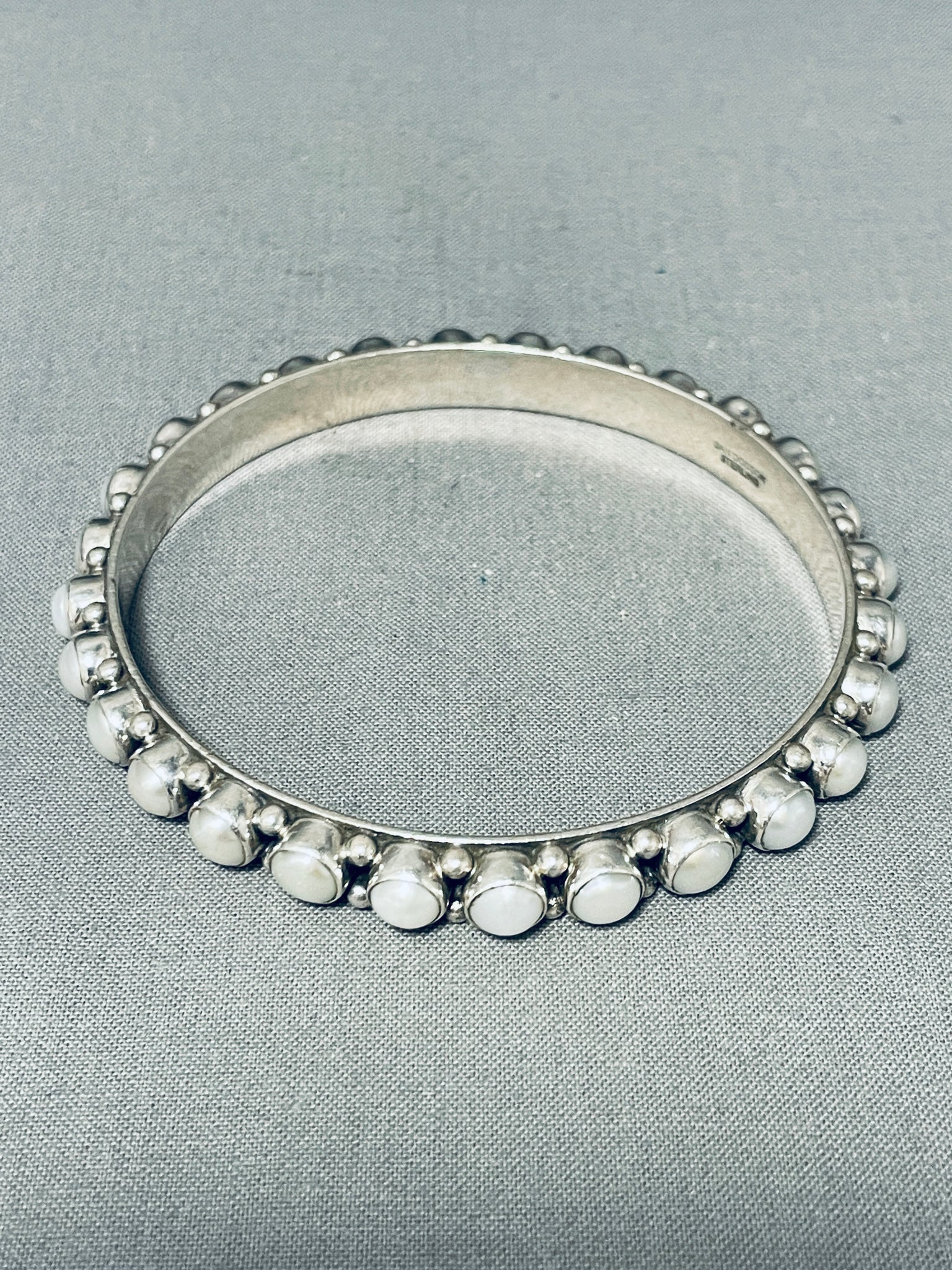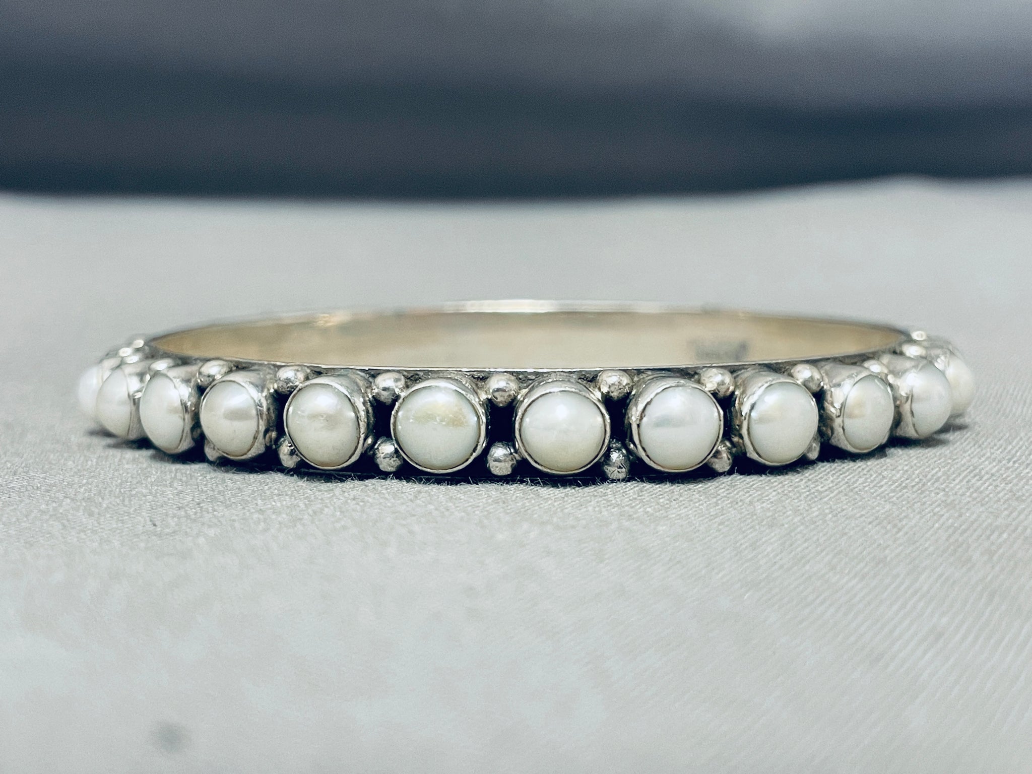 Astonishing Native American Navajo Pearl Sterling Silver Bangle Bracelet Signed