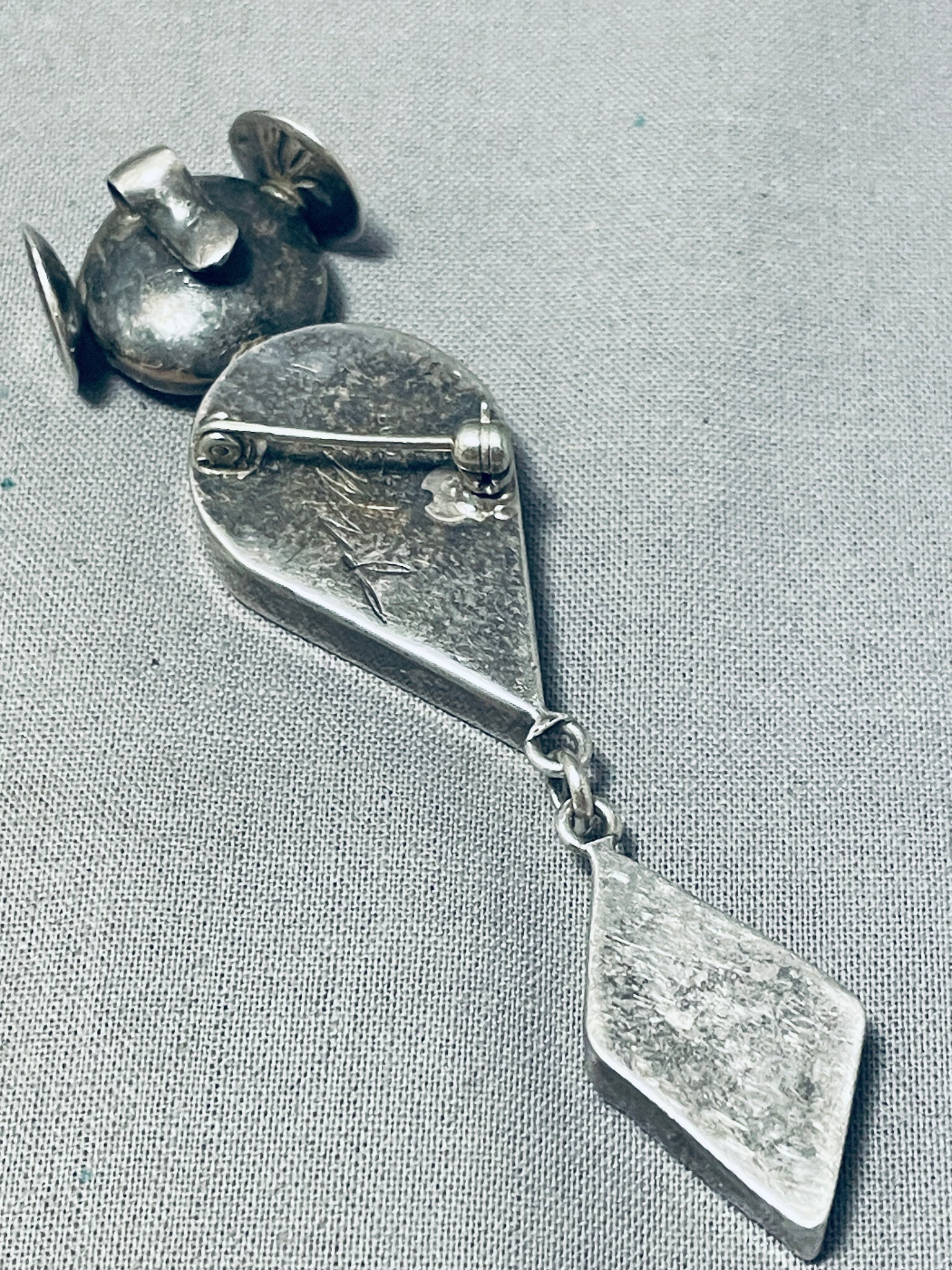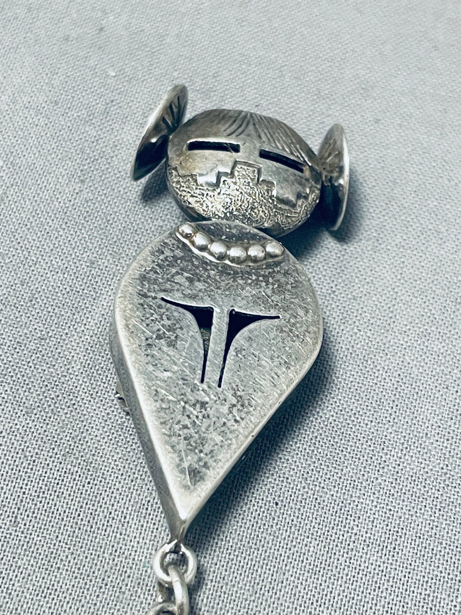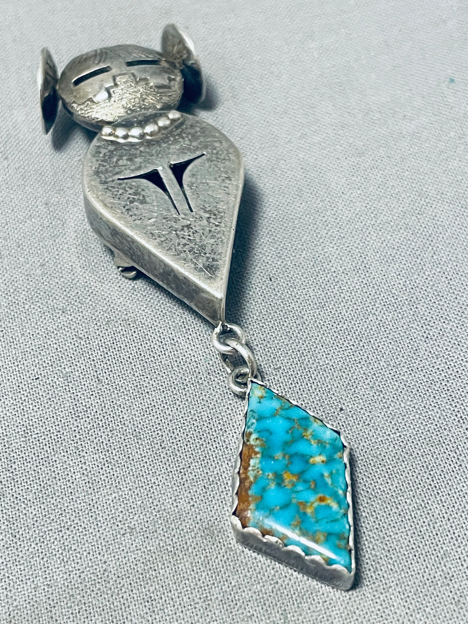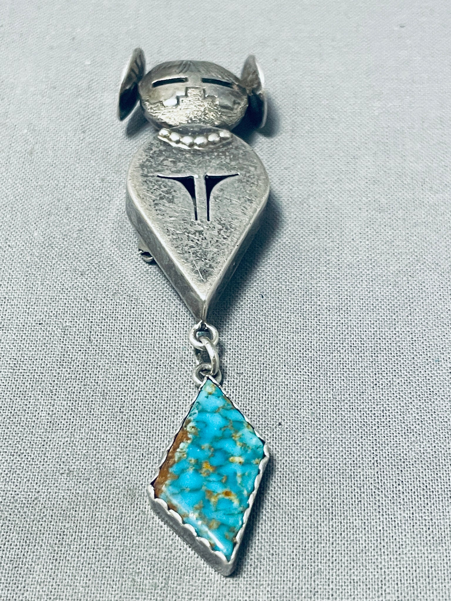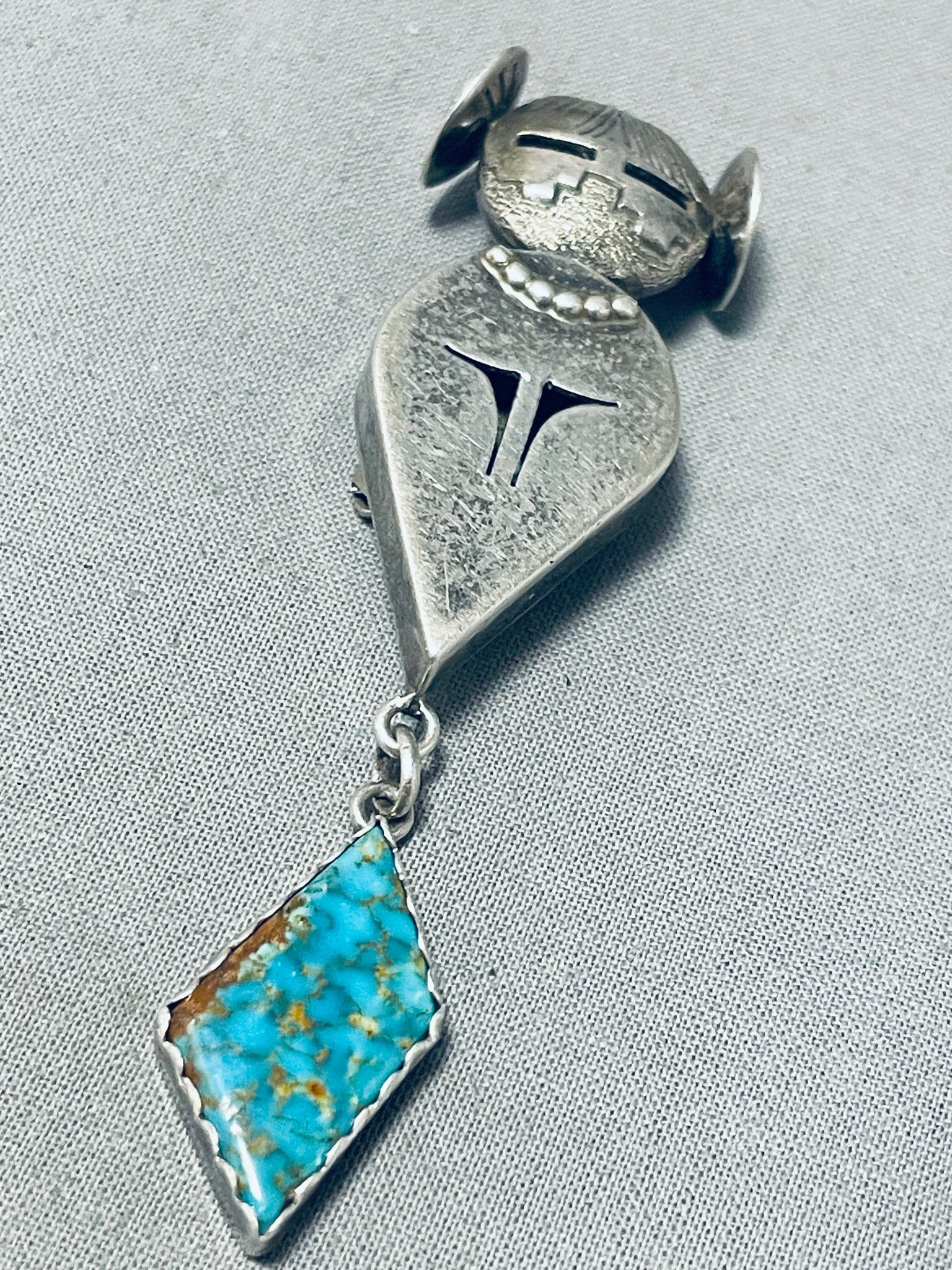 Astonishing Native American Navajo Spiderweb Turquoise Sterling Silver Kachina Pin/ Pendant