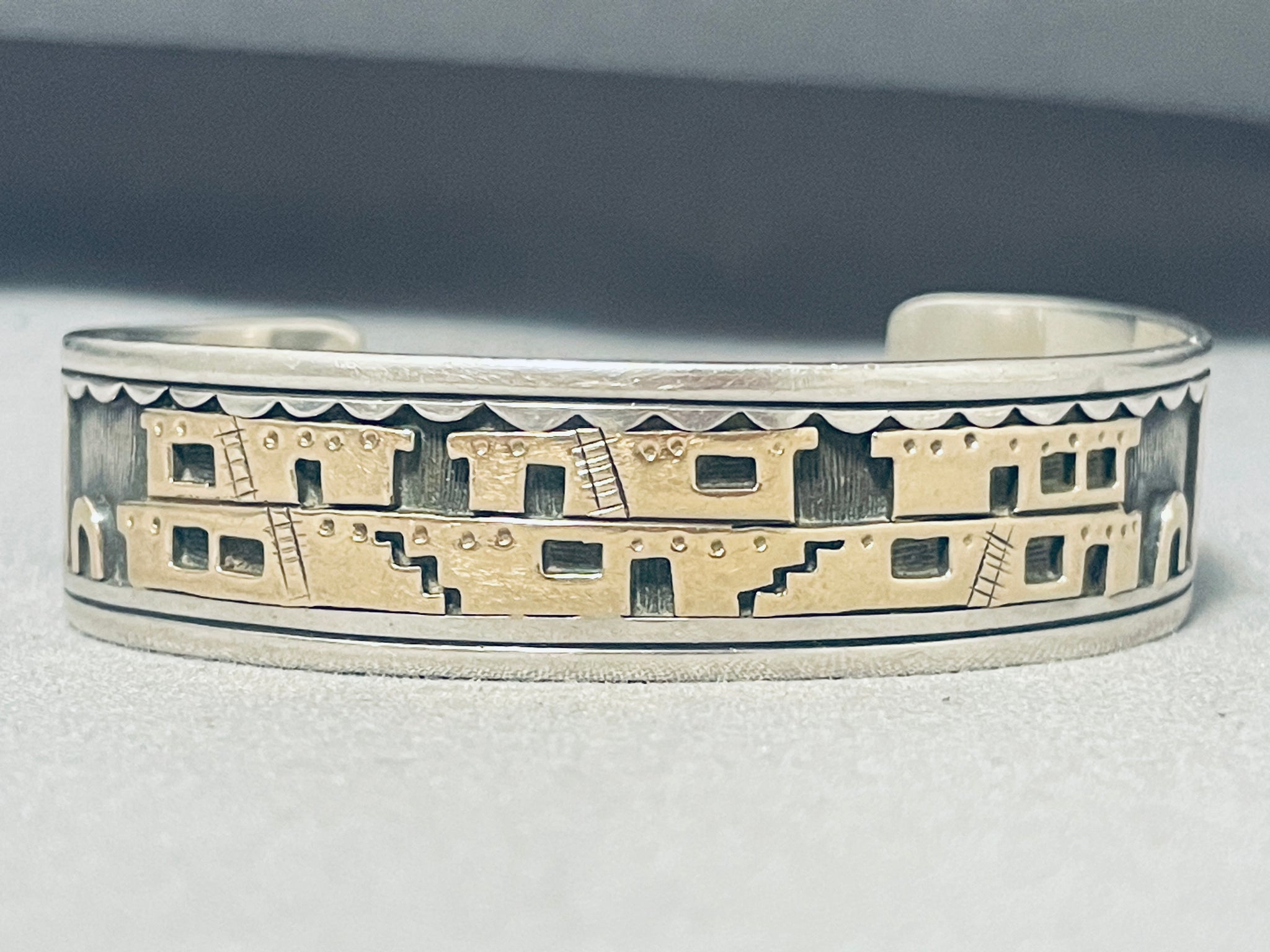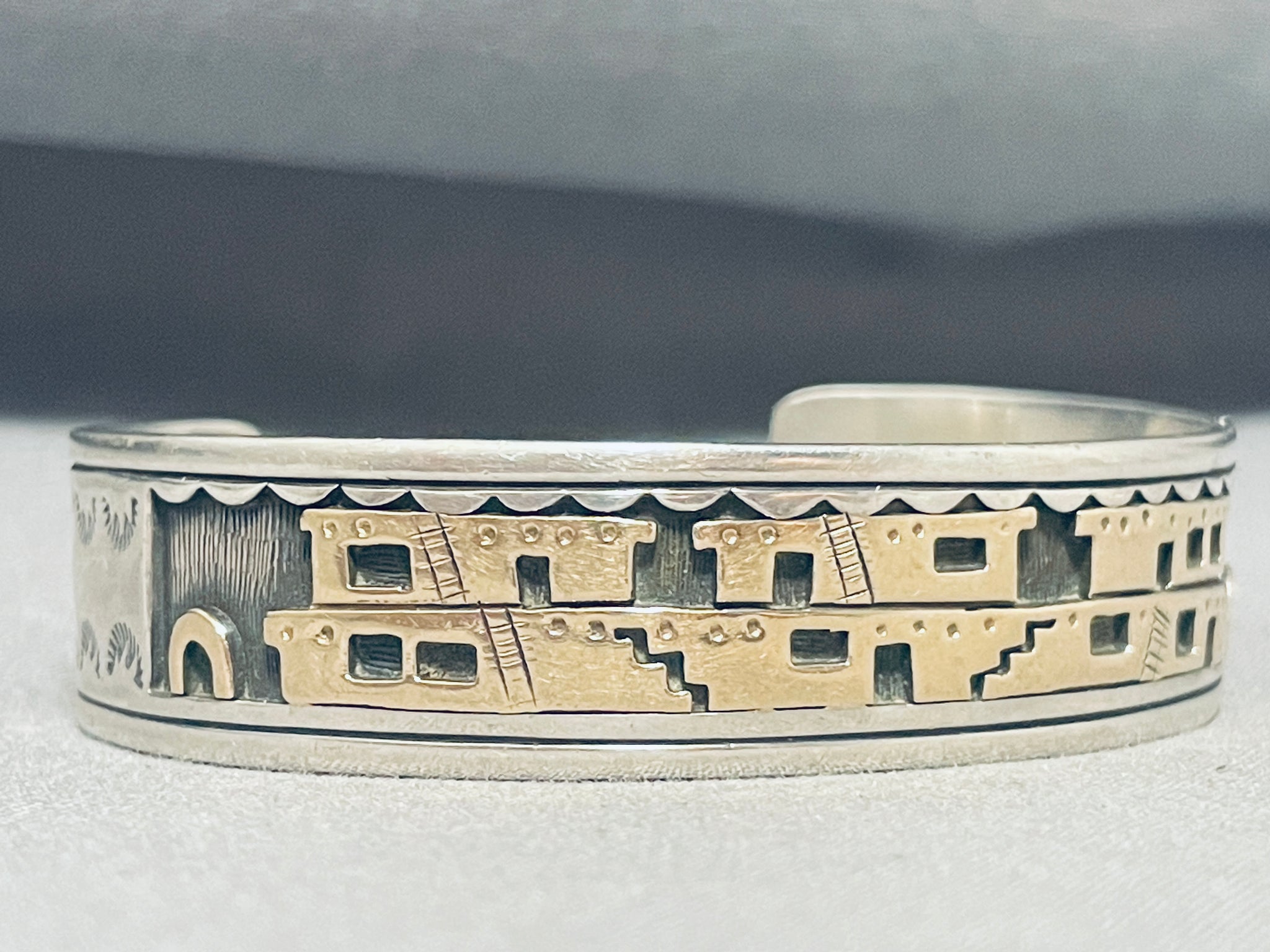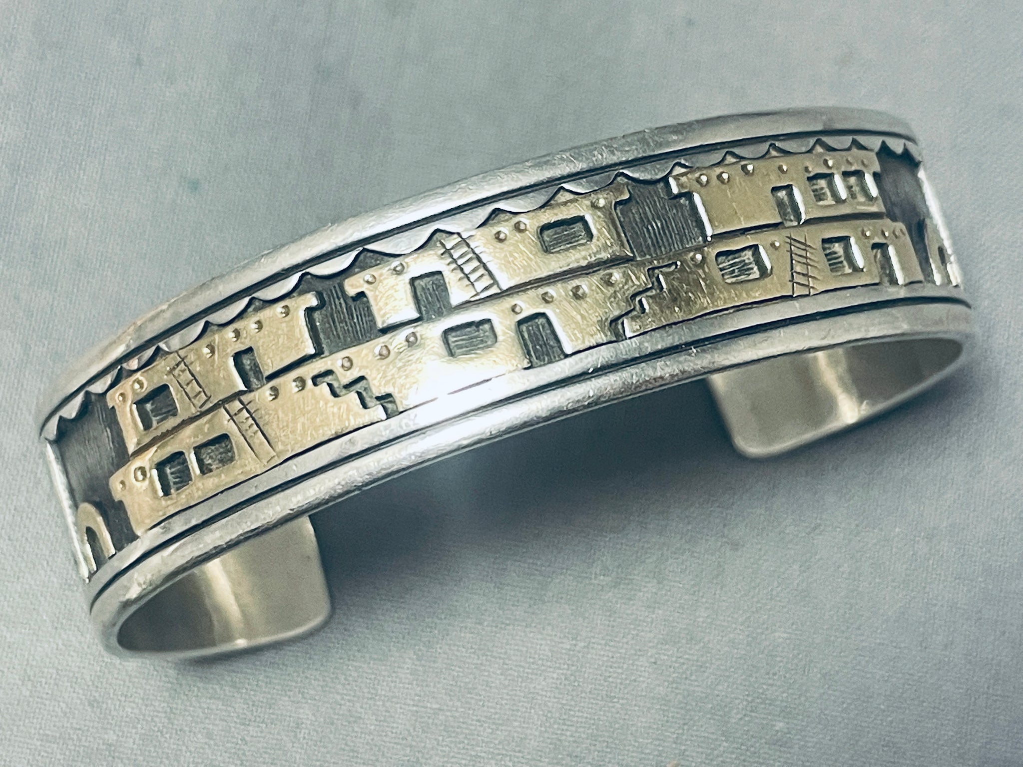 Astonishing Native American Navajo Sterling Silver 14k Gold Storyteller Bracelet