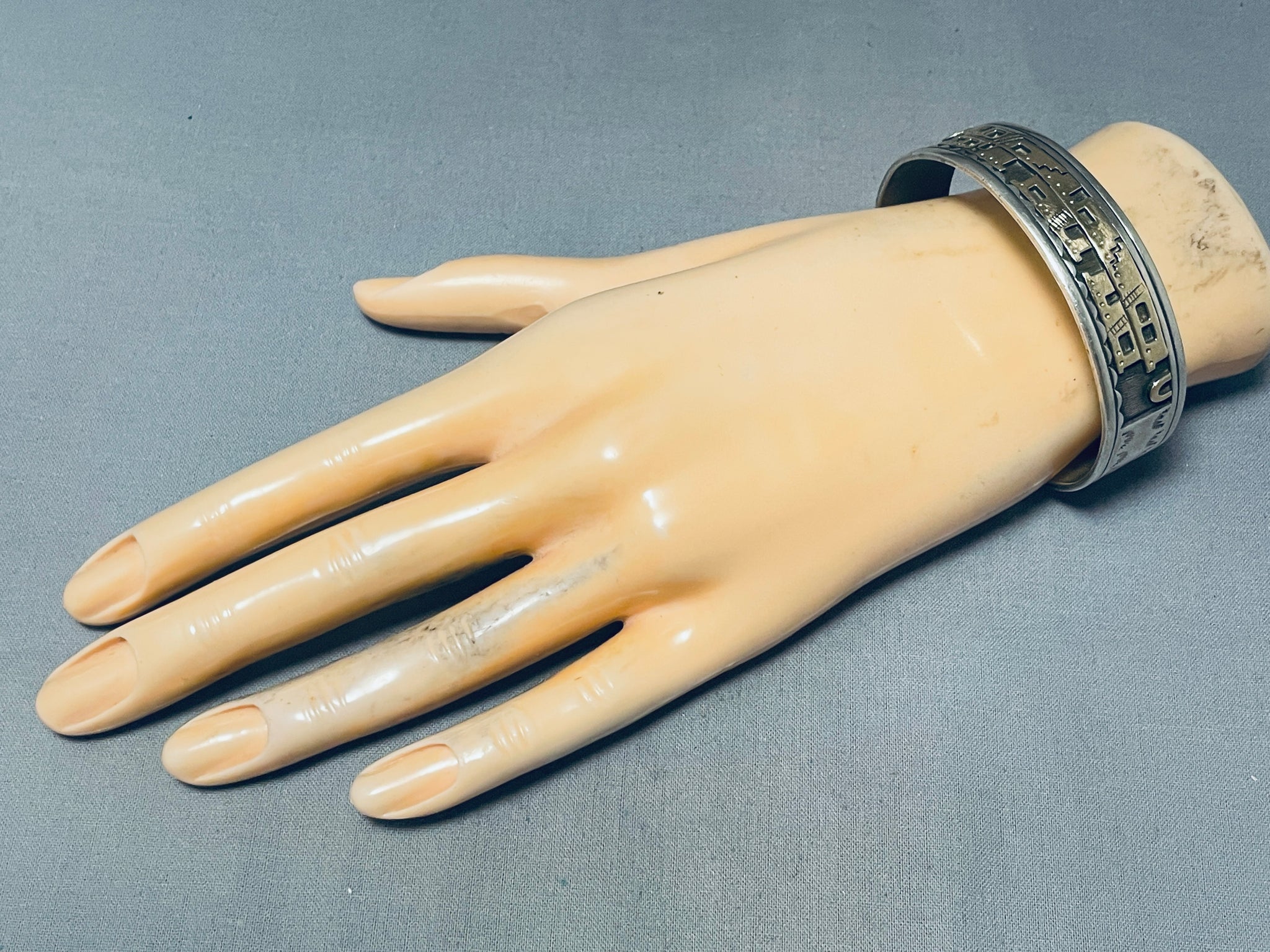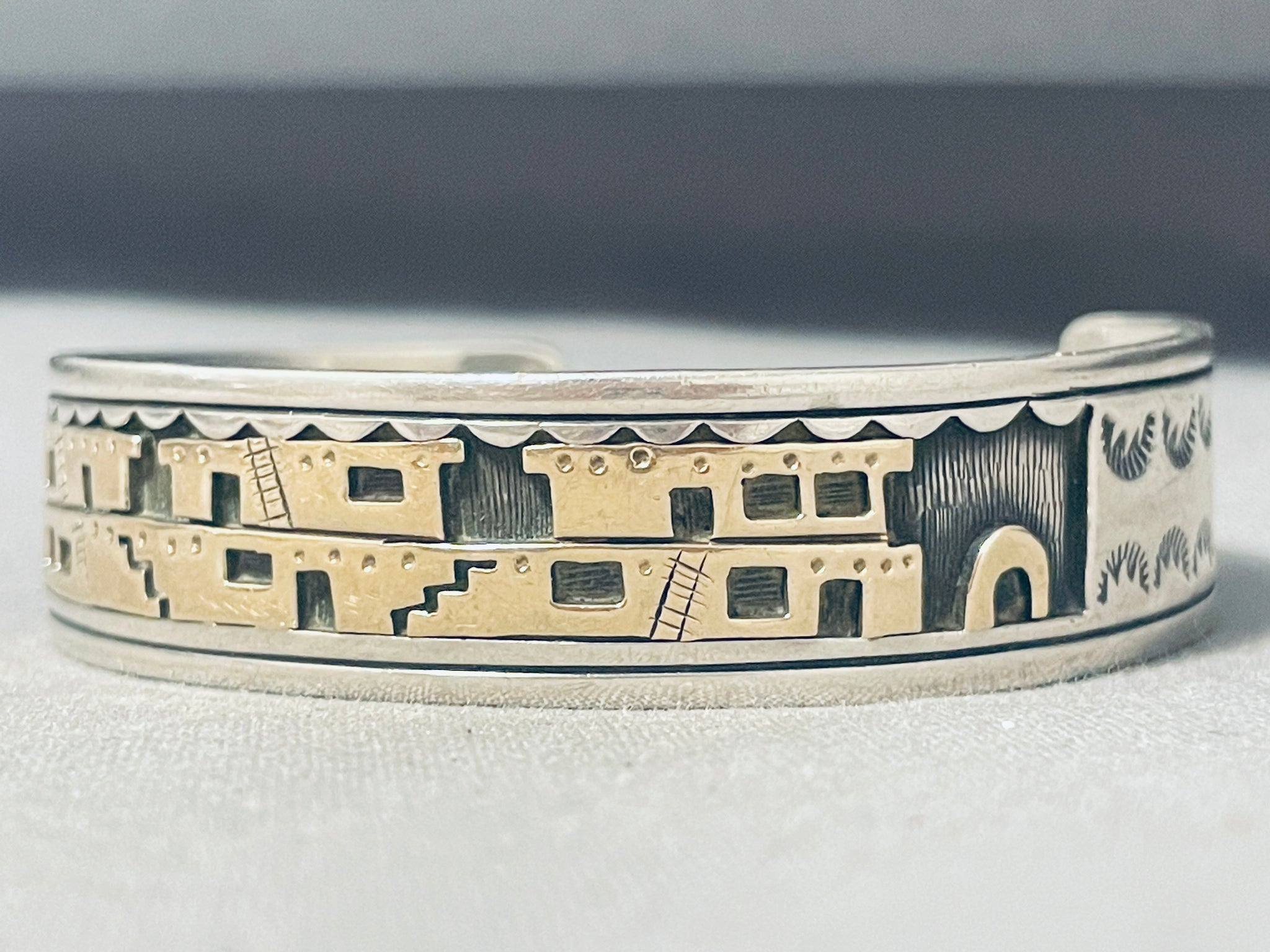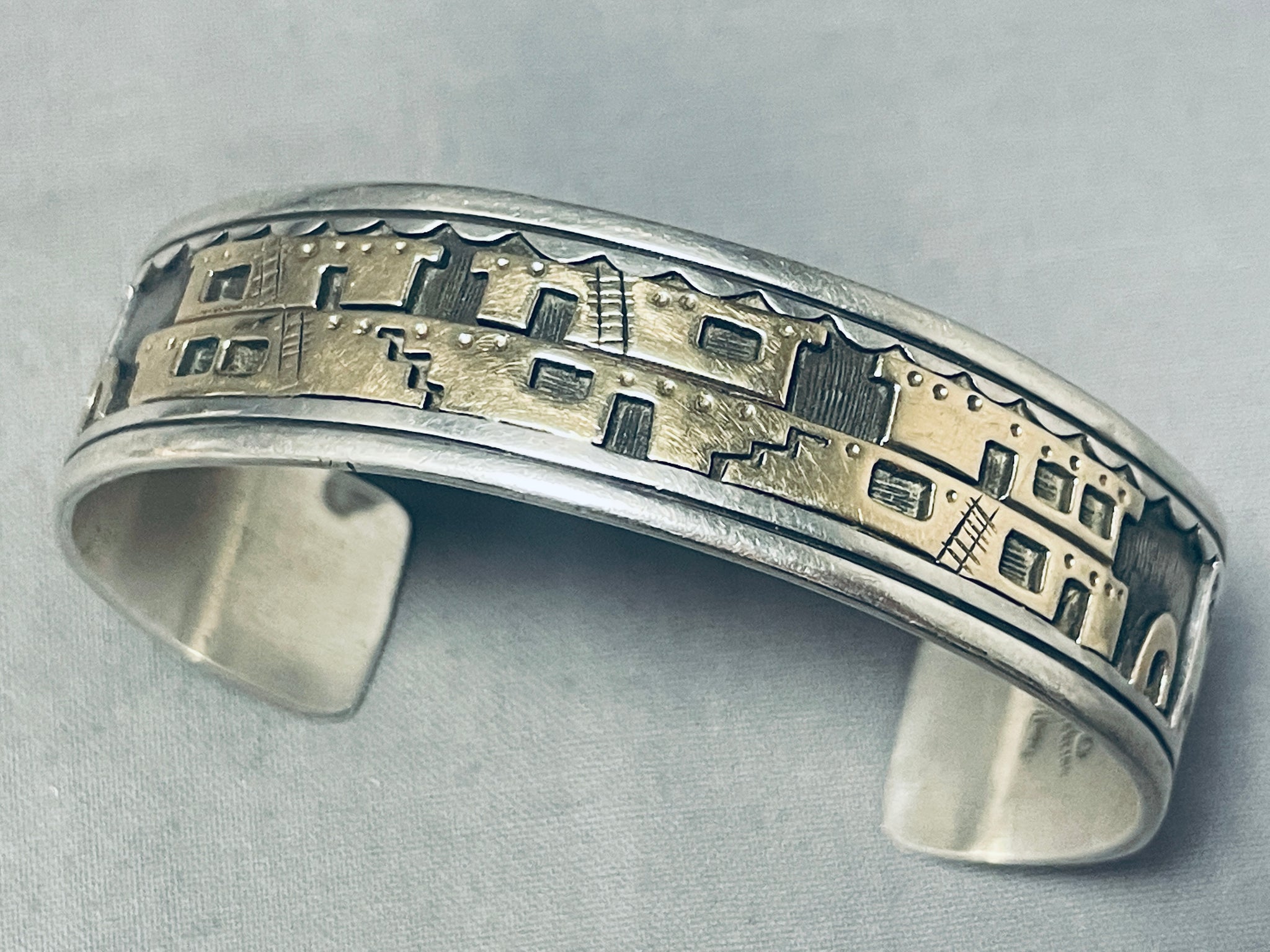 Astonishing Native American Navajo Sterling Silver 14k Gold Storyteller Bracelet