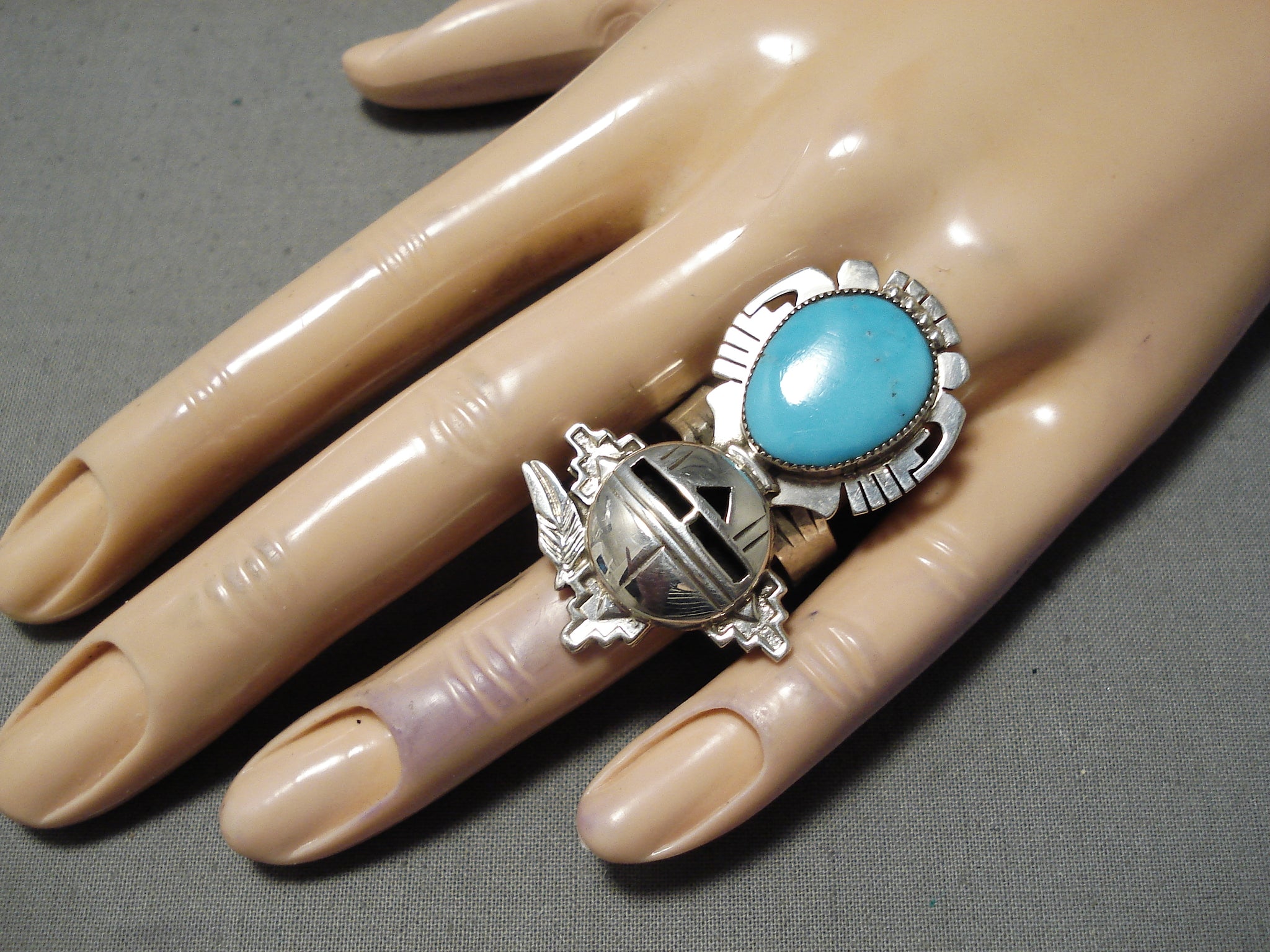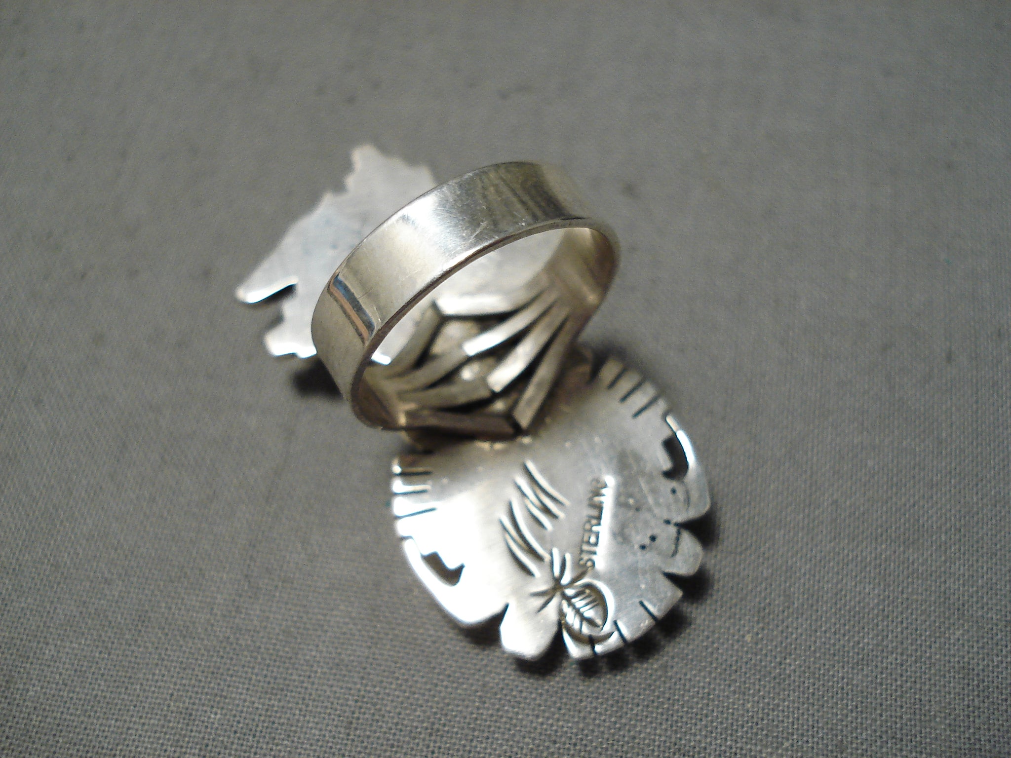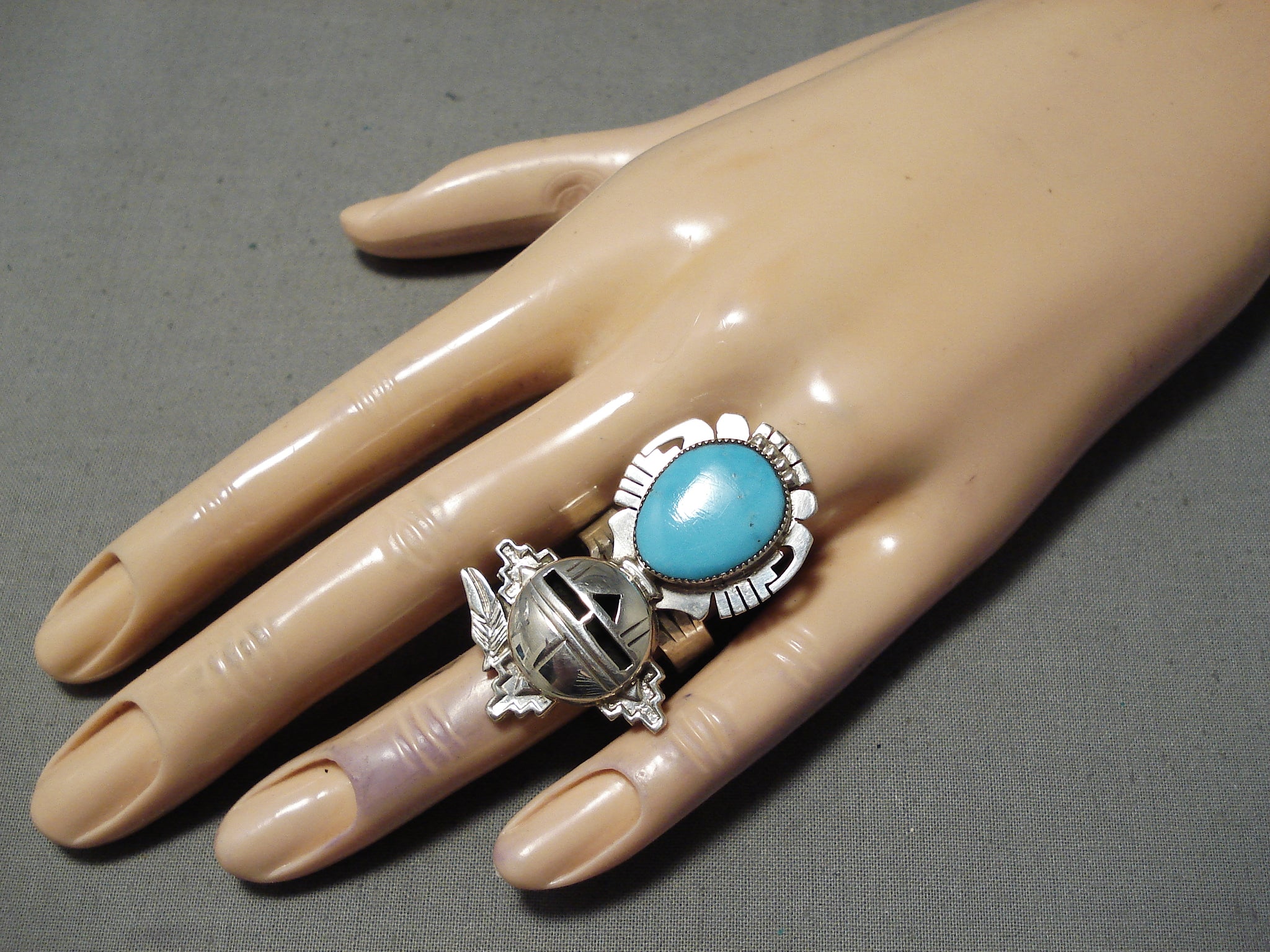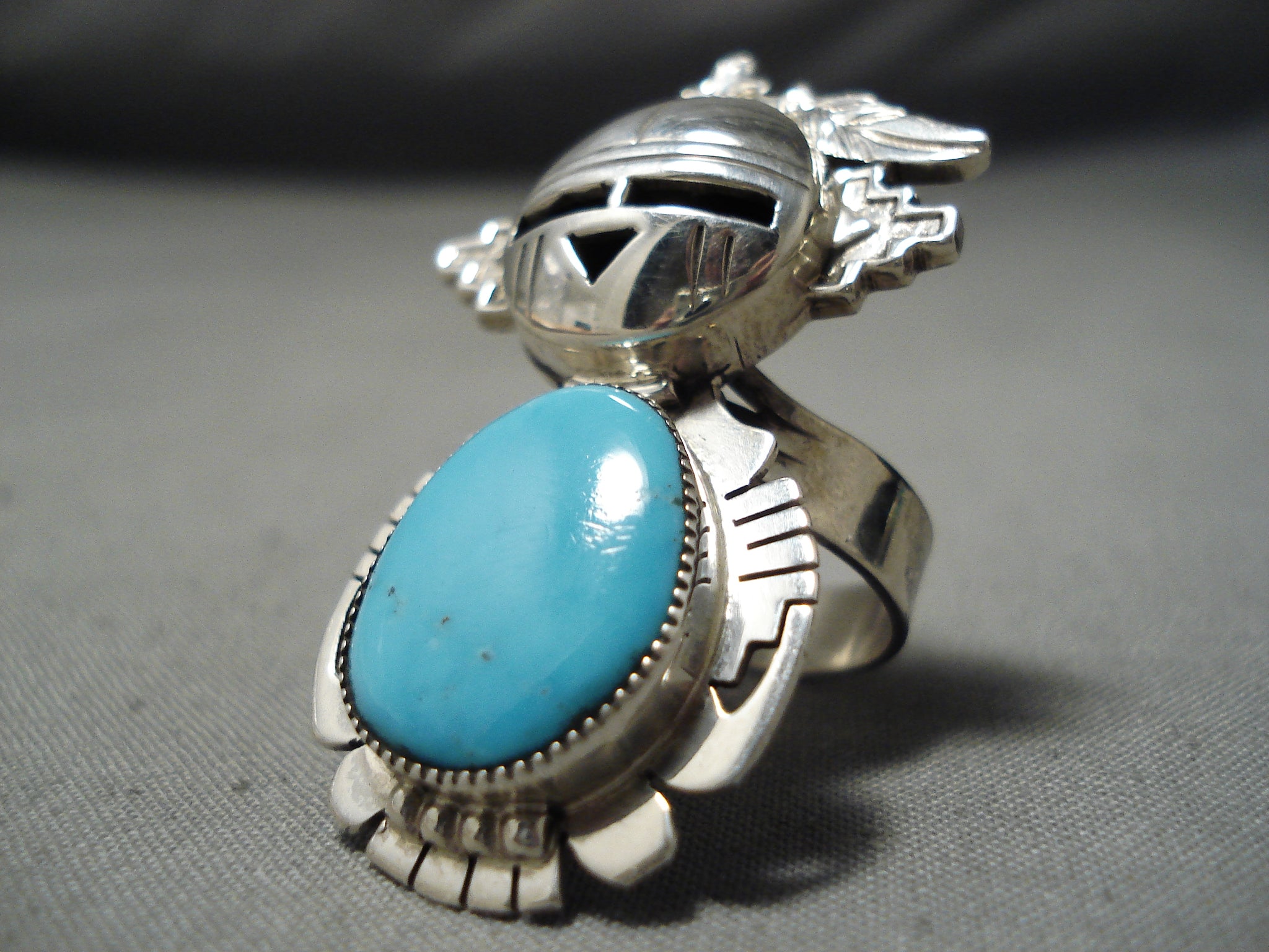 Astonishing Navajo Blue Gem Turquoise Sterling Silver Kachina Ring Native American