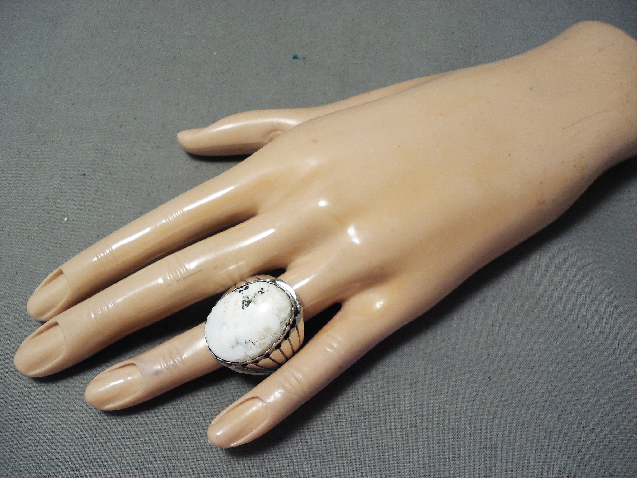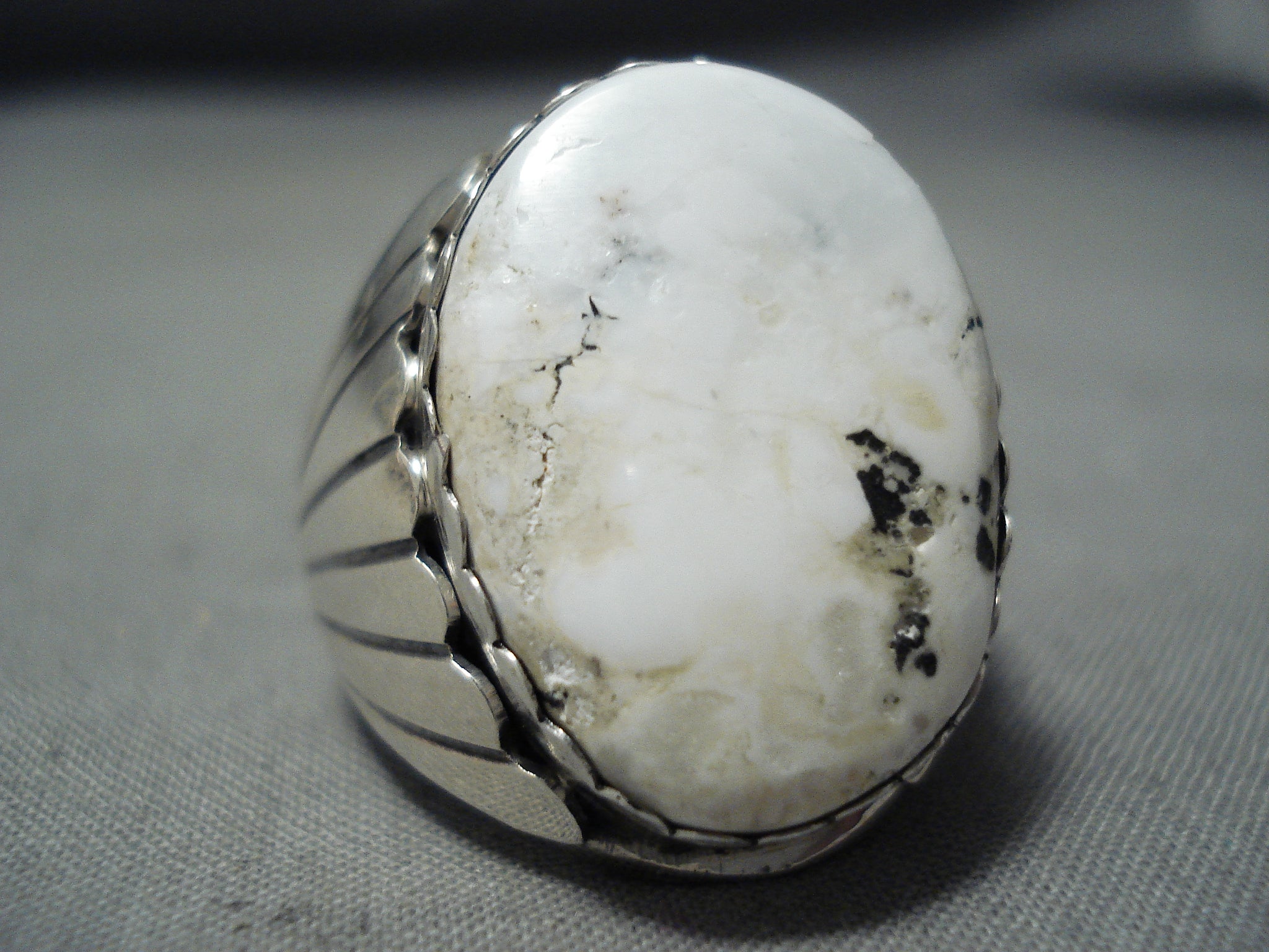 Astonishing Navajo White Buffalo Sterling Silver Ring Native American
