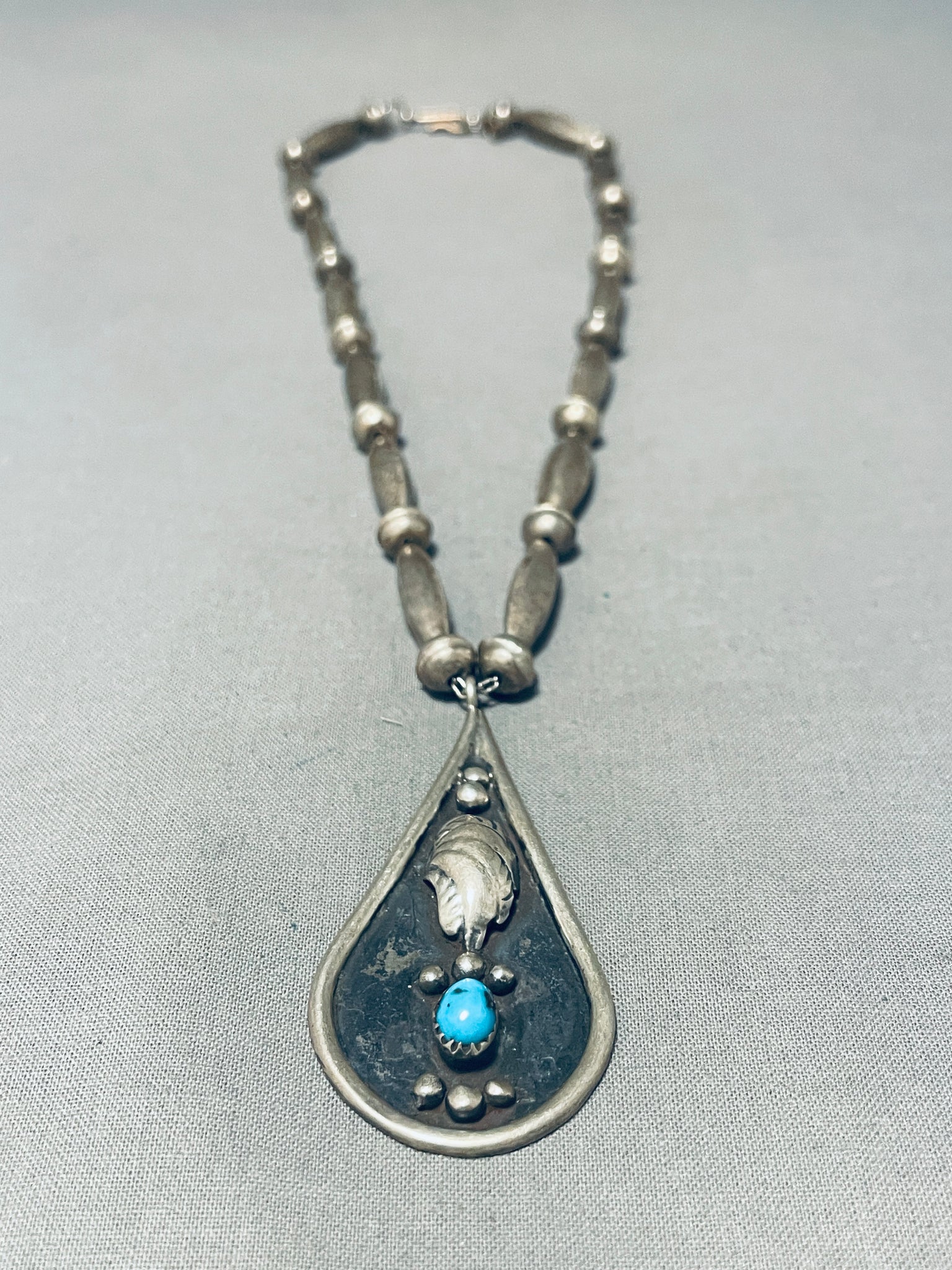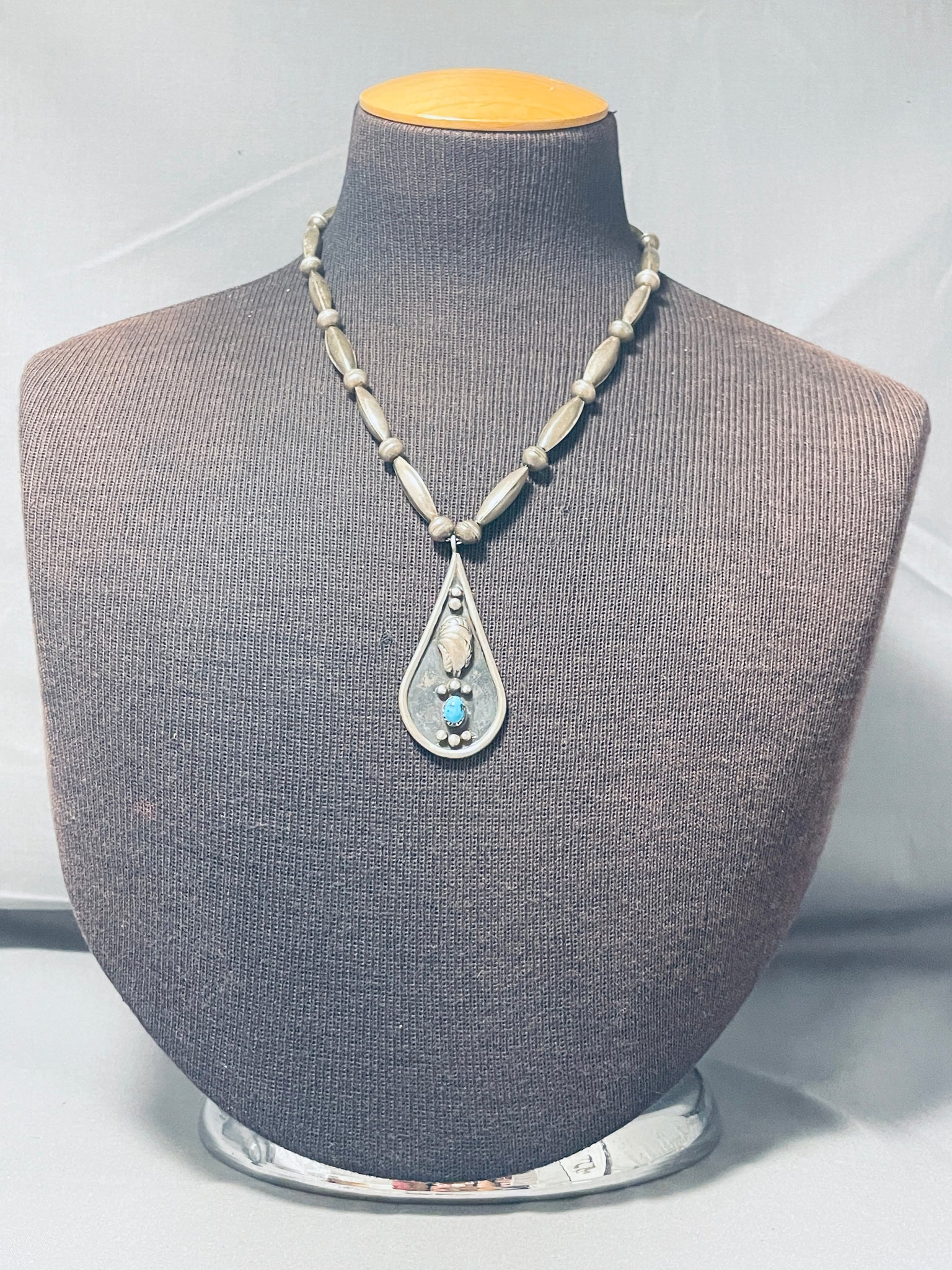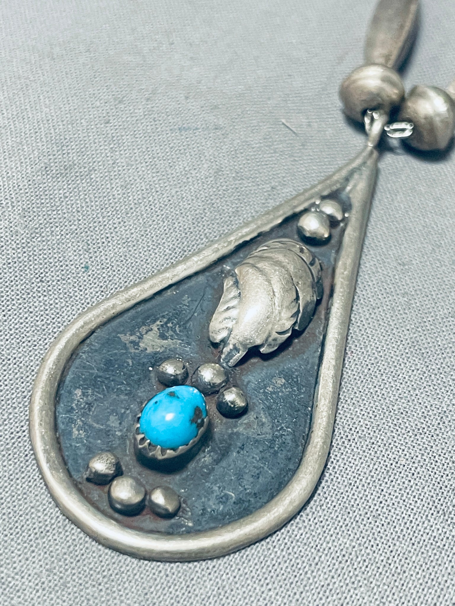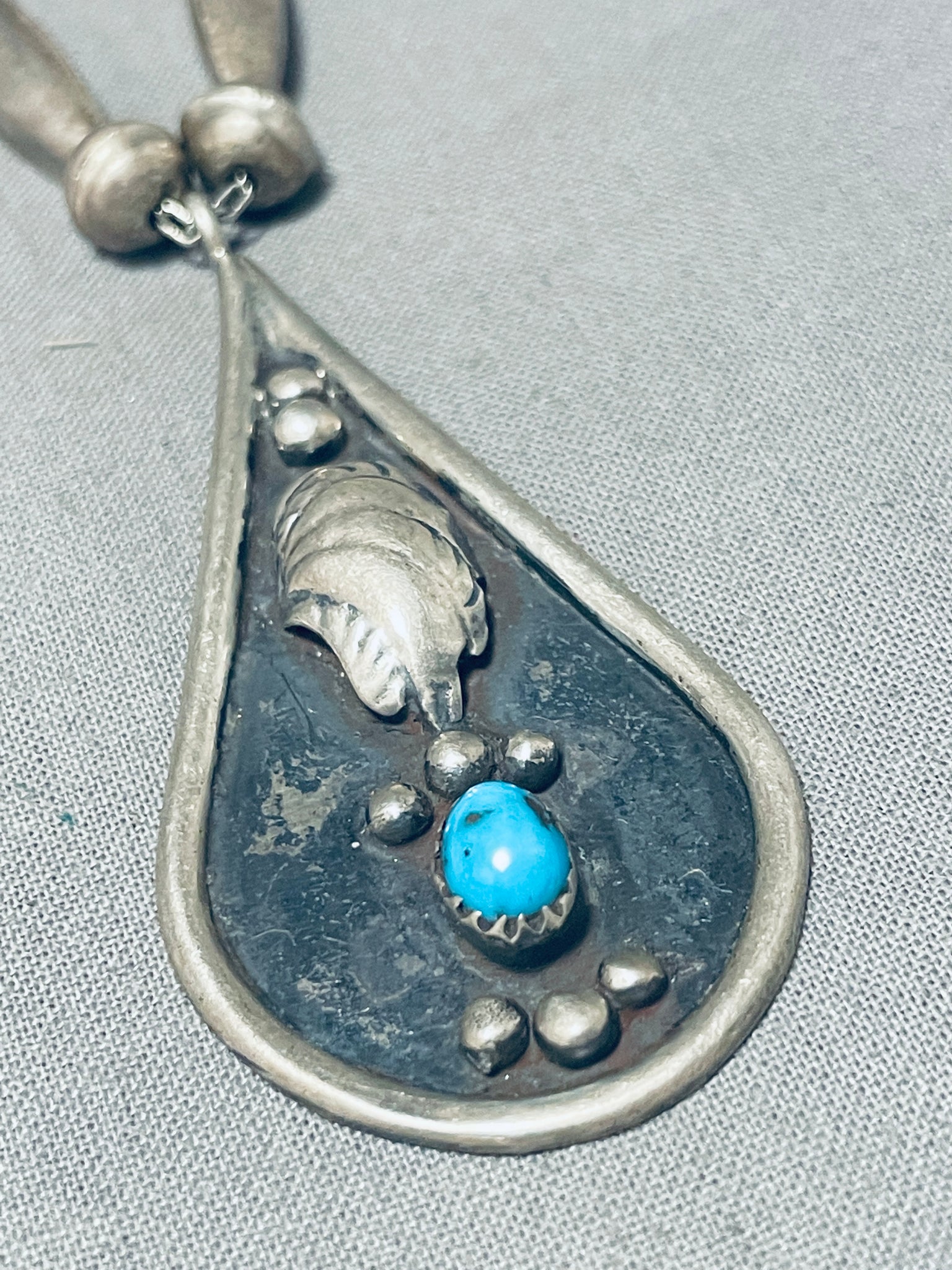 Astonishing Vintage Native American Navajo Bisbee Turquoise Sterling Silver Necklace