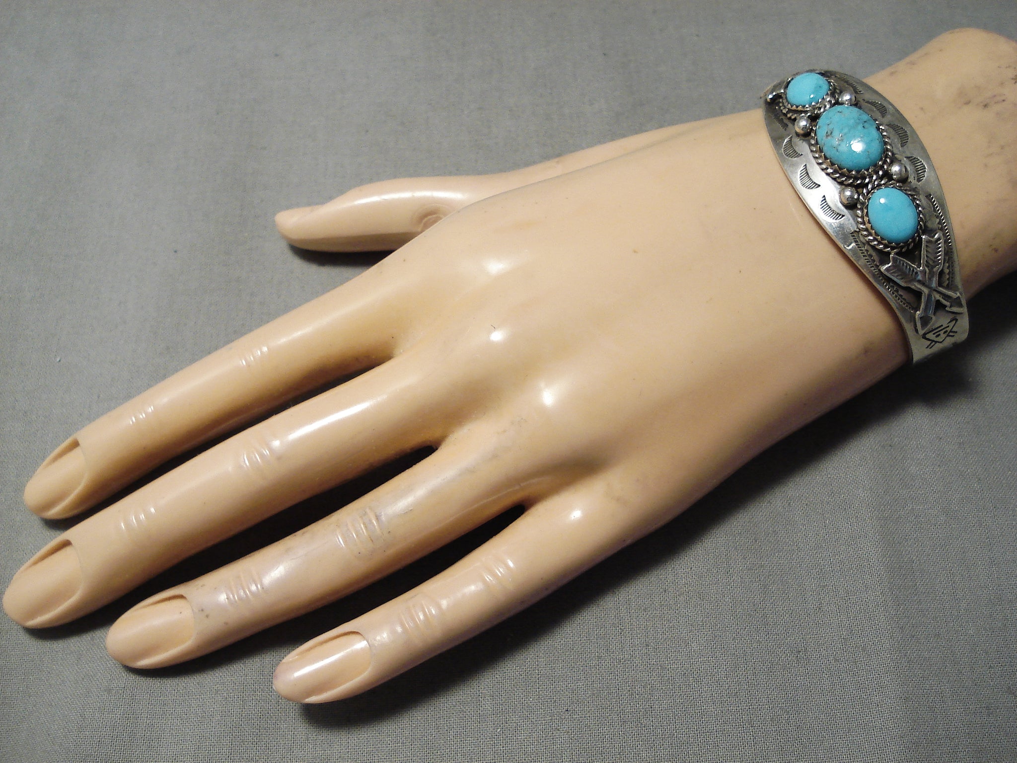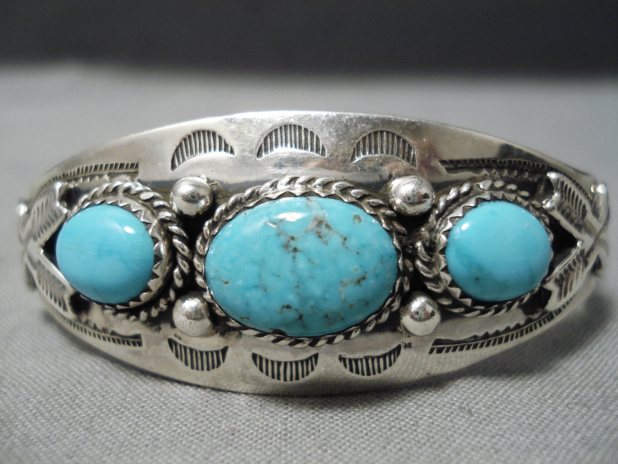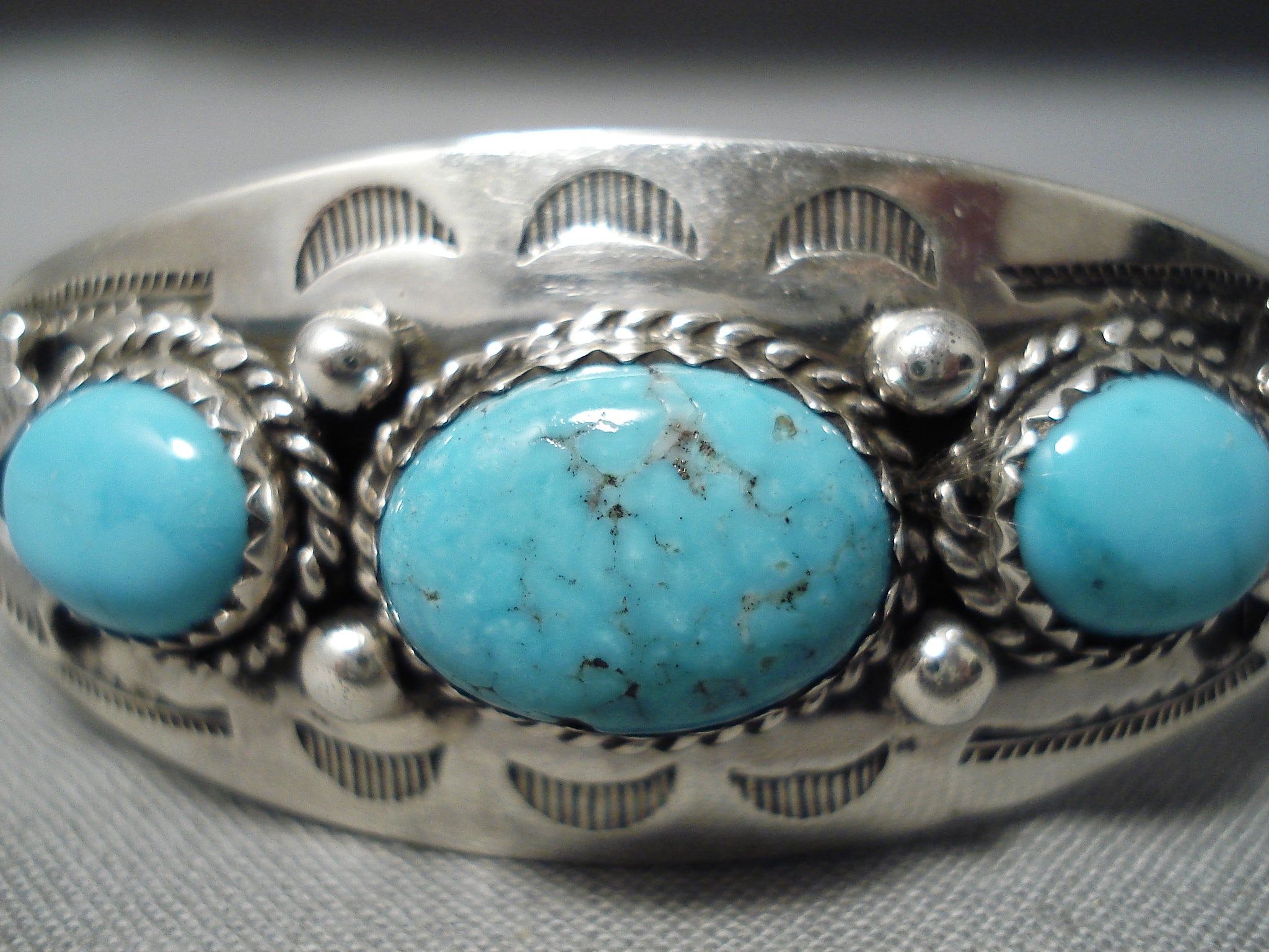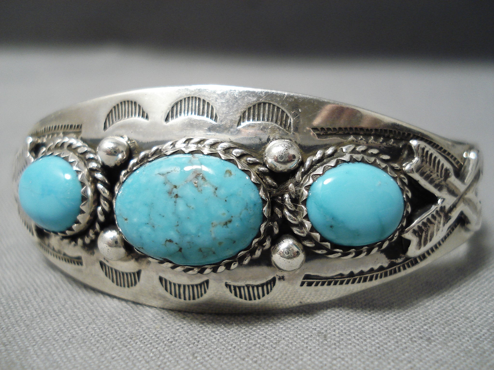 Astonishing Vintage Native American Navajo Carico Lake Turquoise Sterling Silver Bracelet