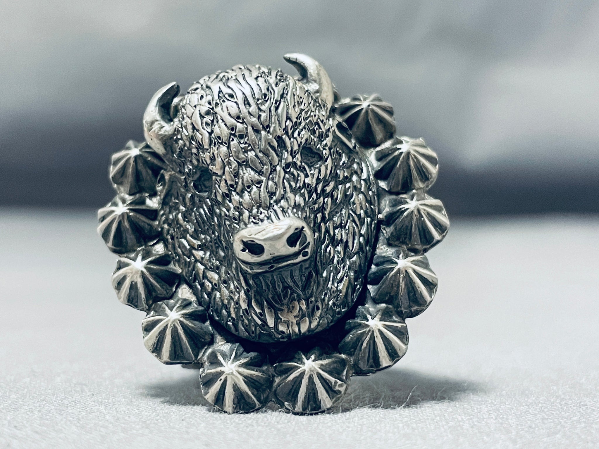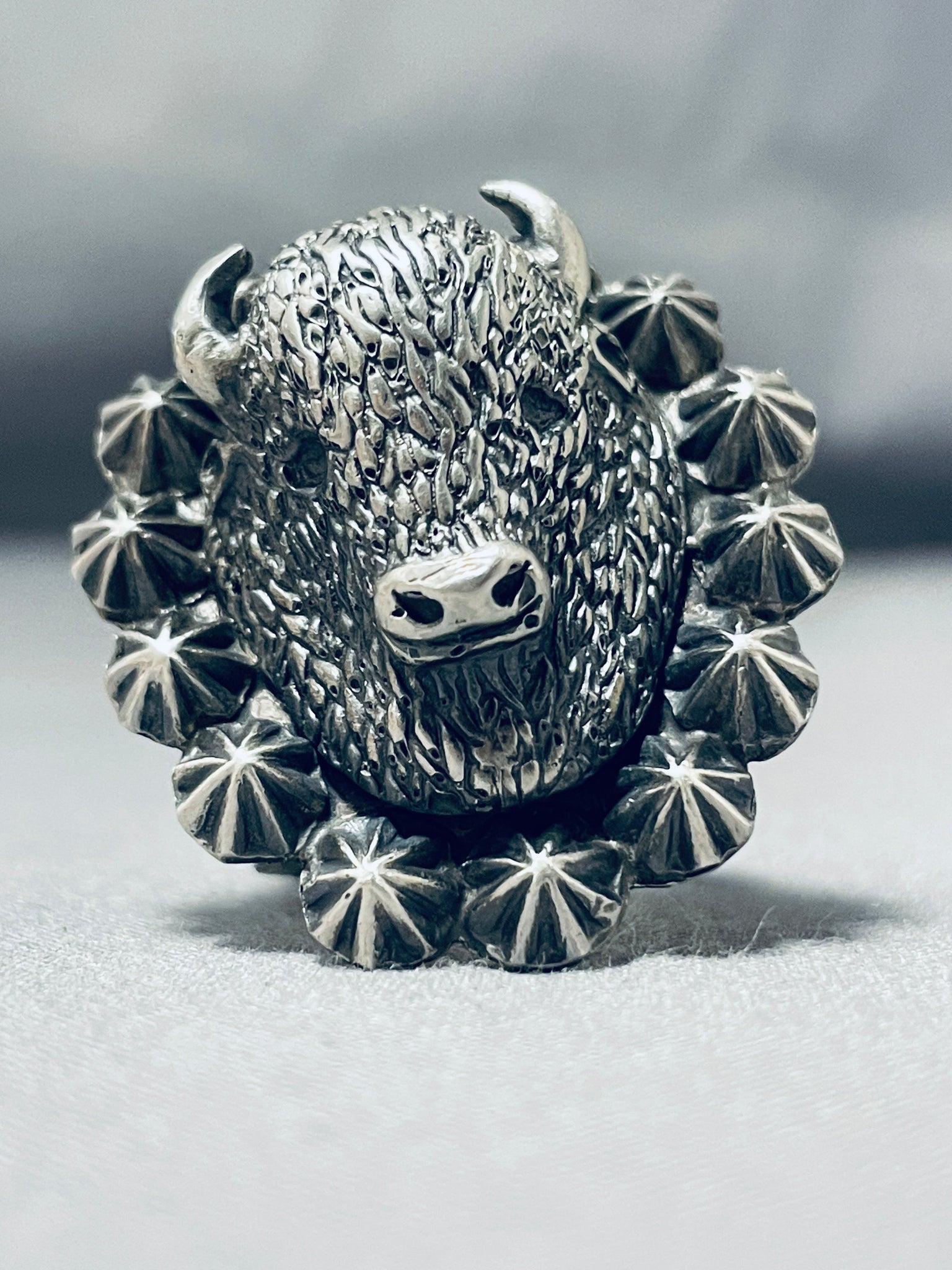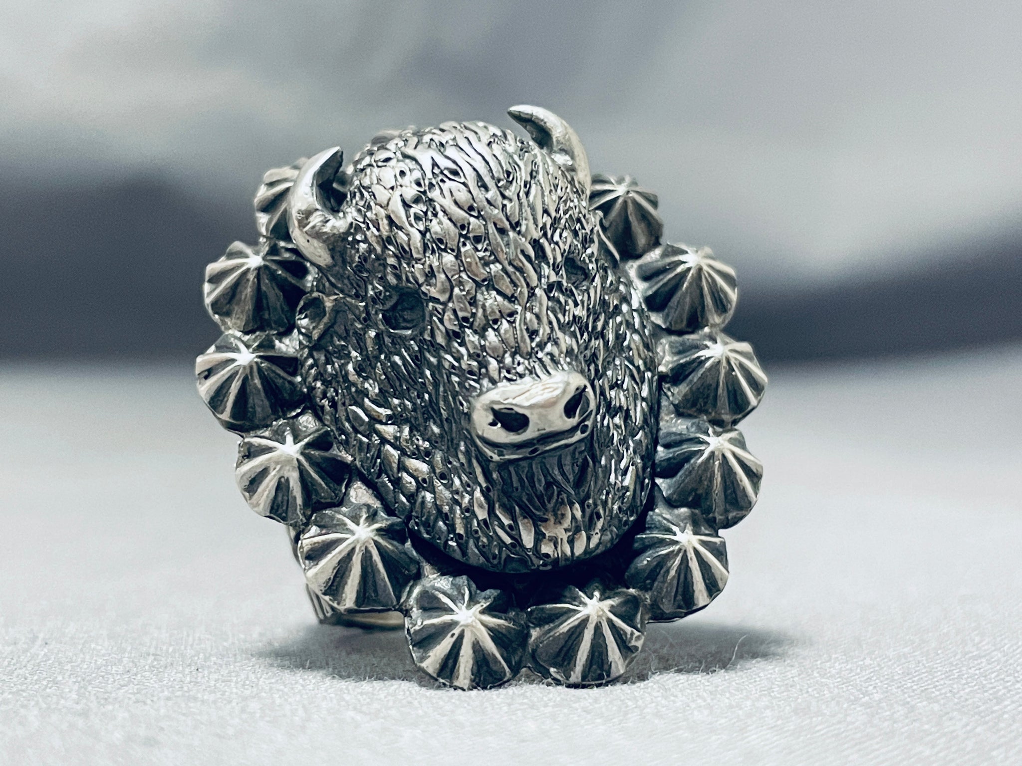 Astounding Native American Navajo Sterling Silver Buffalo Ring