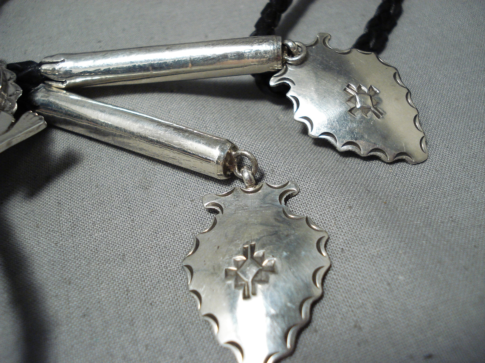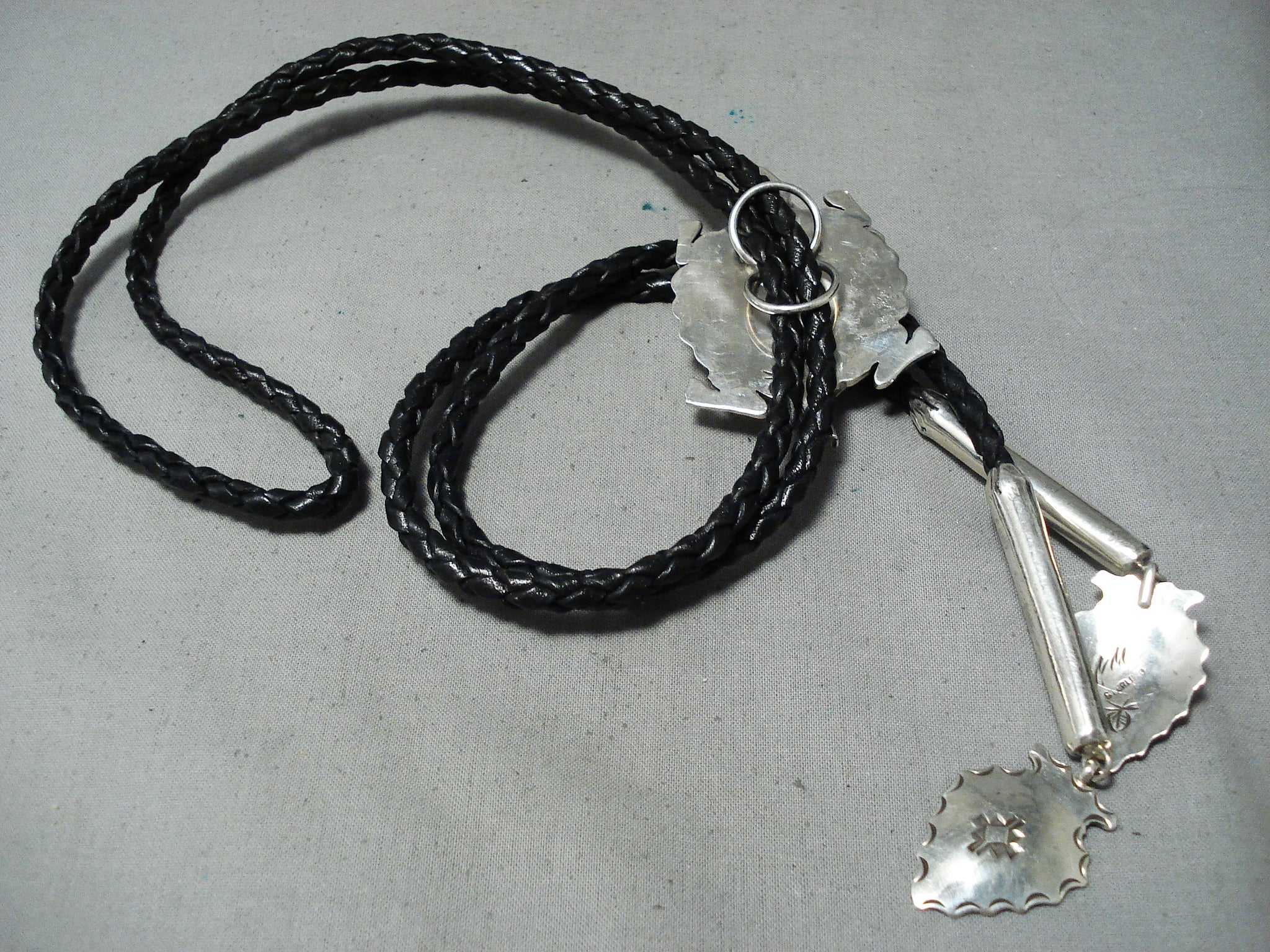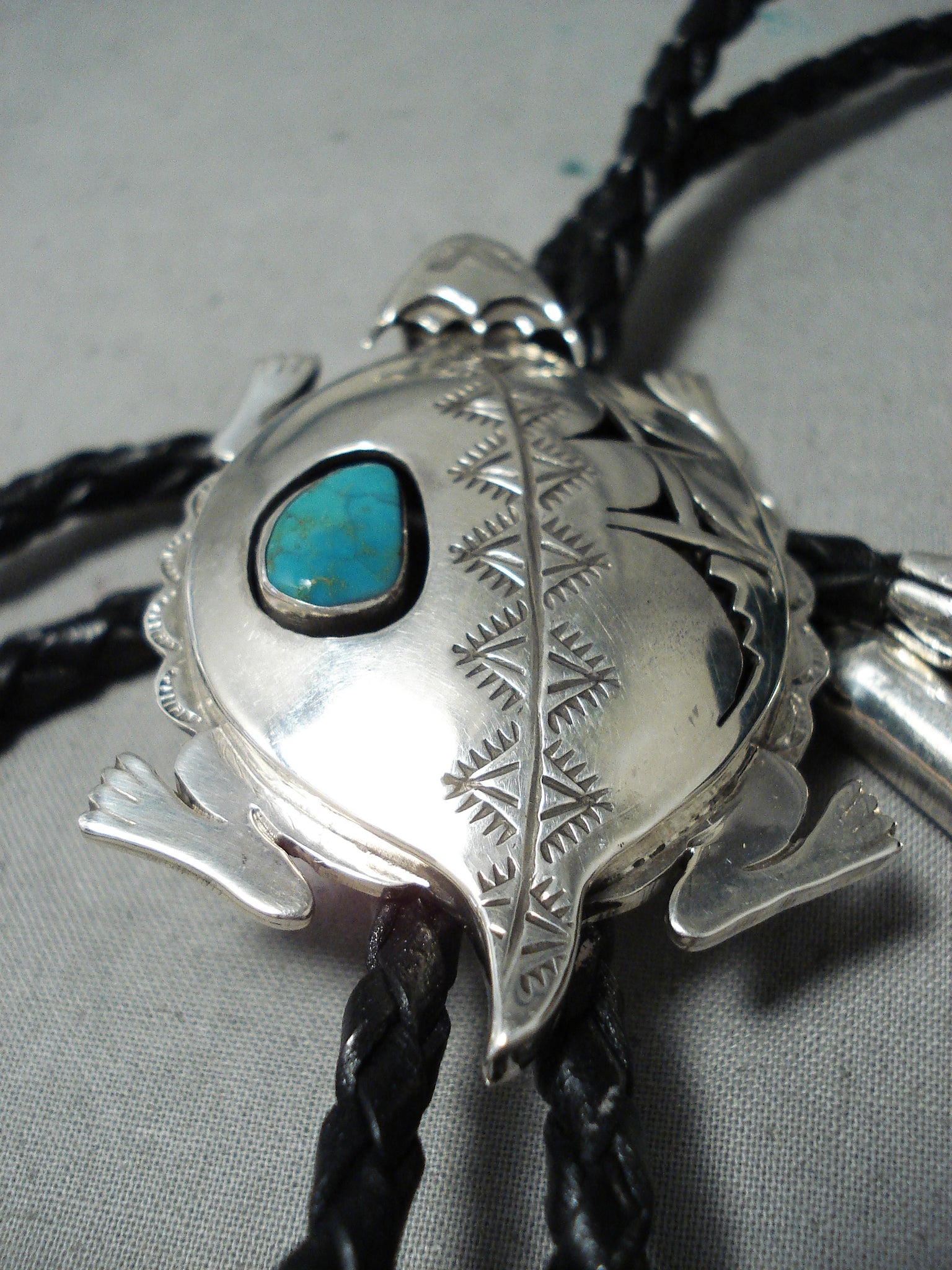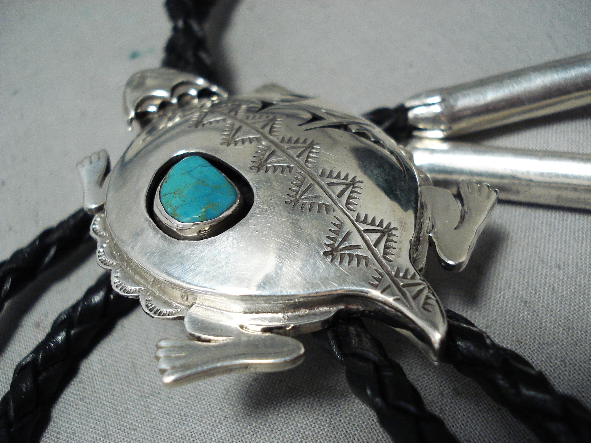 Astounding Navajo Turquoise Sterling Silver Toad Bolo Tie Native American