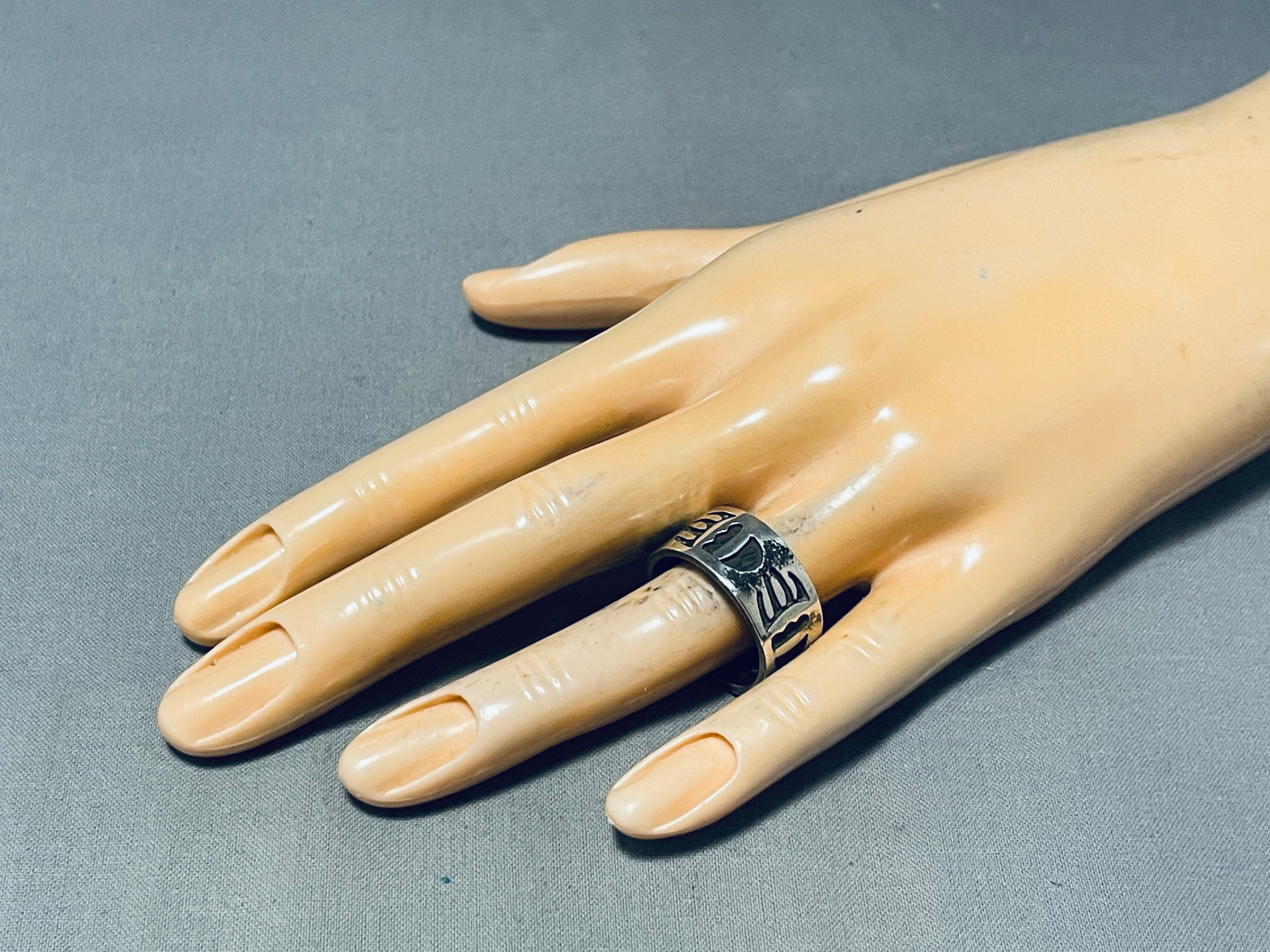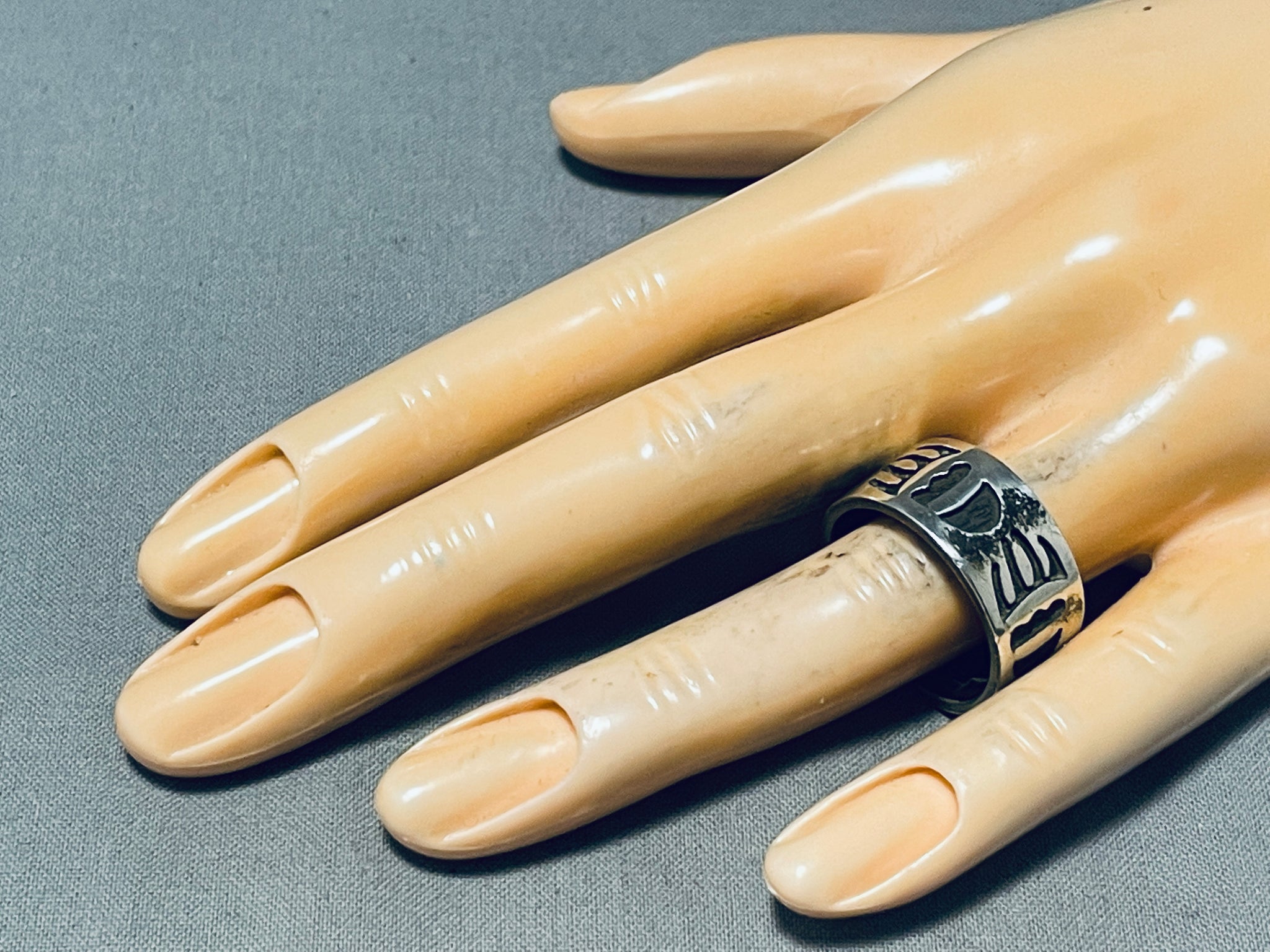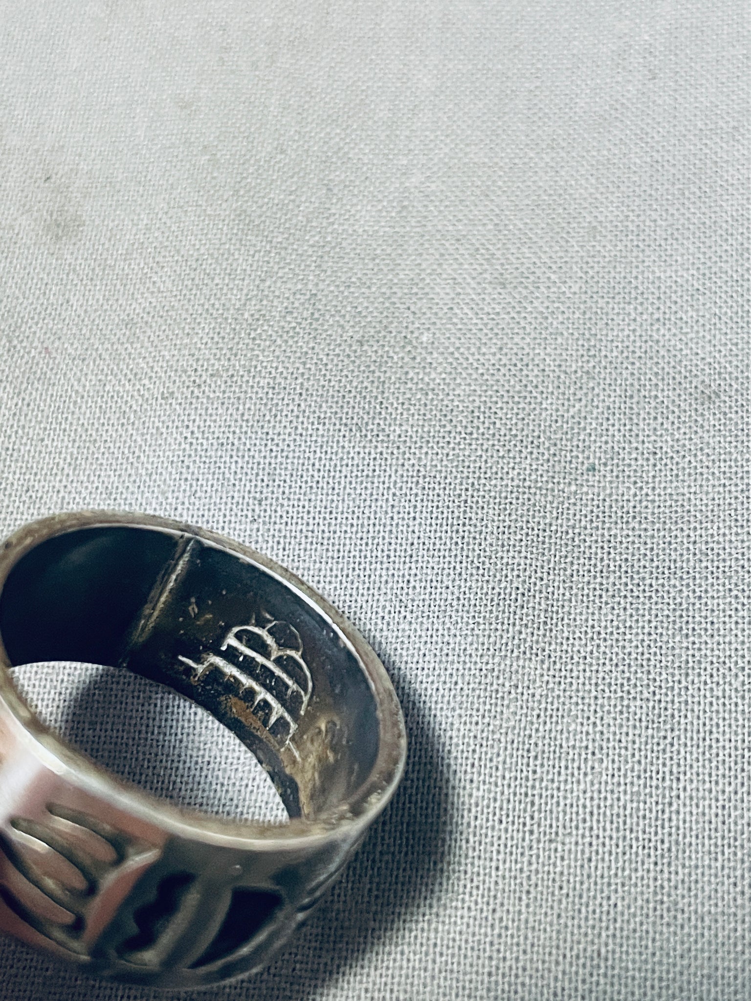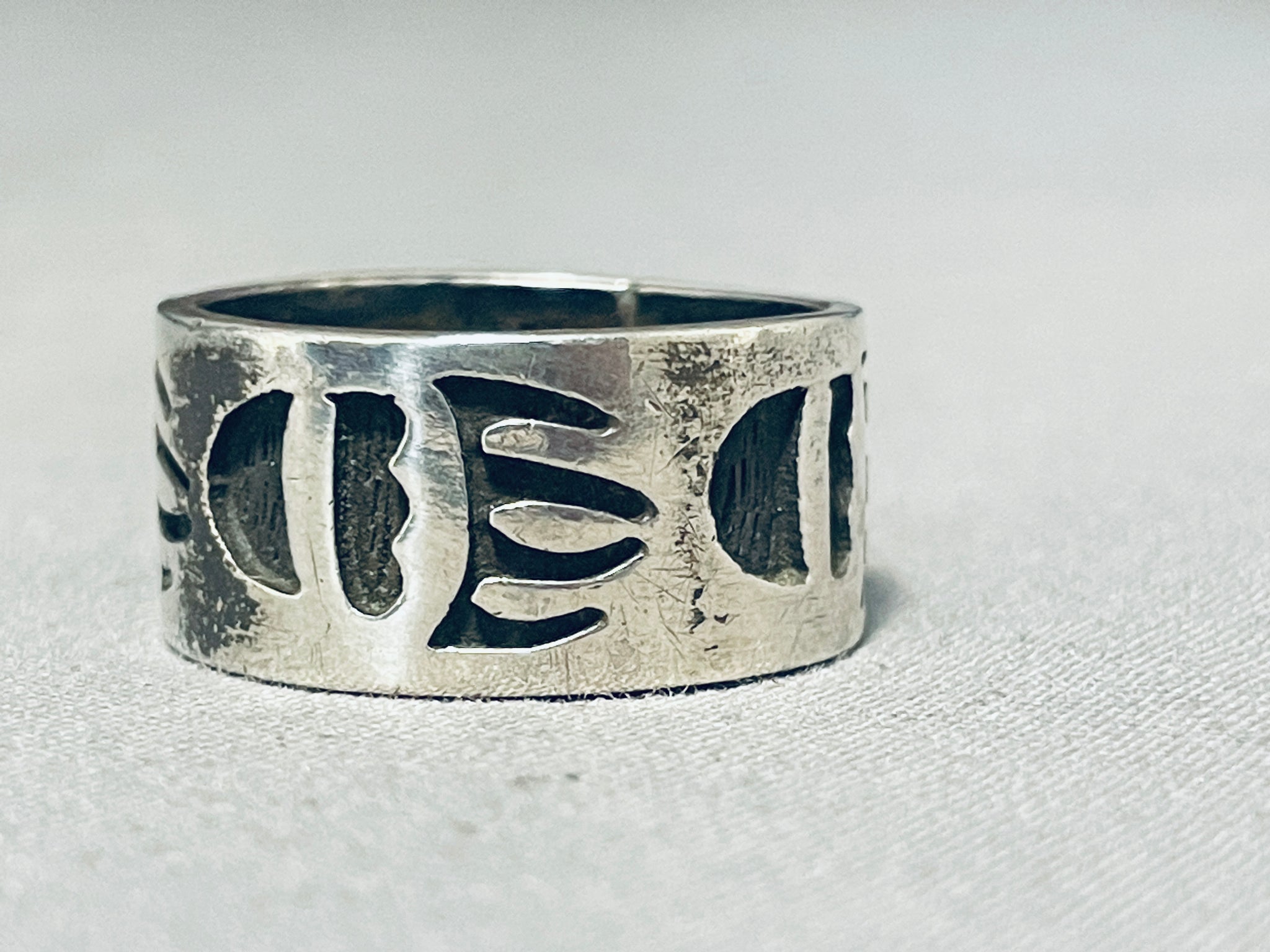 Astounding Vintage Native American Hopi Sterling Silver Band Ring Signed Manuel Hoyungwa (d)