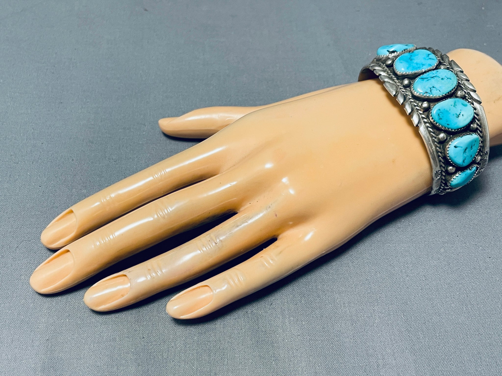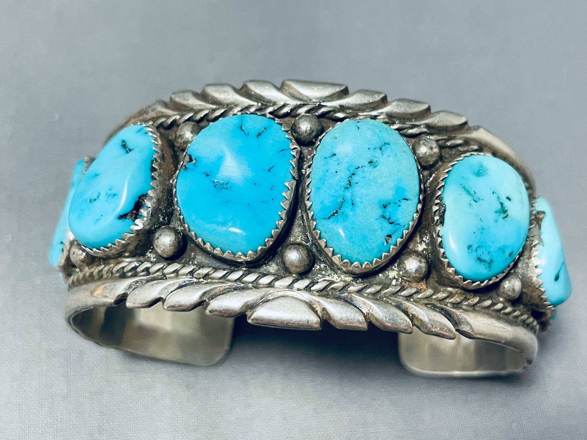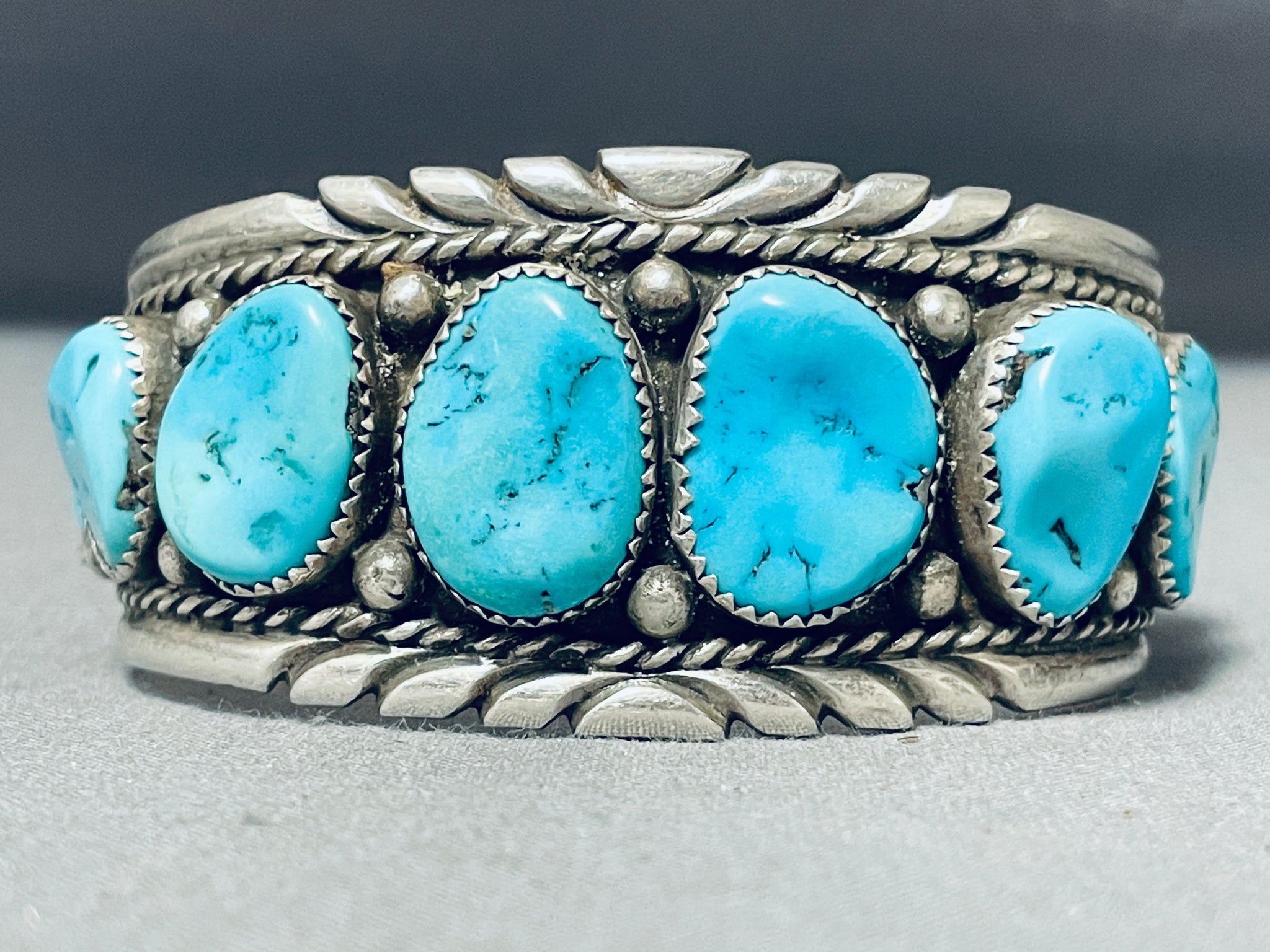Astounding Vintage Native American Navajo 8 Blue Gem Turquoise Sterling Silver Bracelet