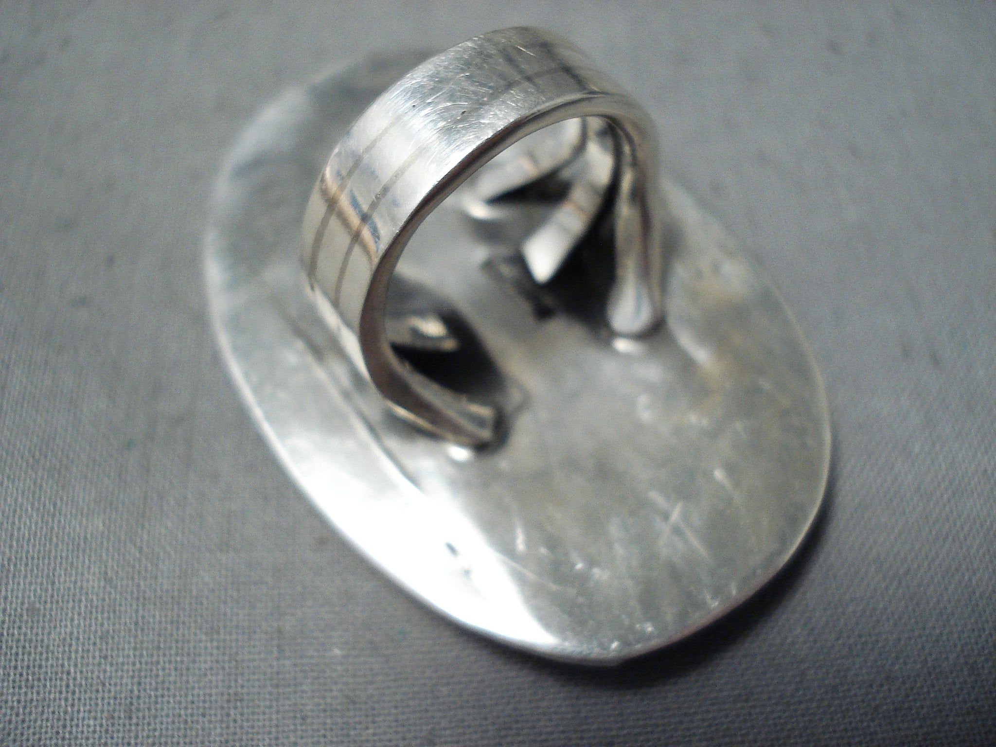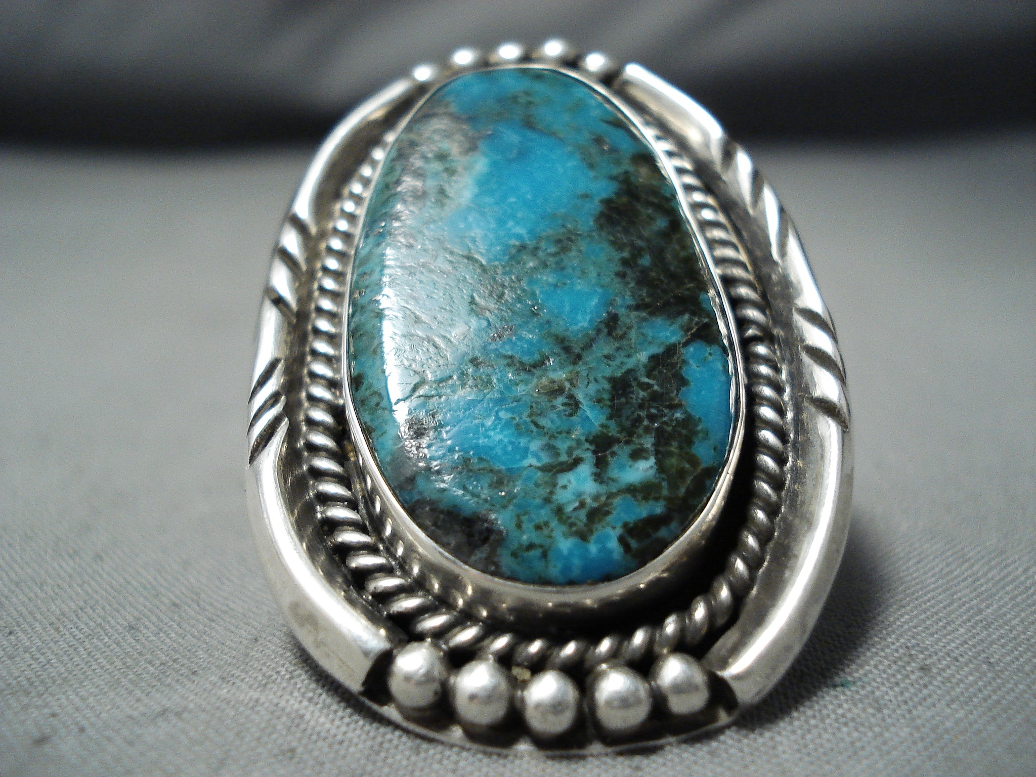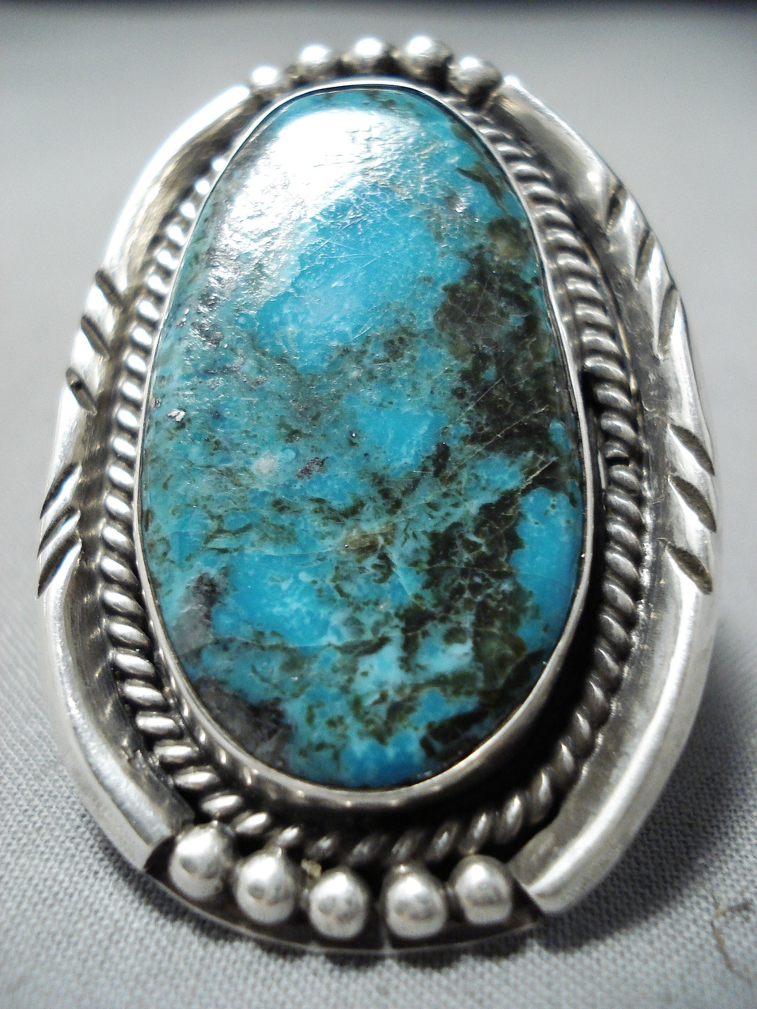 Astounding Vintage Native American Navajo Blue Diamond Turquoise Sterling Silver Ring Old