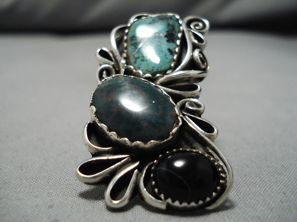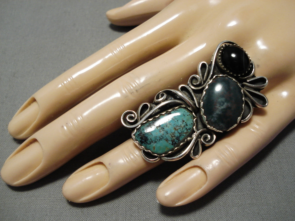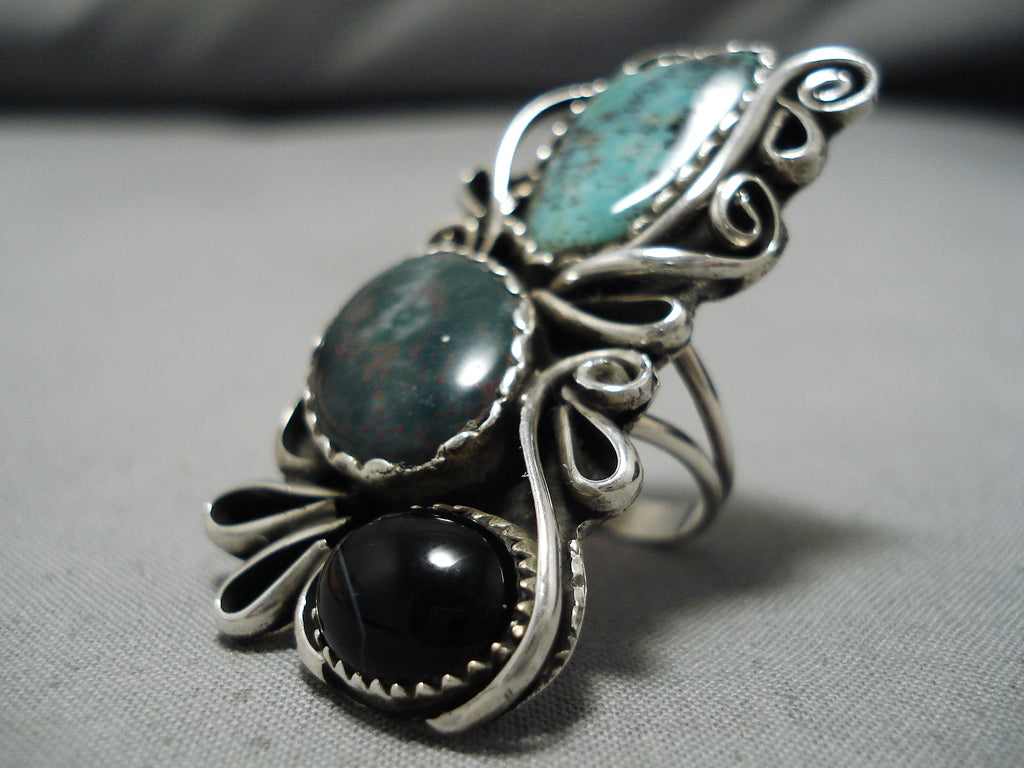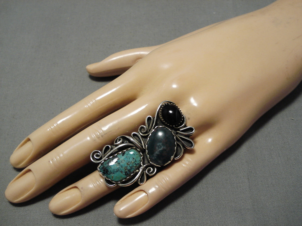 Astounding Vintage Native American Navajo Bold Intense Dramatic Turquoise Sterling Silver Ring