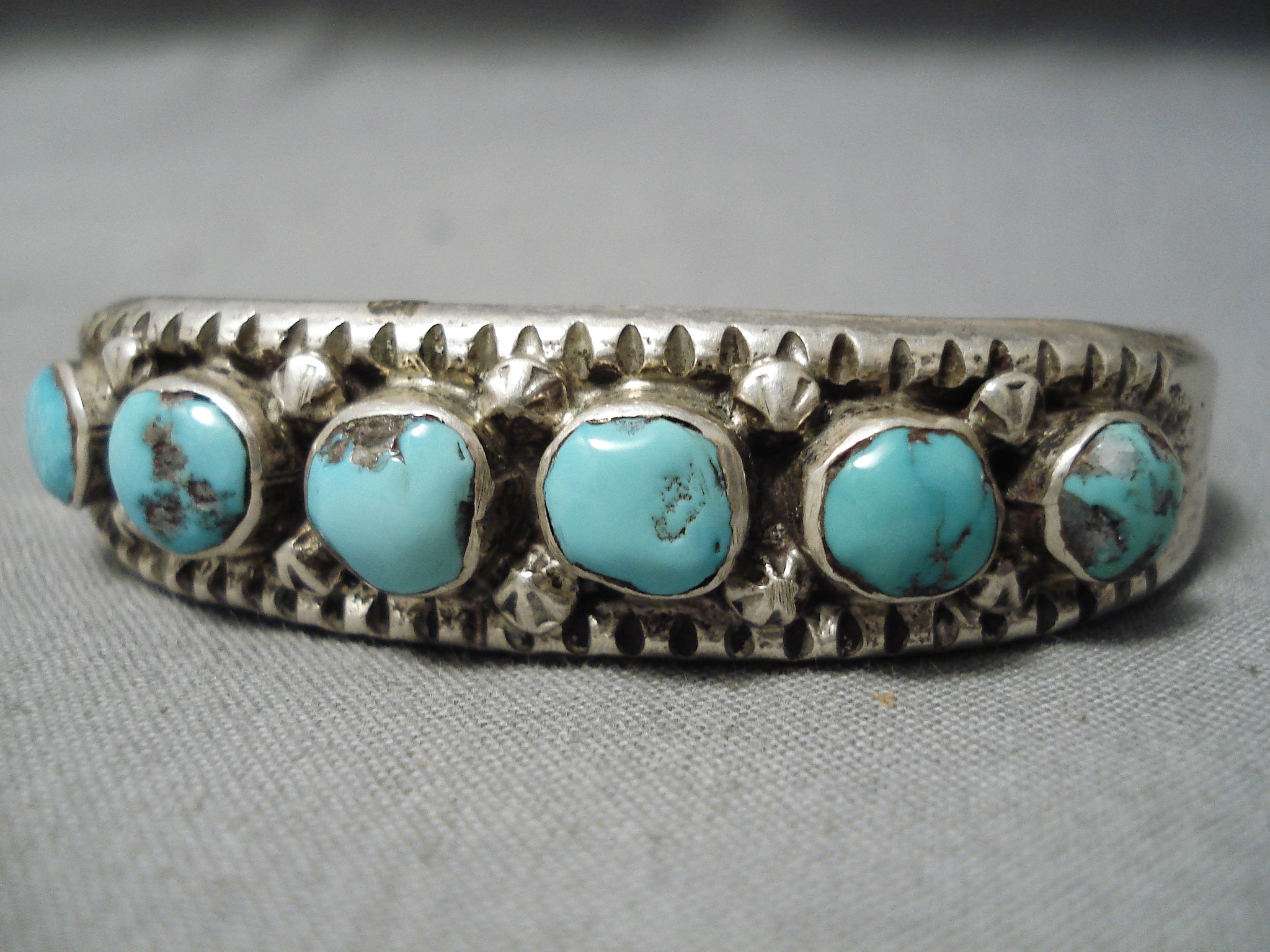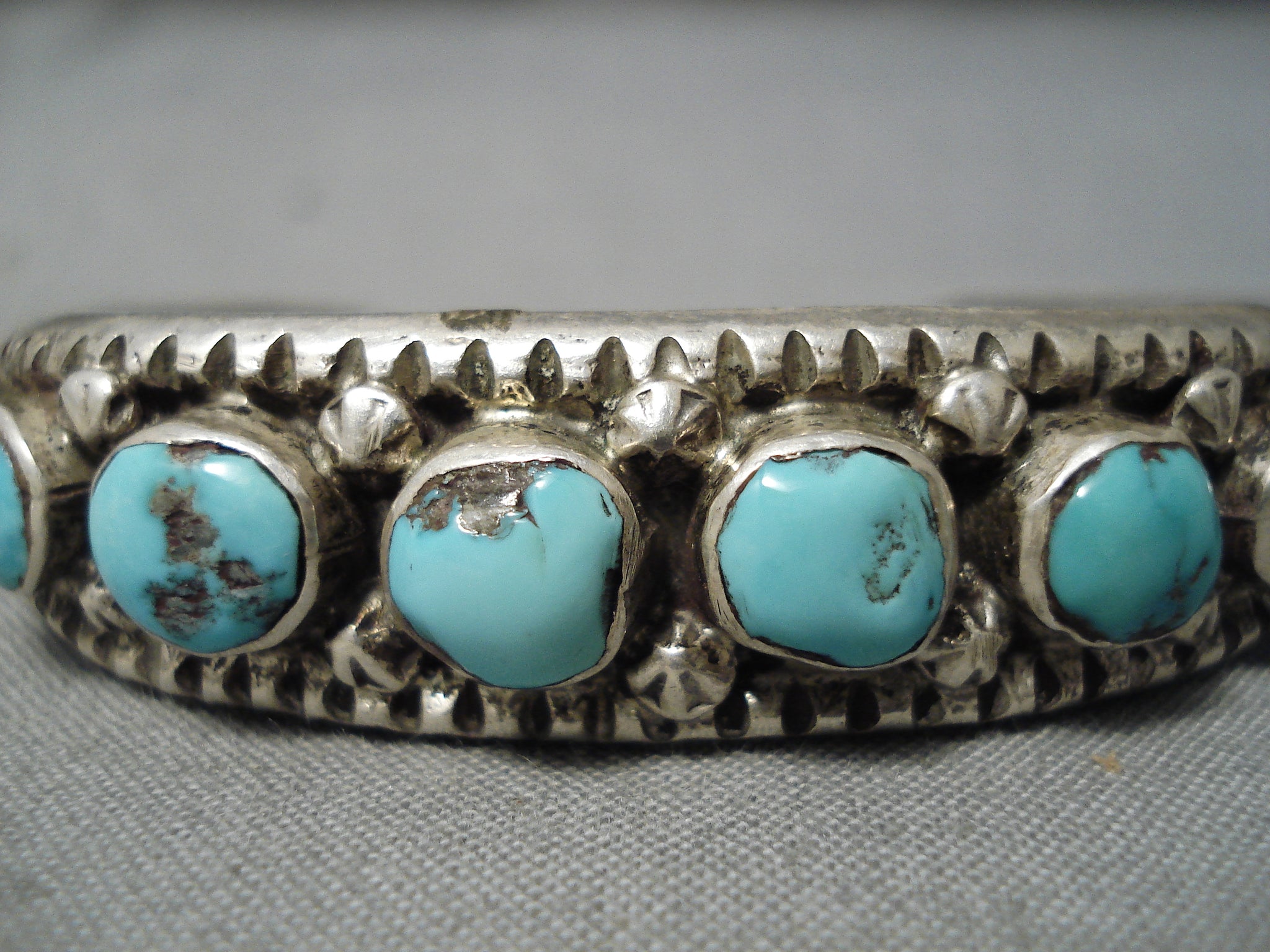 Astounding Vintage Native American Navajo Graduating Turquoise Sterling Silver Bracelet Old