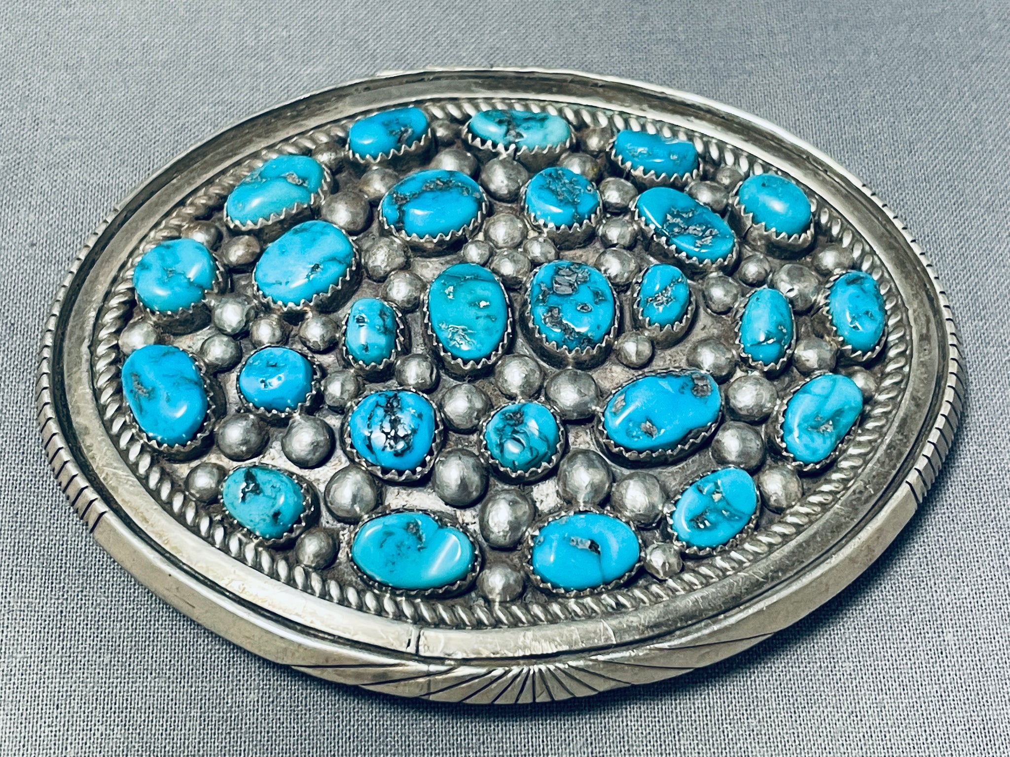 Astounding Vintage Native American Navajo Kingman Turquoise Sterling Silver Buckle Signed