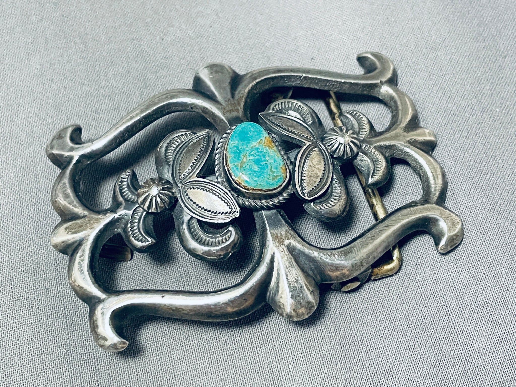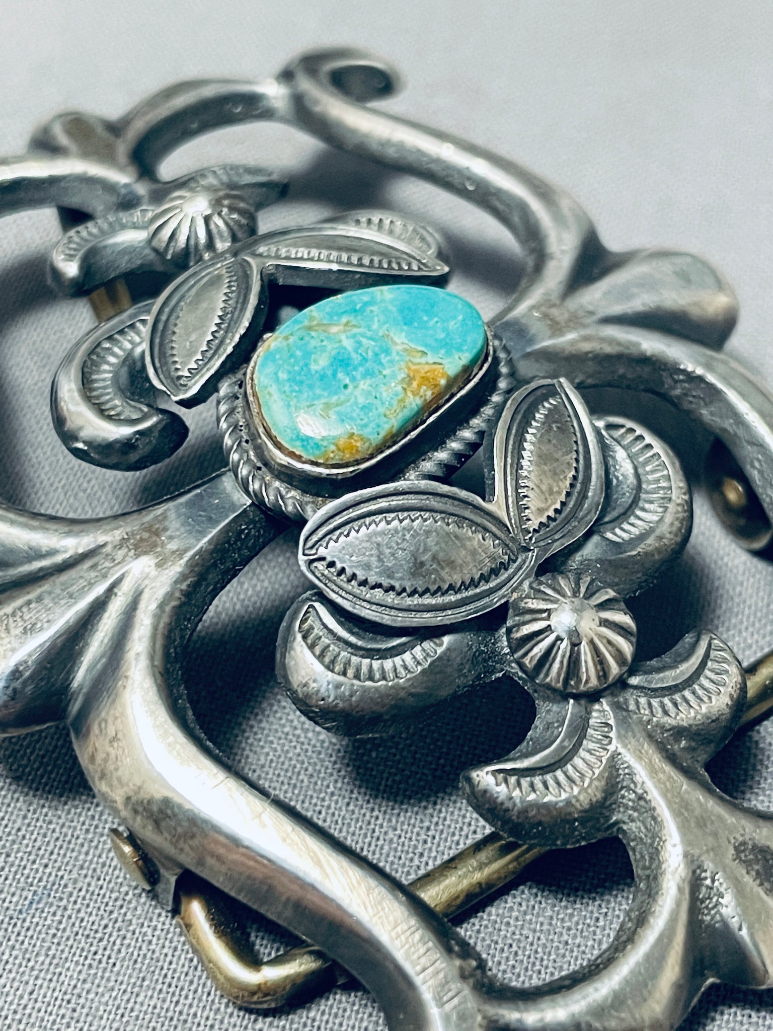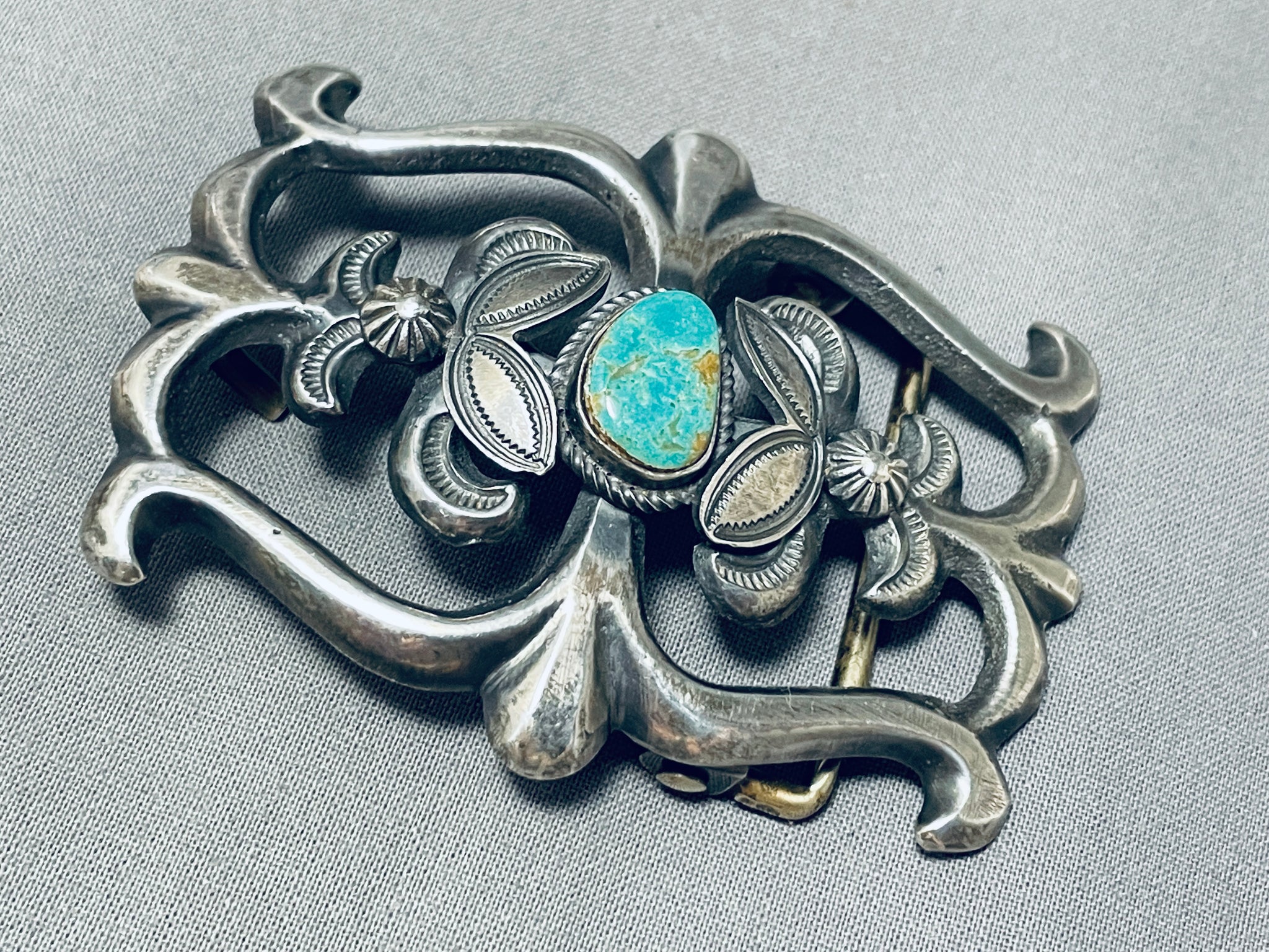 Astounding Vintage Native American Navajo Royston Turquoise Sterling Silver Buckle