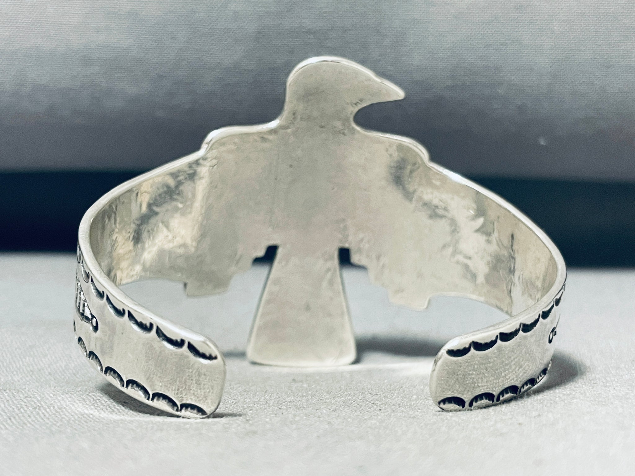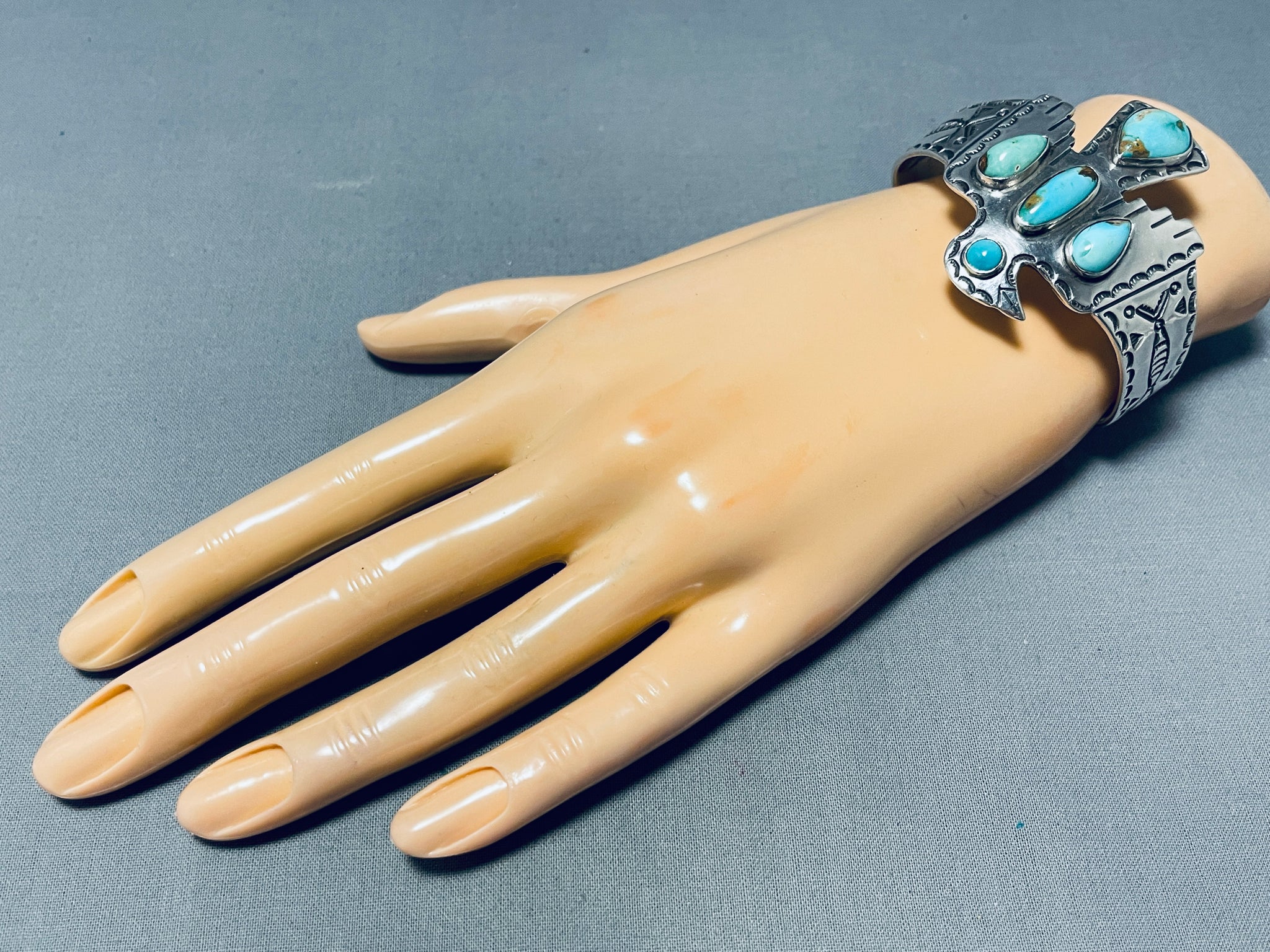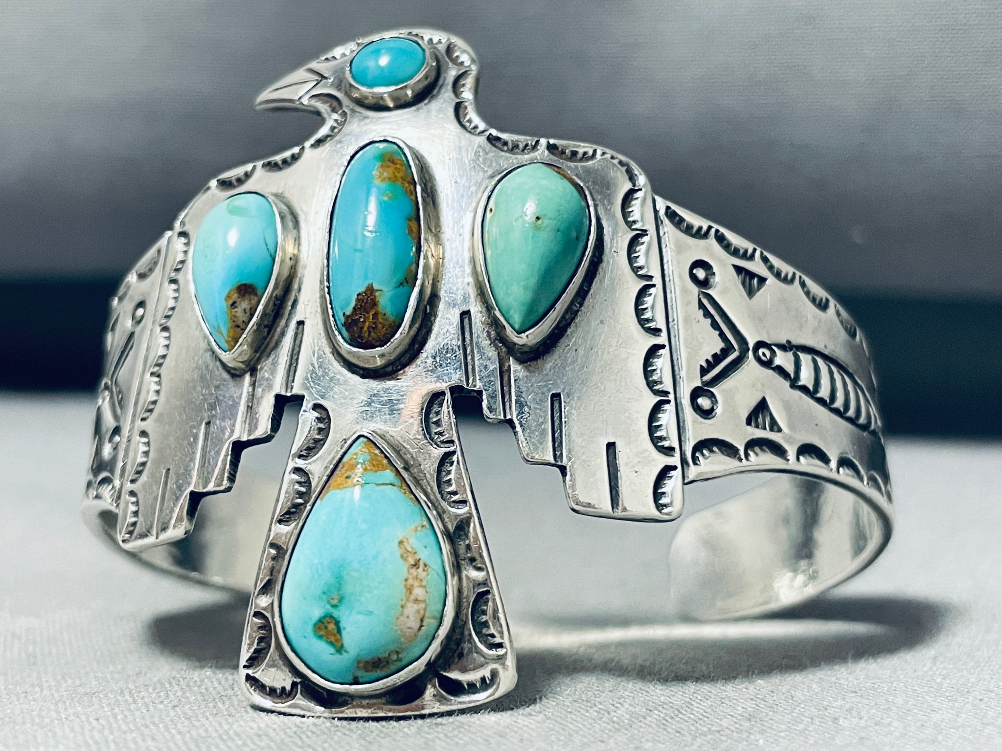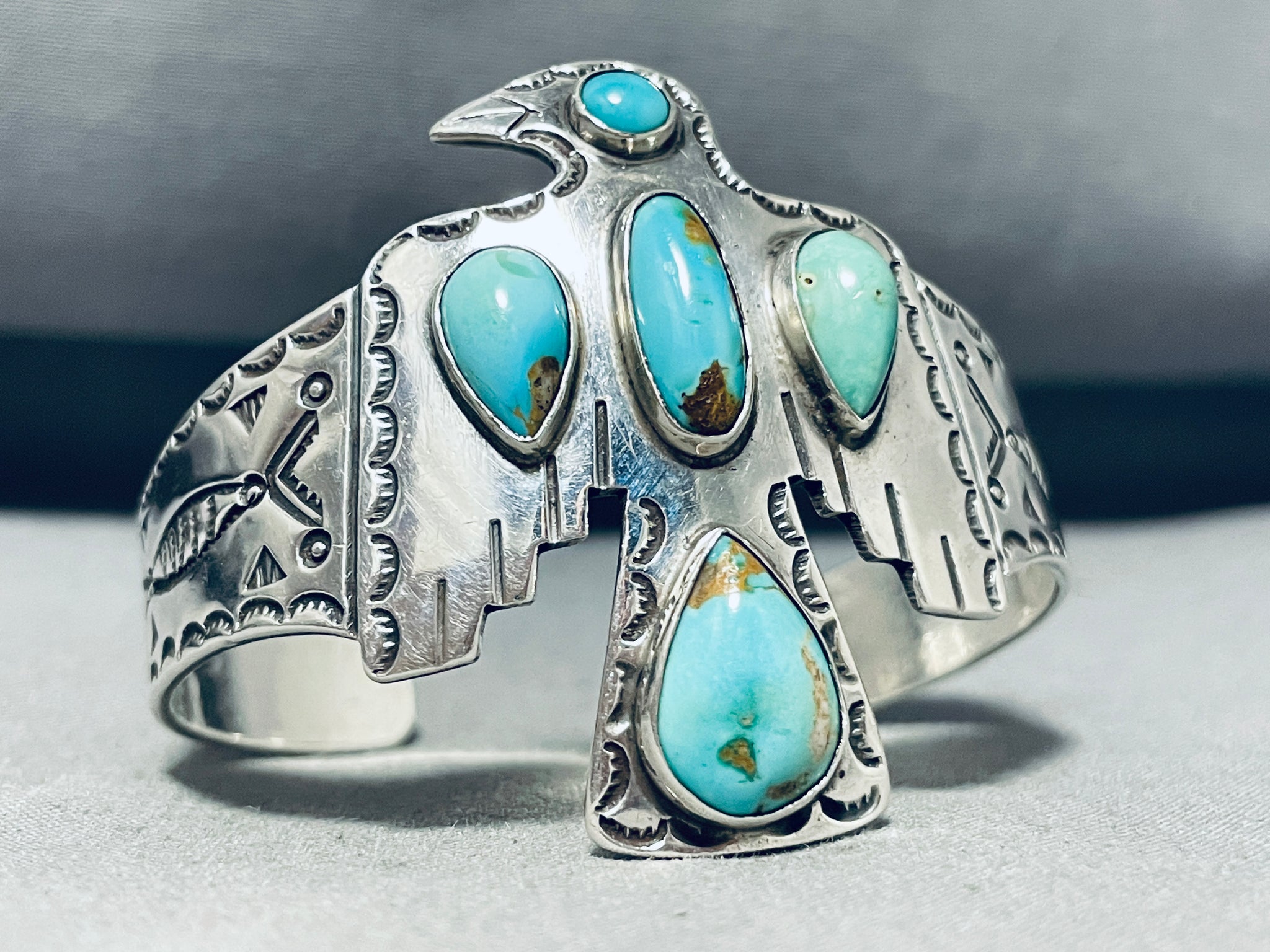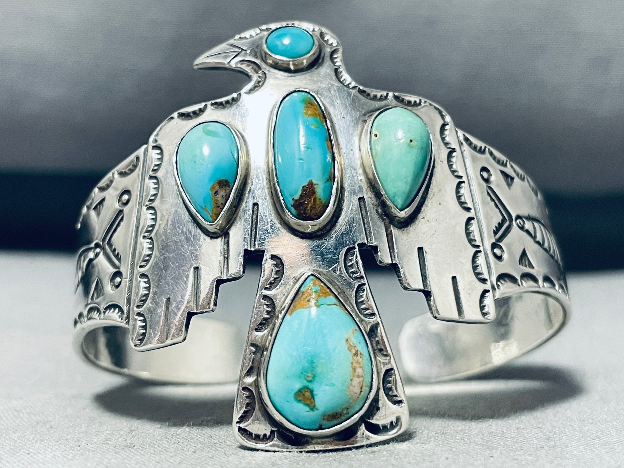 Astounding Vintage Native American Navajo Royston Turquoise Sterling Silver Thunderbird Bracelet