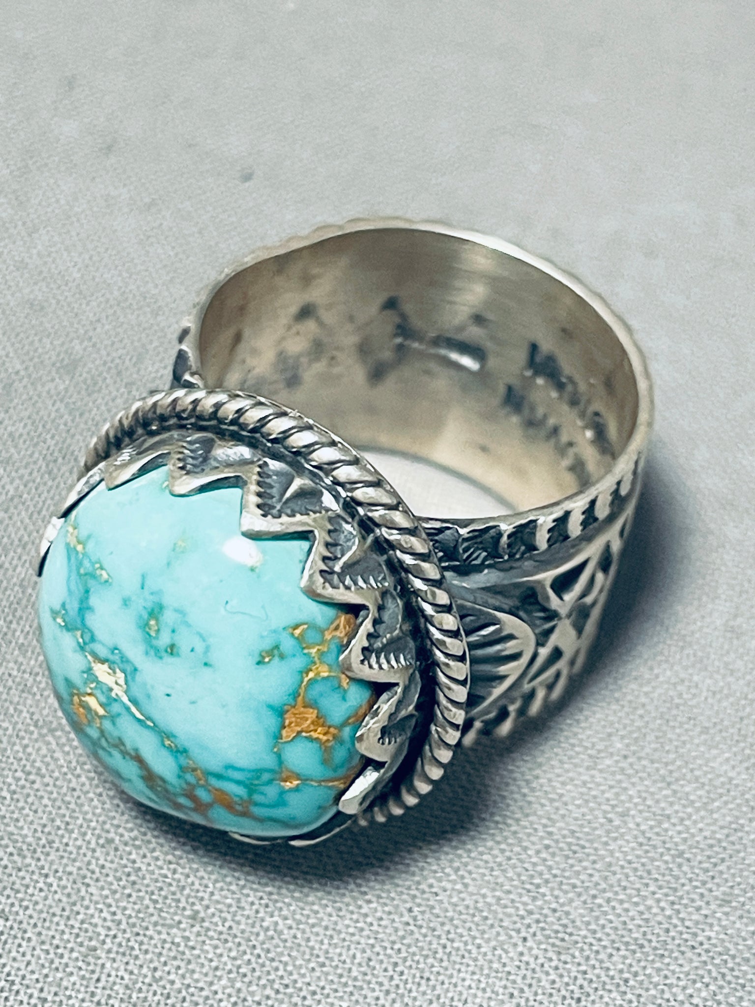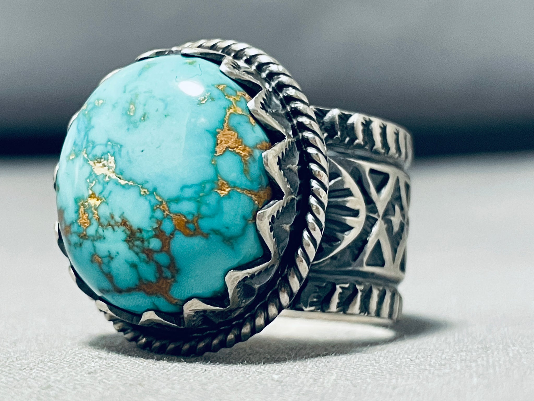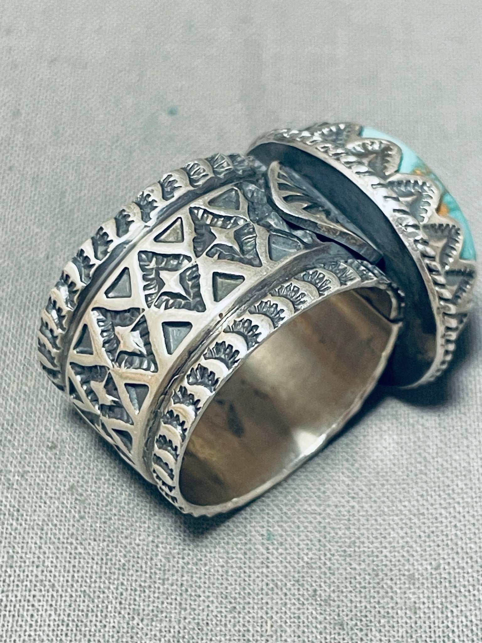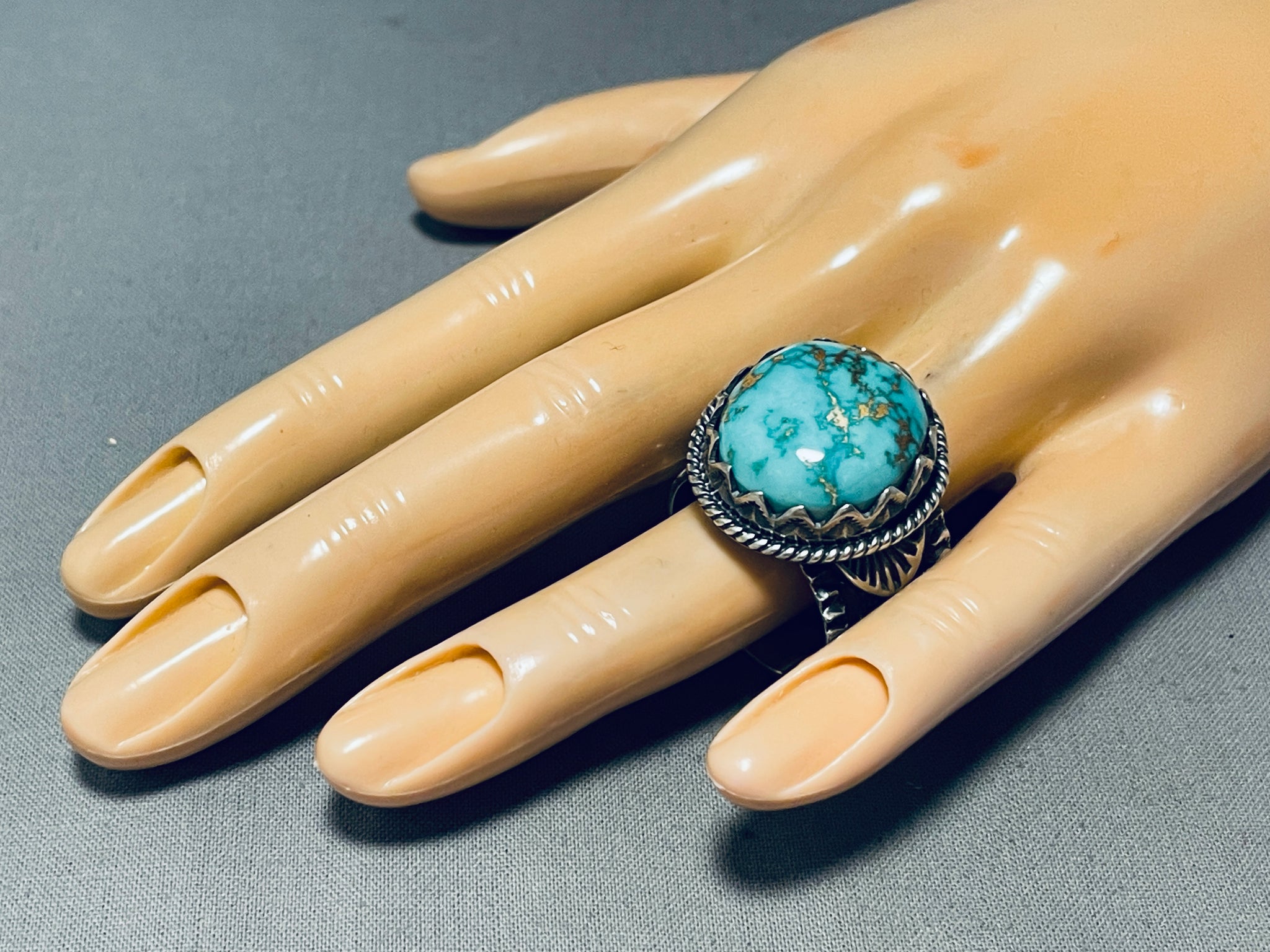 Astounding Vintage Native American Navajo Signed Candelaria Turquoise Sterling Silver Ring