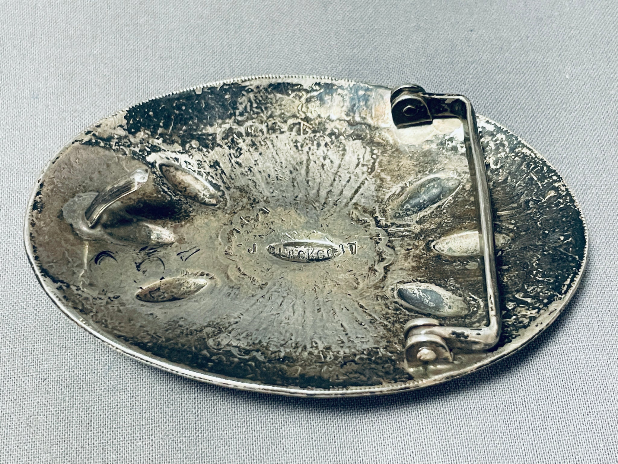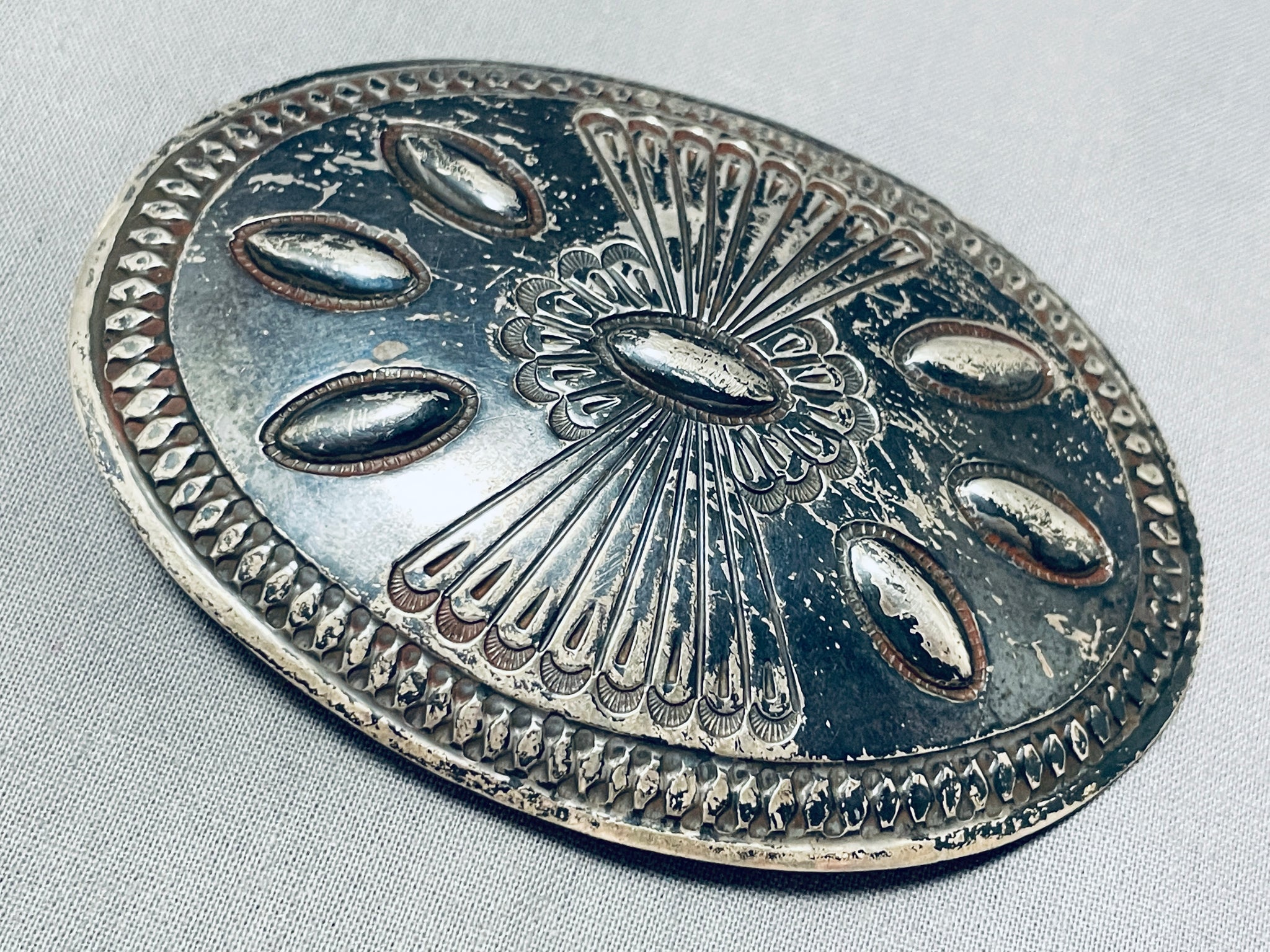 Astounding Vintage Native American Navajo Sterling Silver Belt Buckle