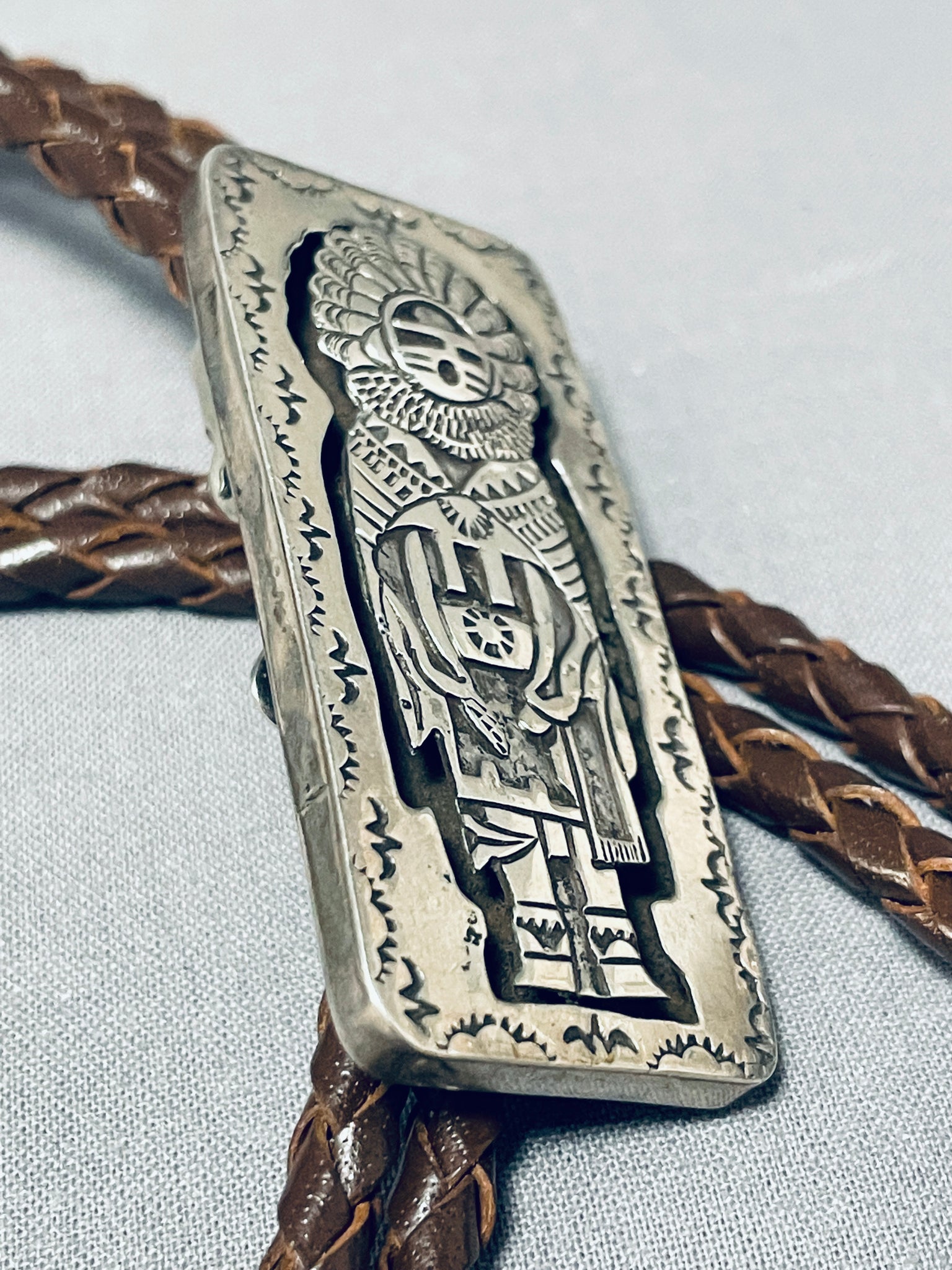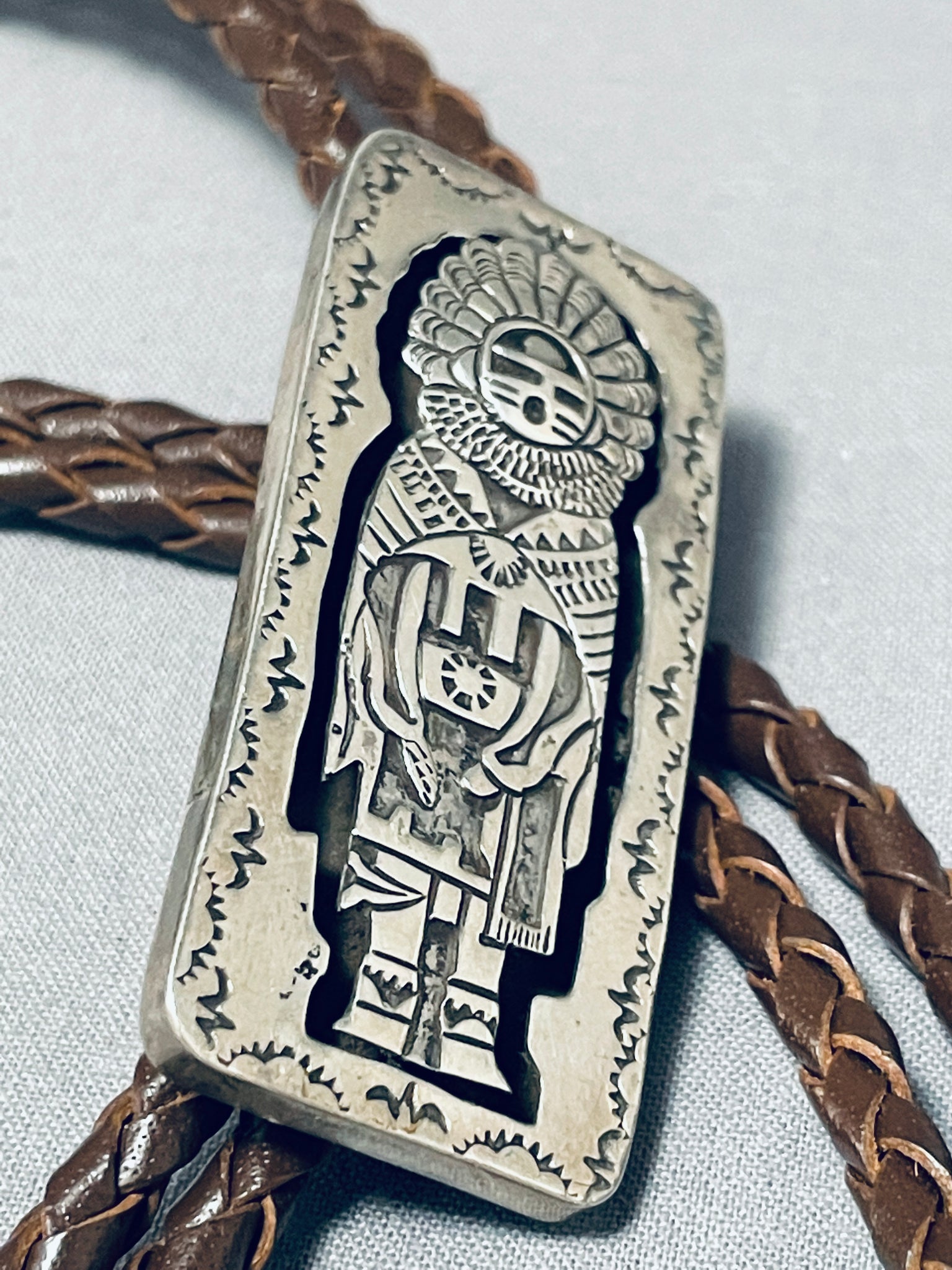 Astounding Vintage Native American Navajo Sterling Silver Kachina Bolo