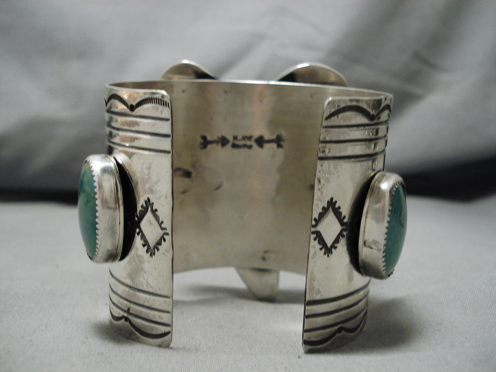 Astounding Vintage Native American Navajo Wide Royston Turquoise Sterling Silver Bracelet