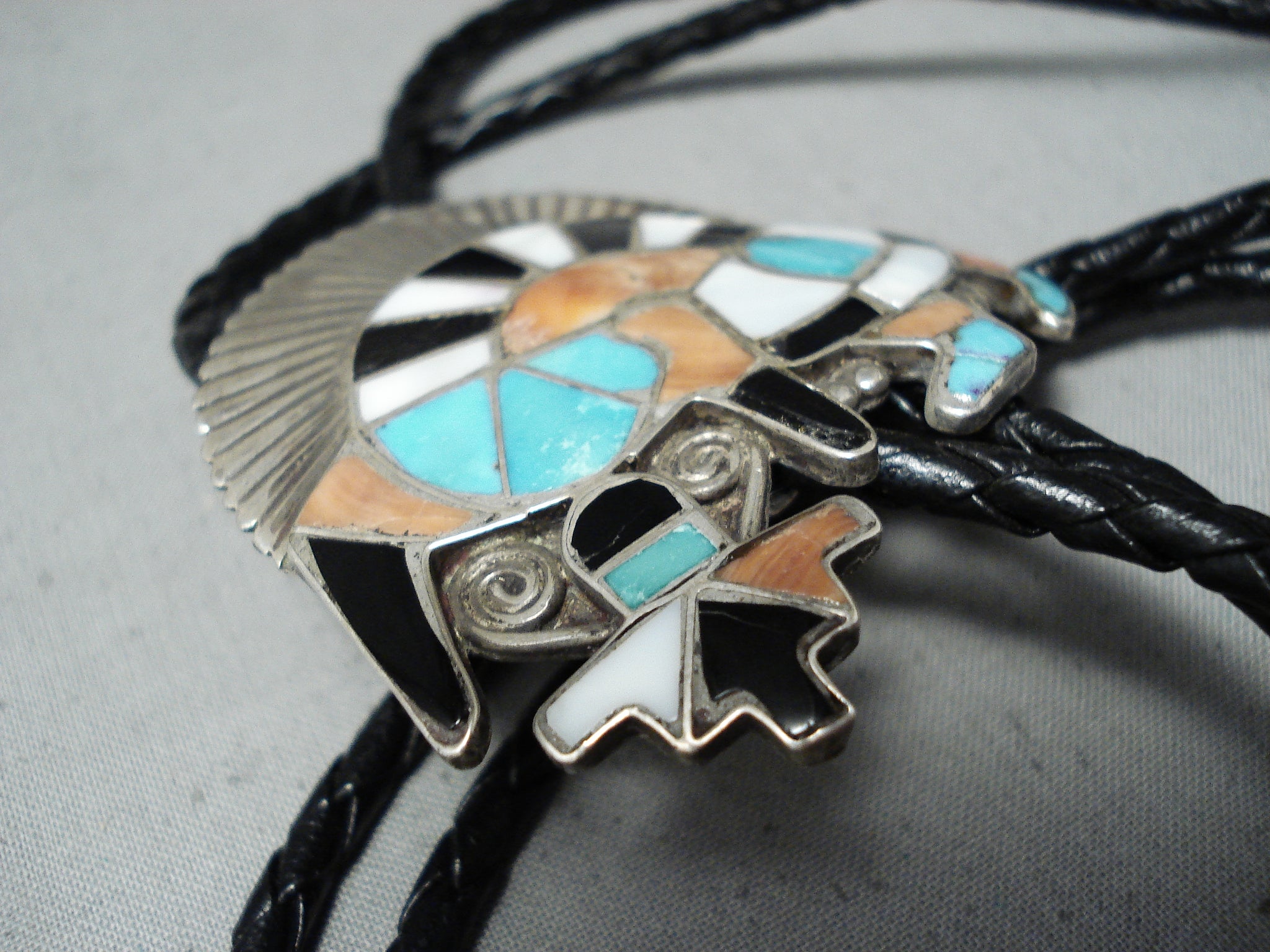 Astounding Vintage Zuni Turquoise Sterling Silver Bolo Native American Old