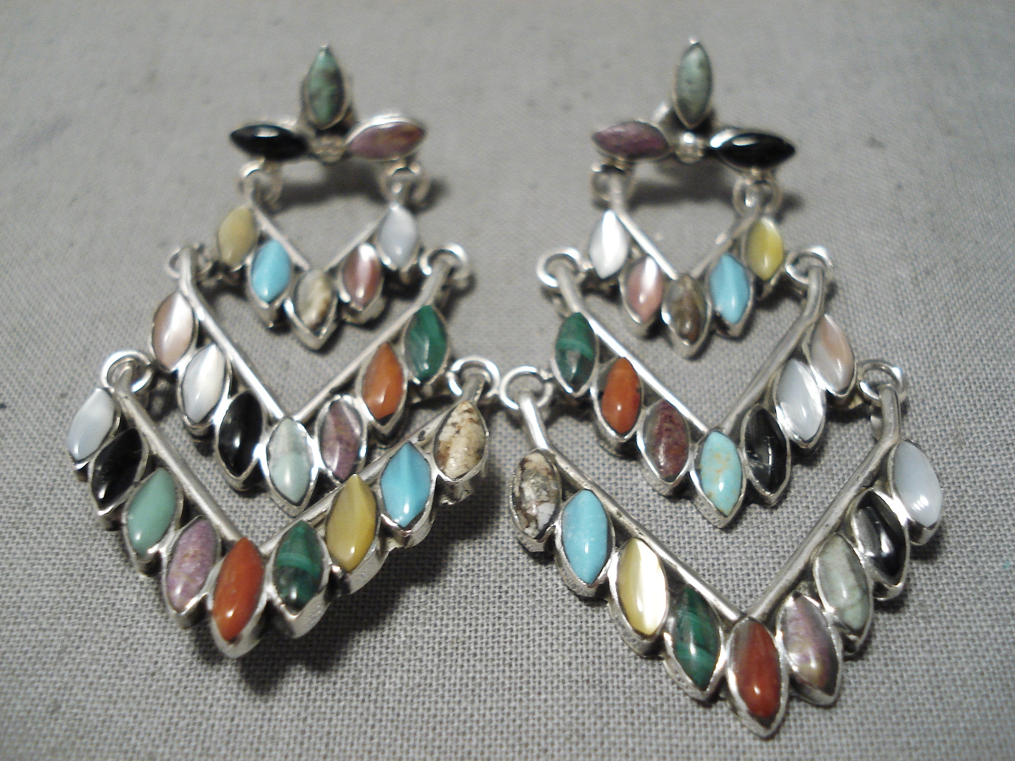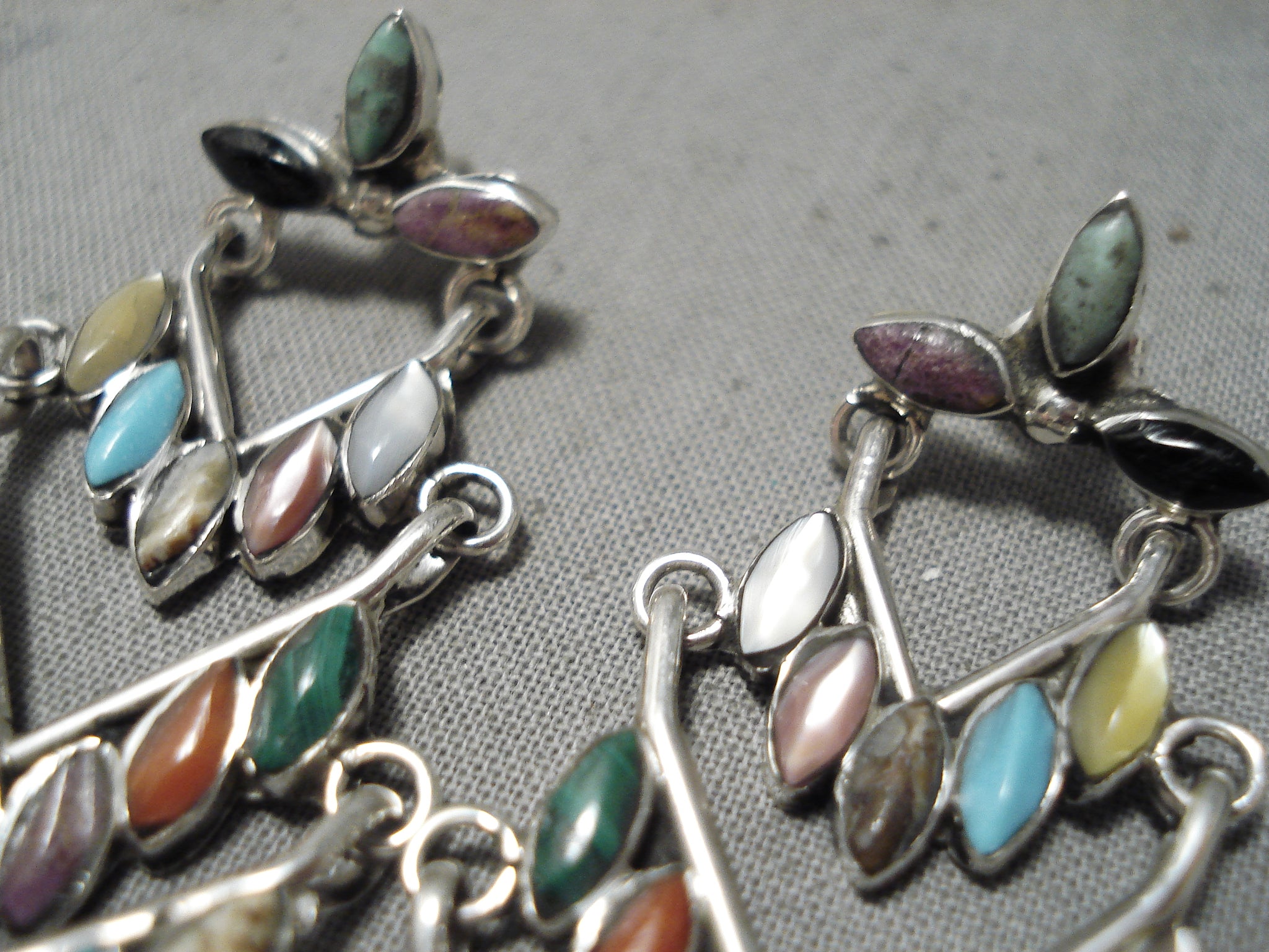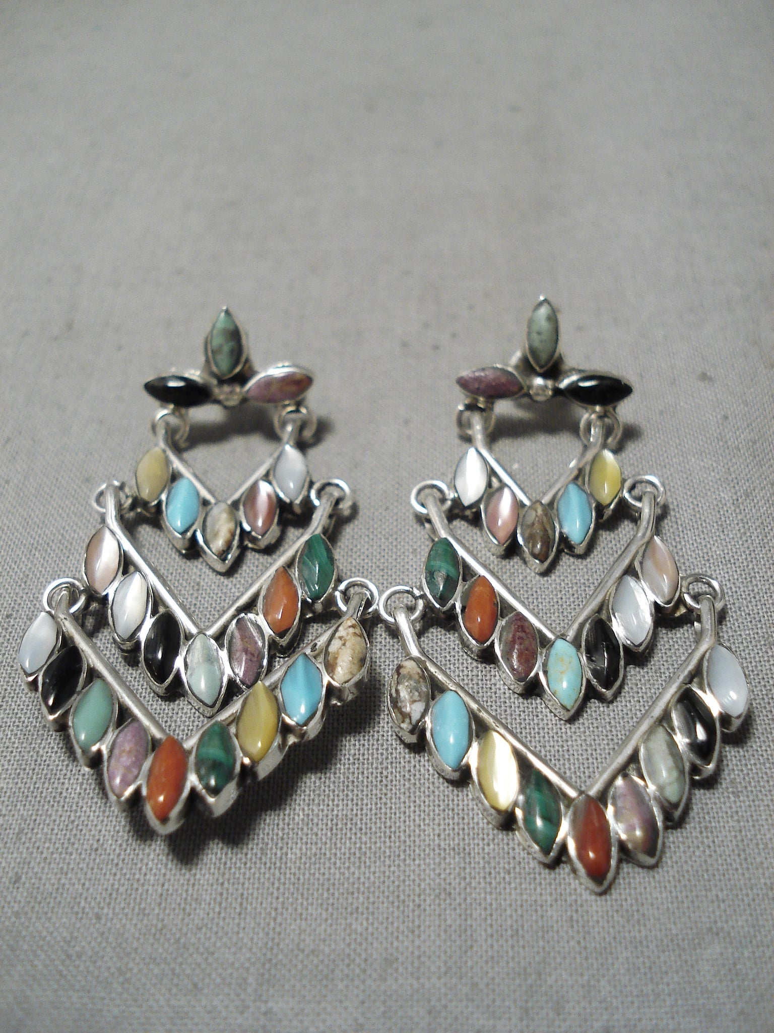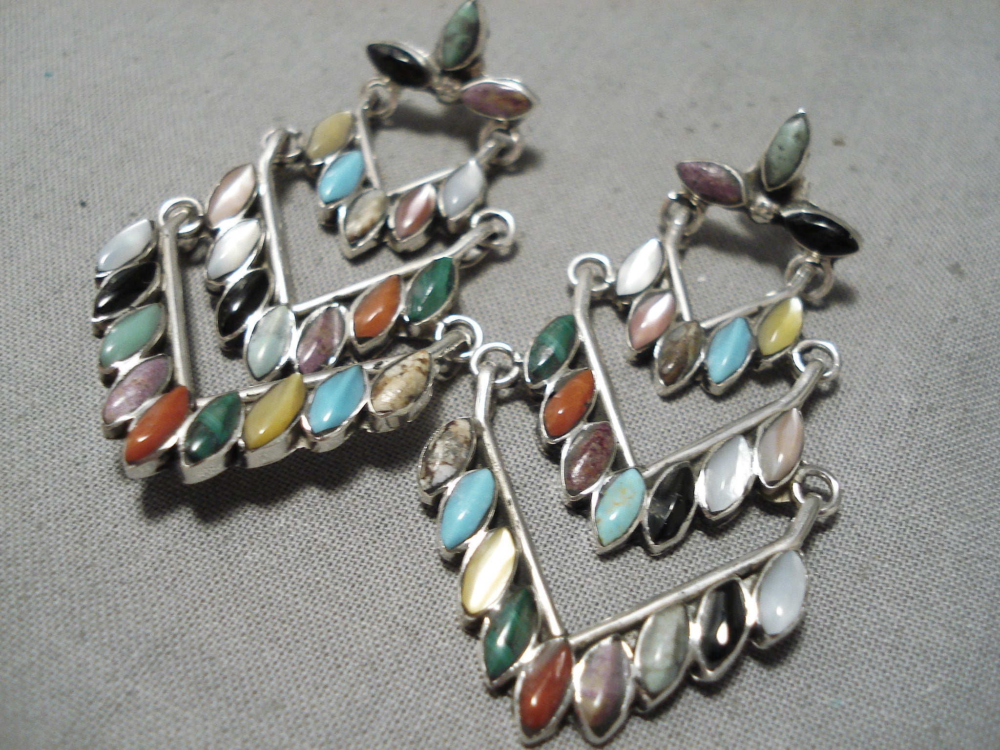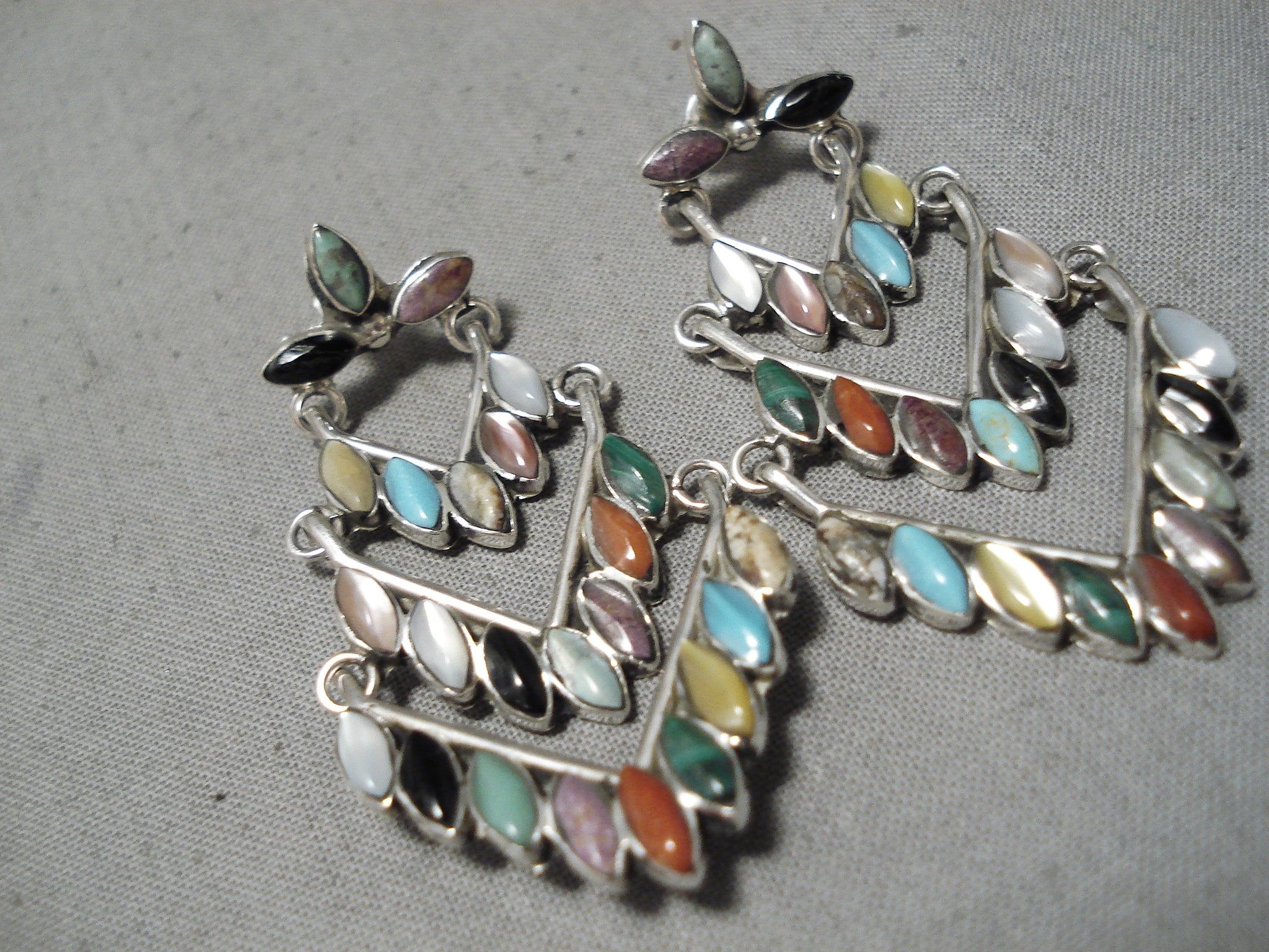 Astounding Zuni Turquoise Multi-stone Sterling Silver Earrings Native American