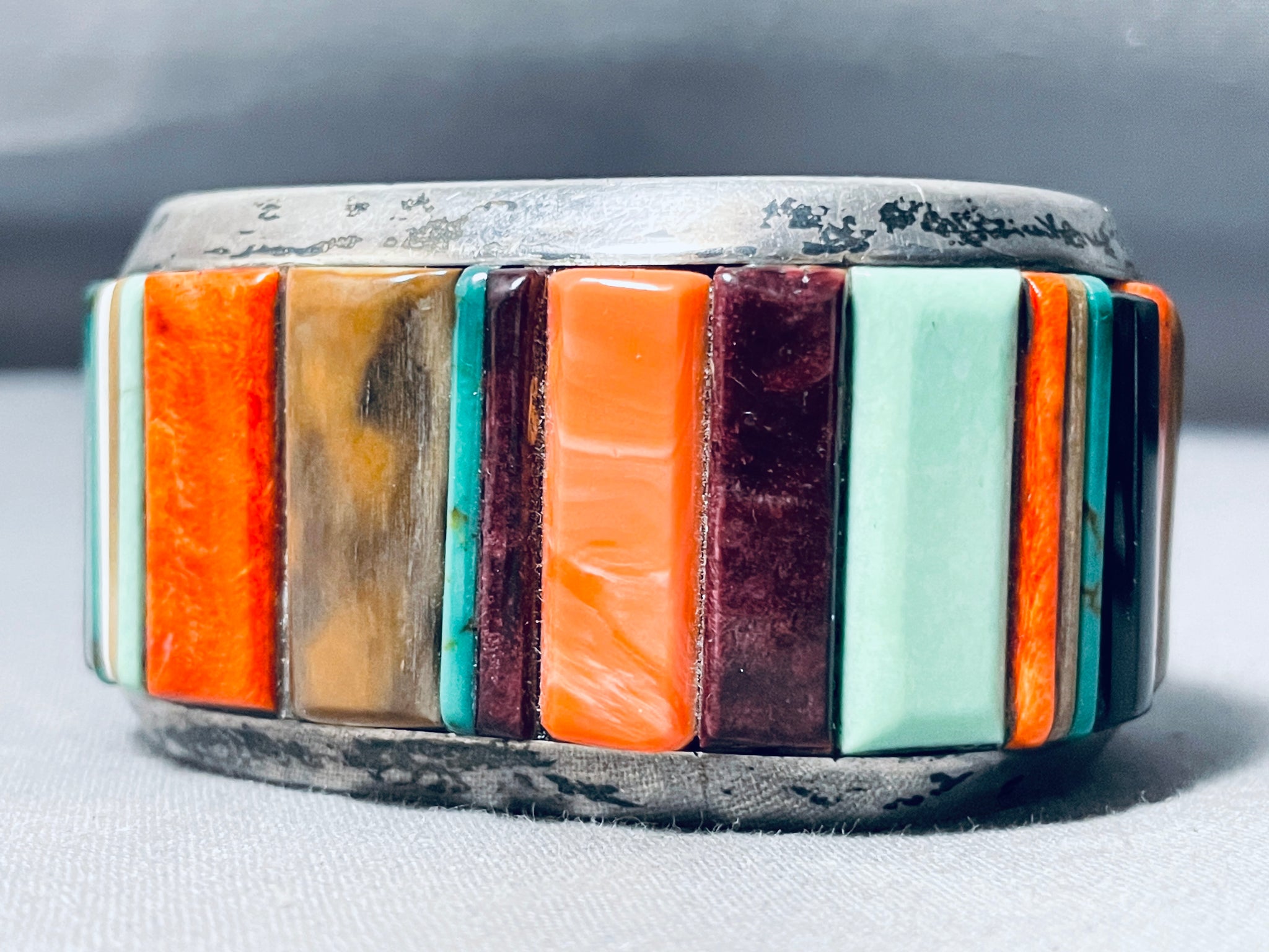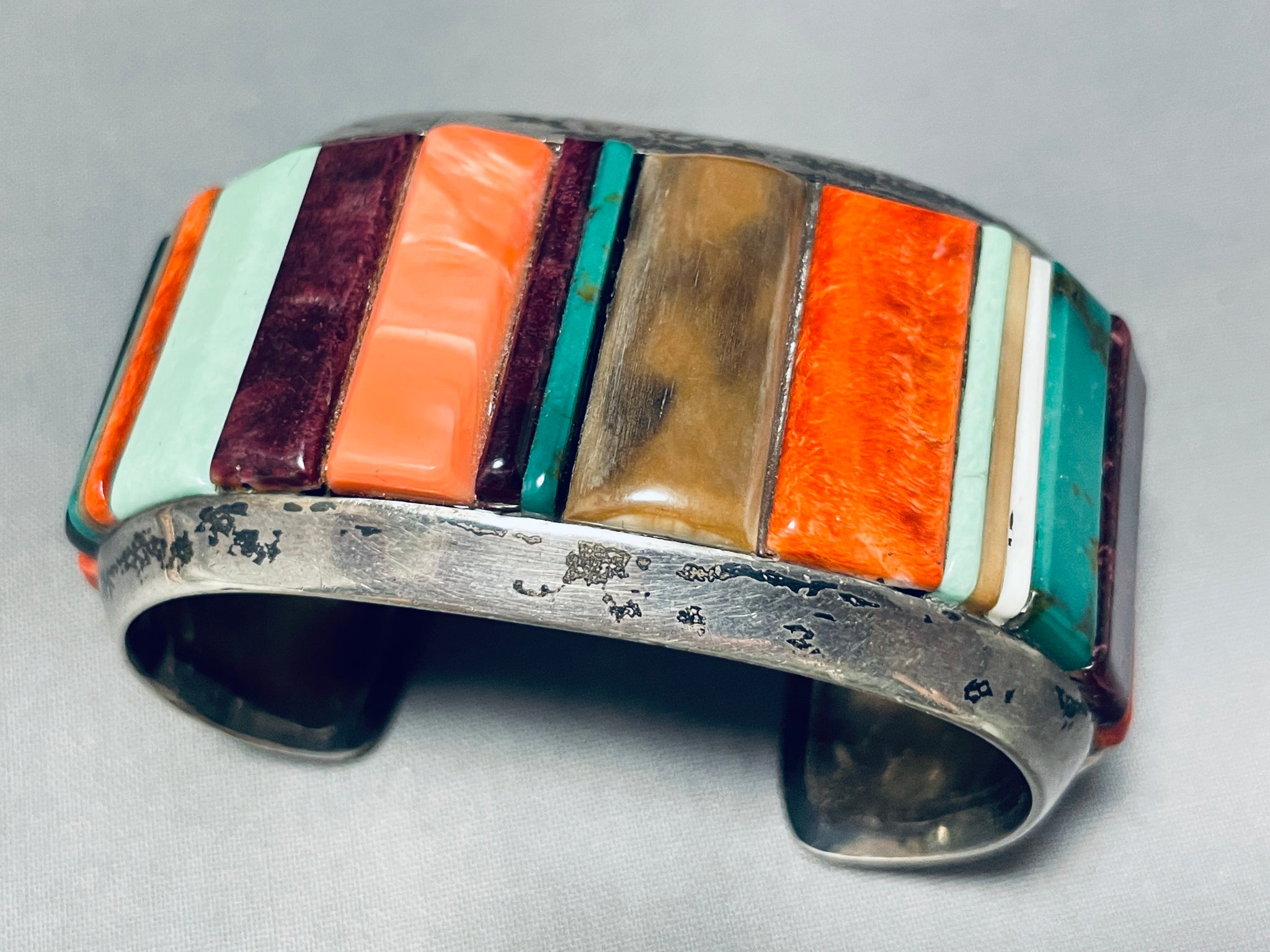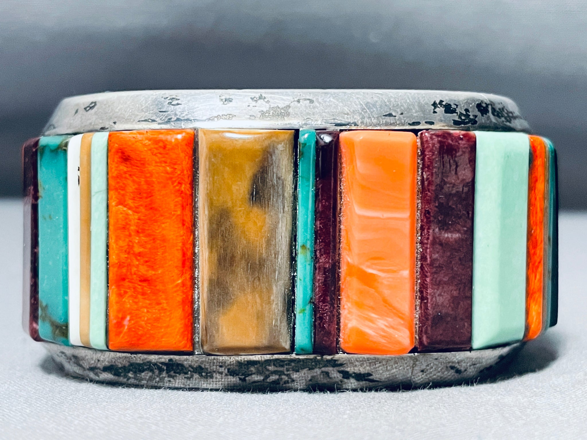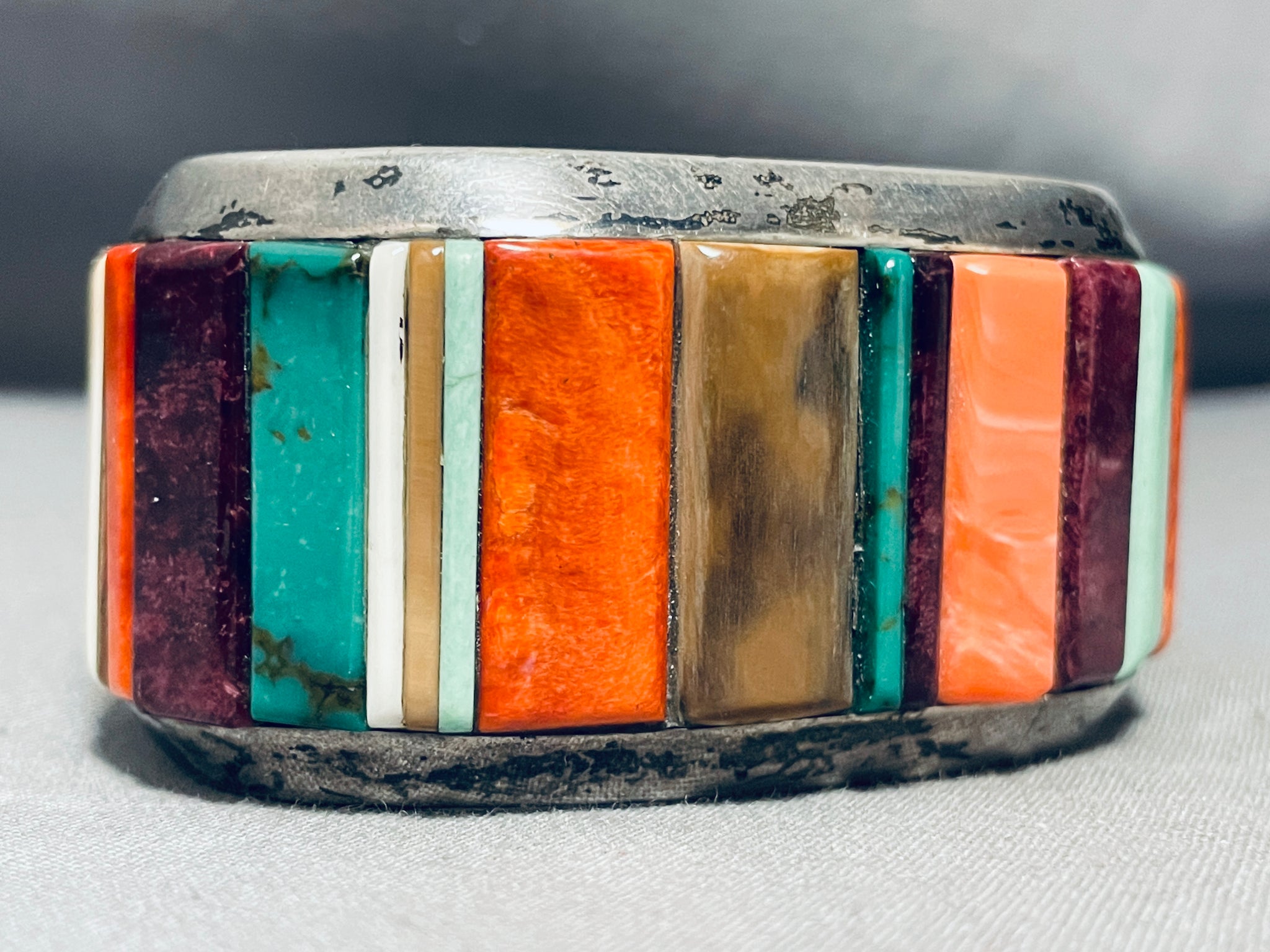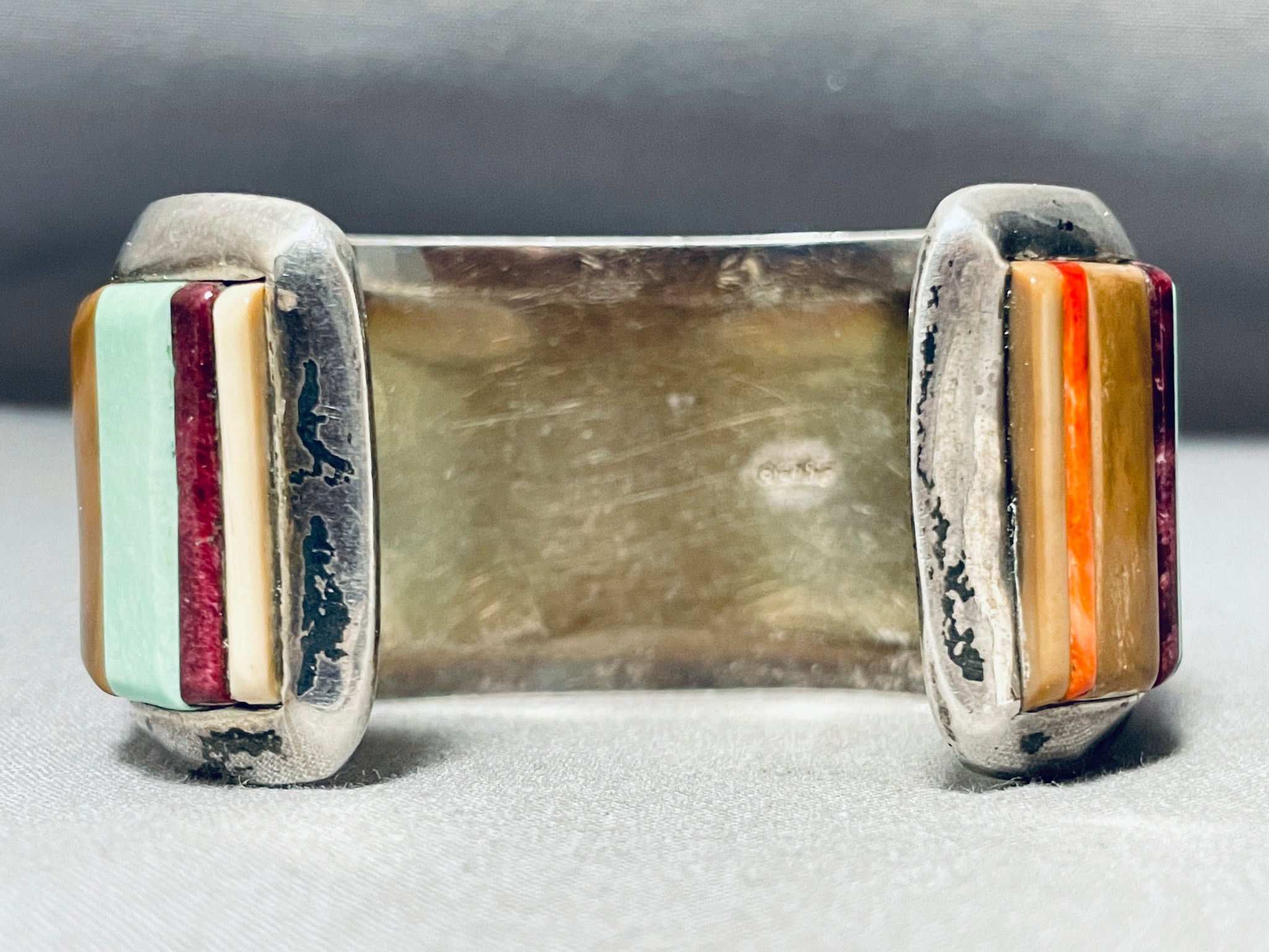 Astronomical Vintage Native American Navajo Turquoise Inlay Sterling Silver Bracelet