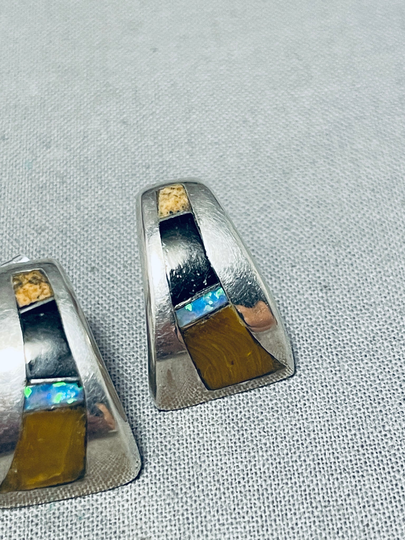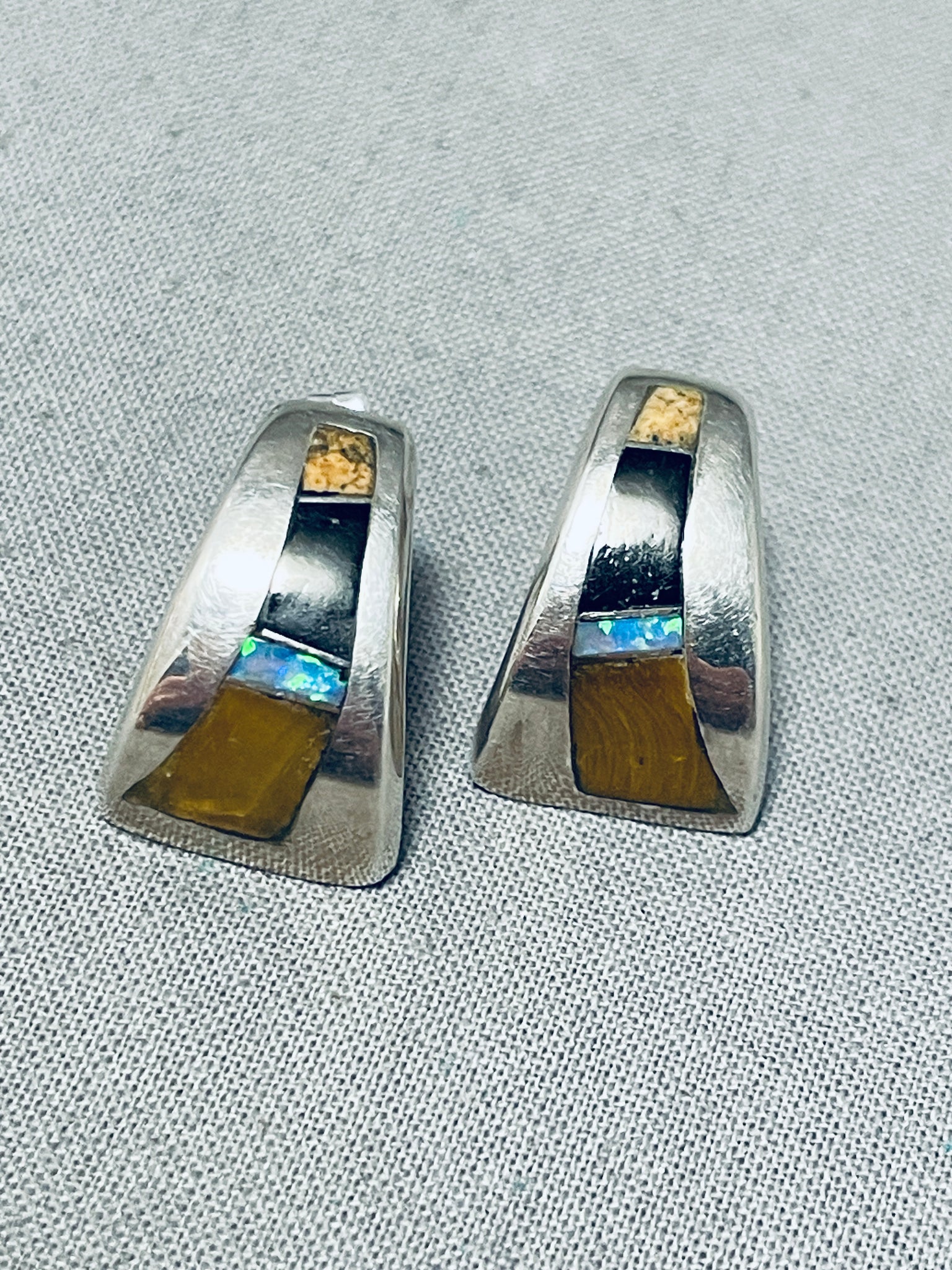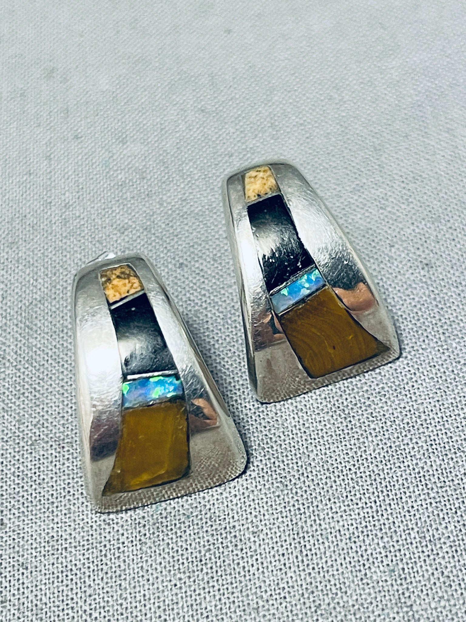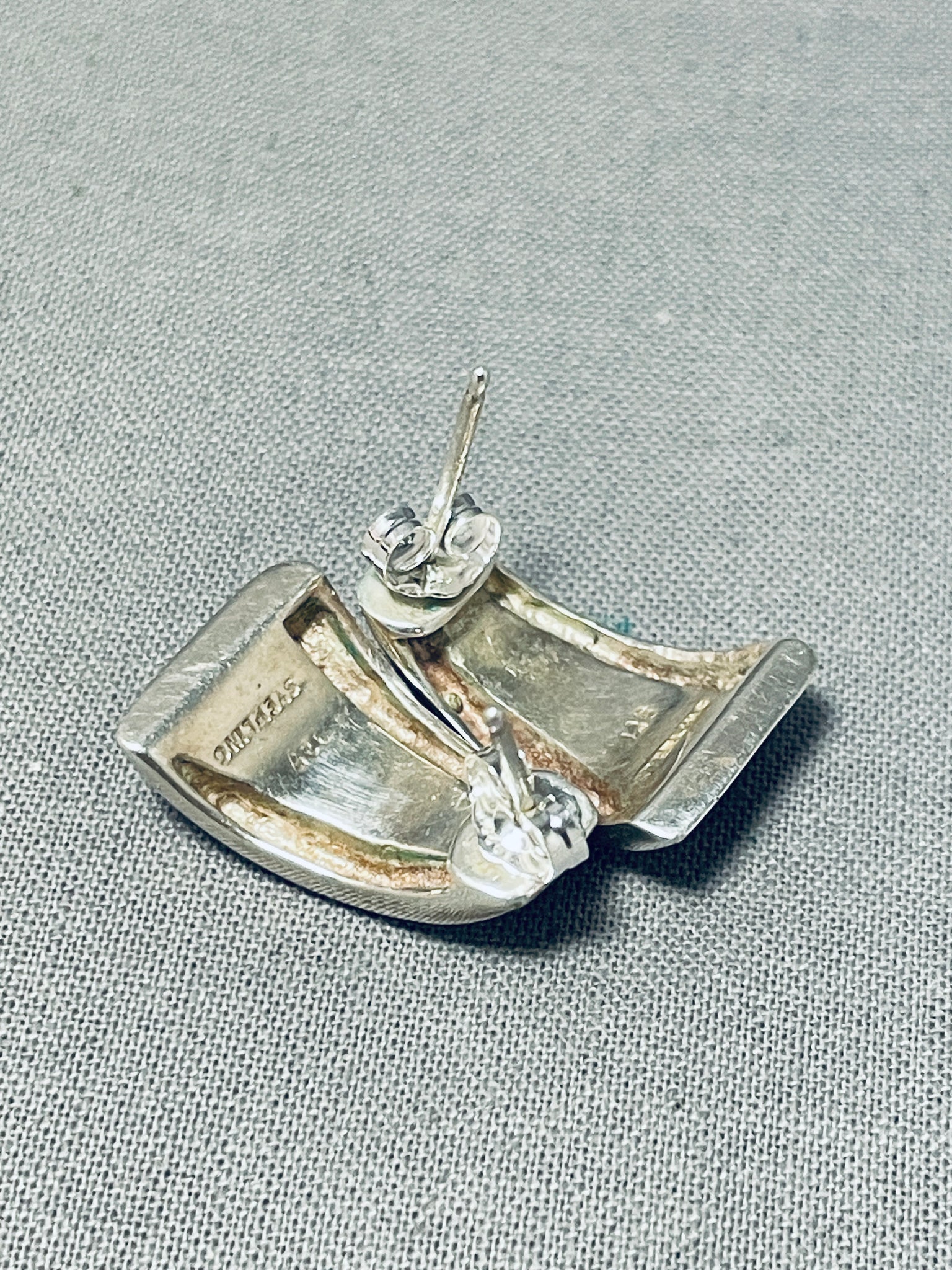 Attractive Vintage Native American Navajo Jasper, Turquoise Sterling Silver Earrings