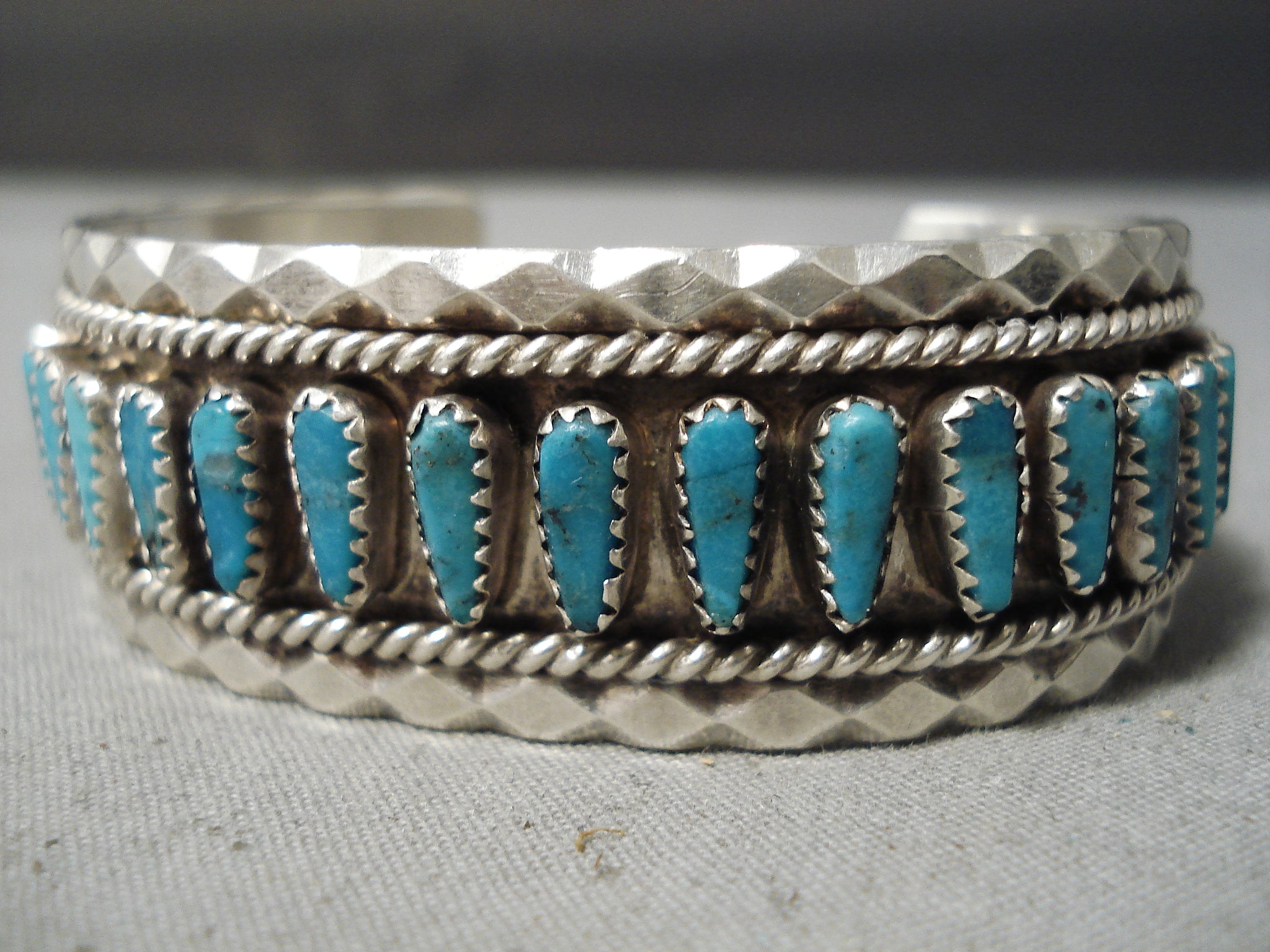 Attractive Vintage Native American Navajo Turquoise Sterling Silver Bracelet Old
