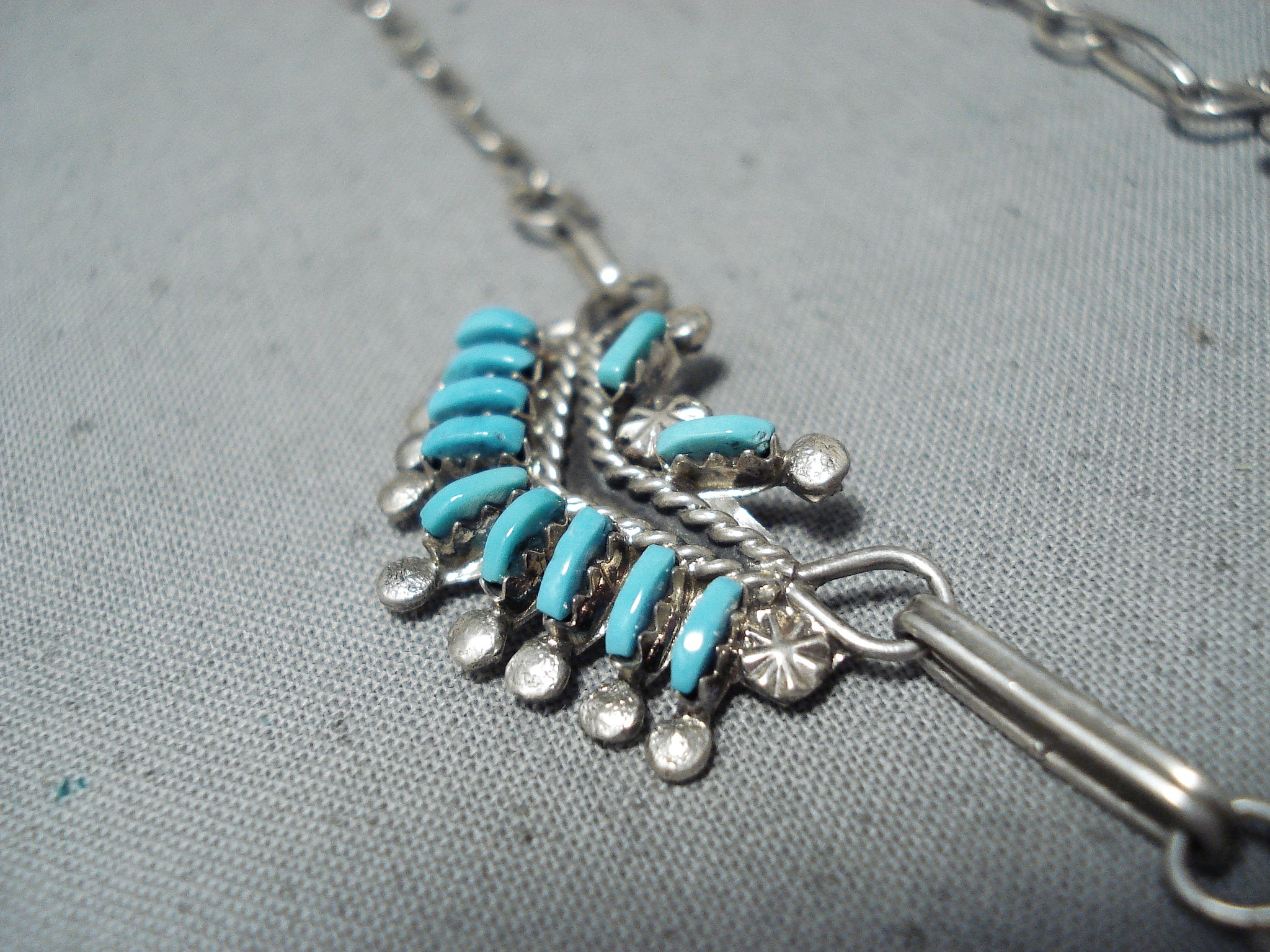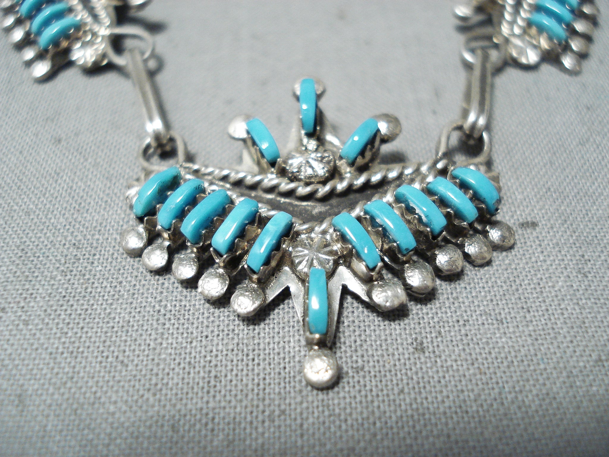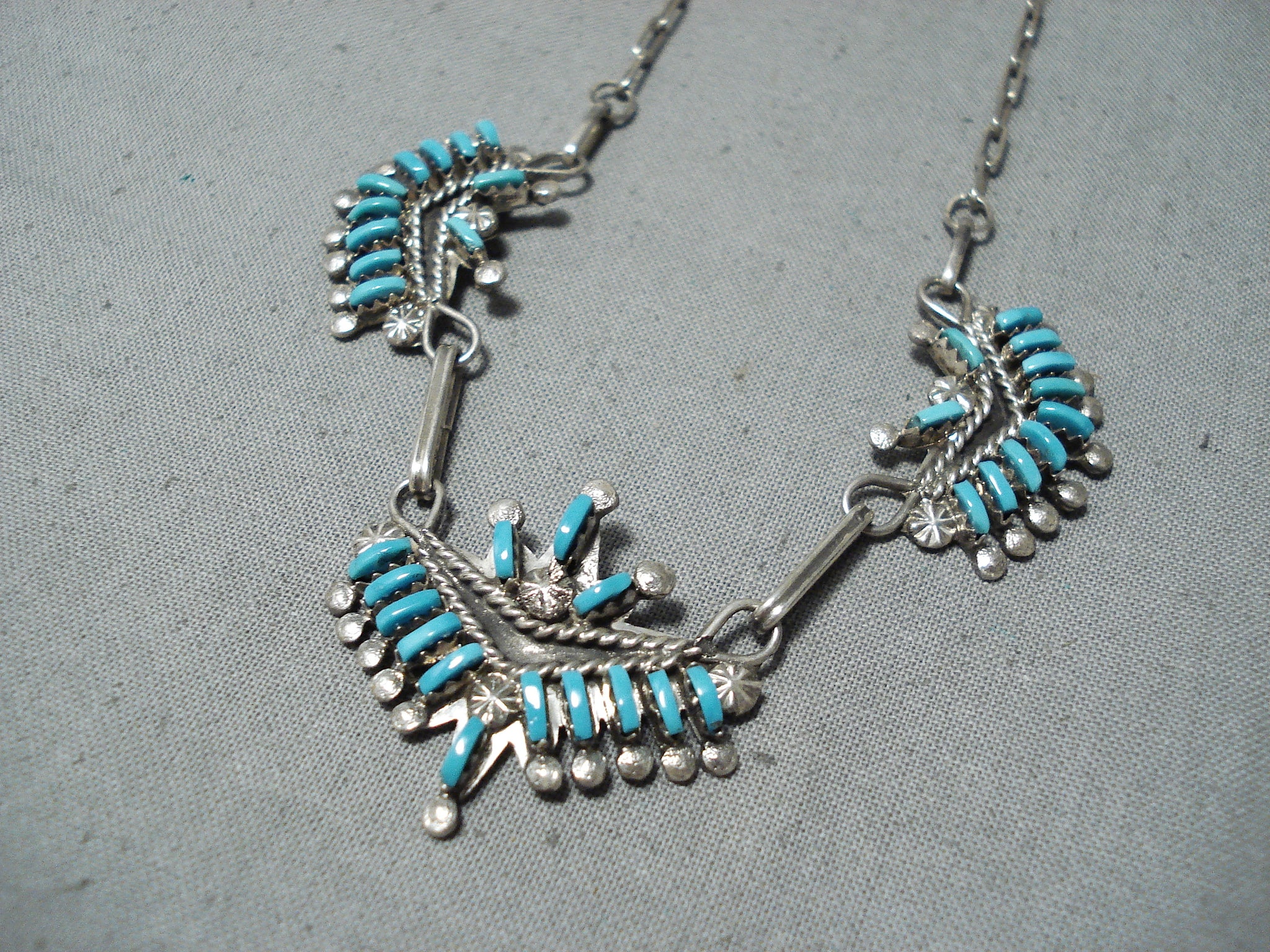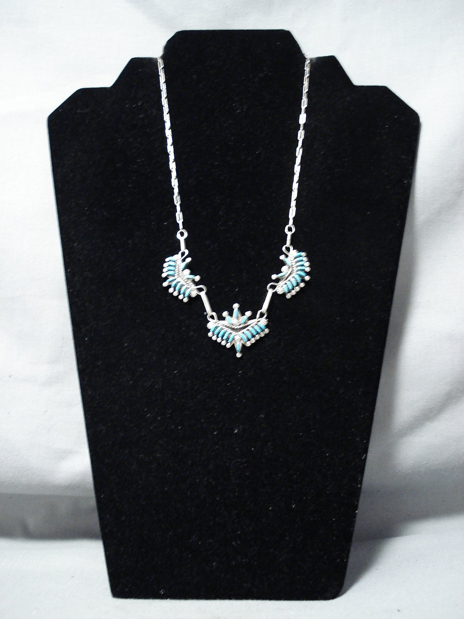Attractive Vintage Native American Zuni Sleeping Beauty Turquoise Sterling Silver Necklace Old