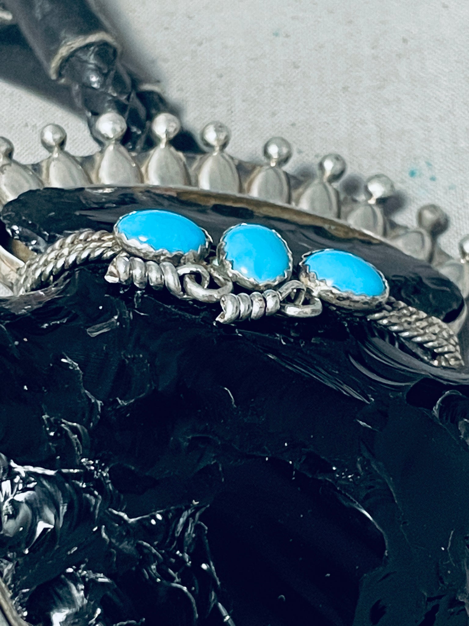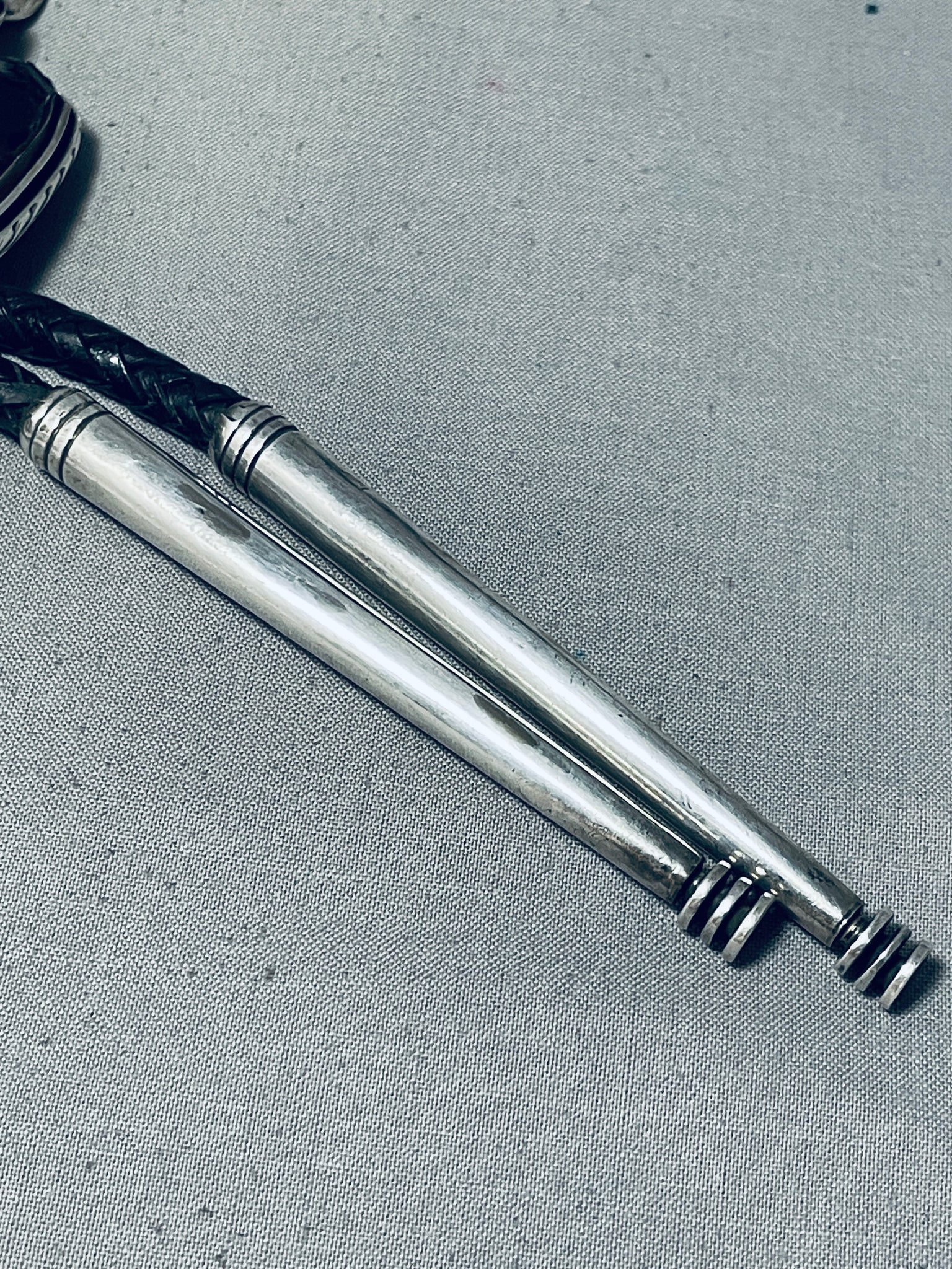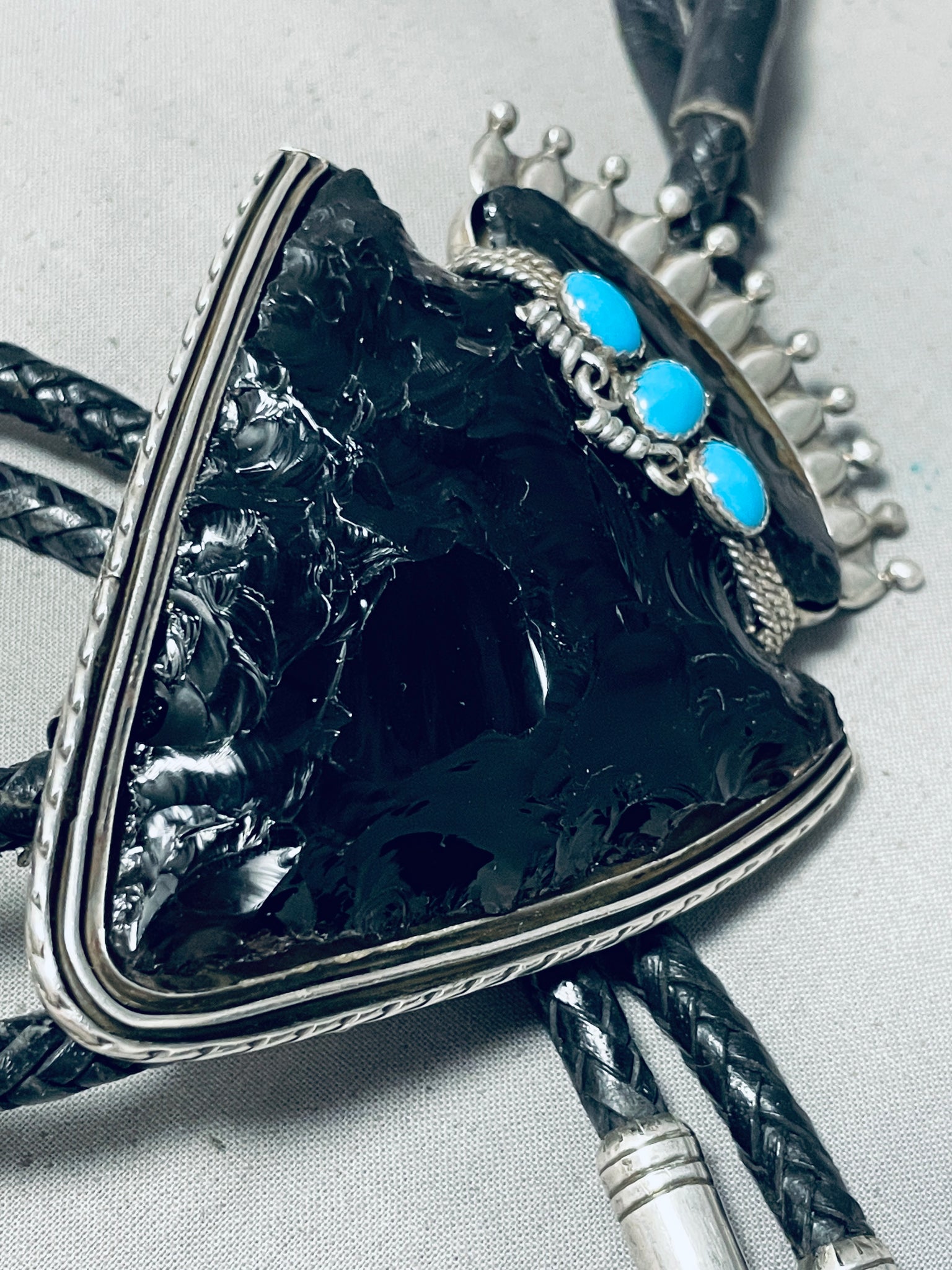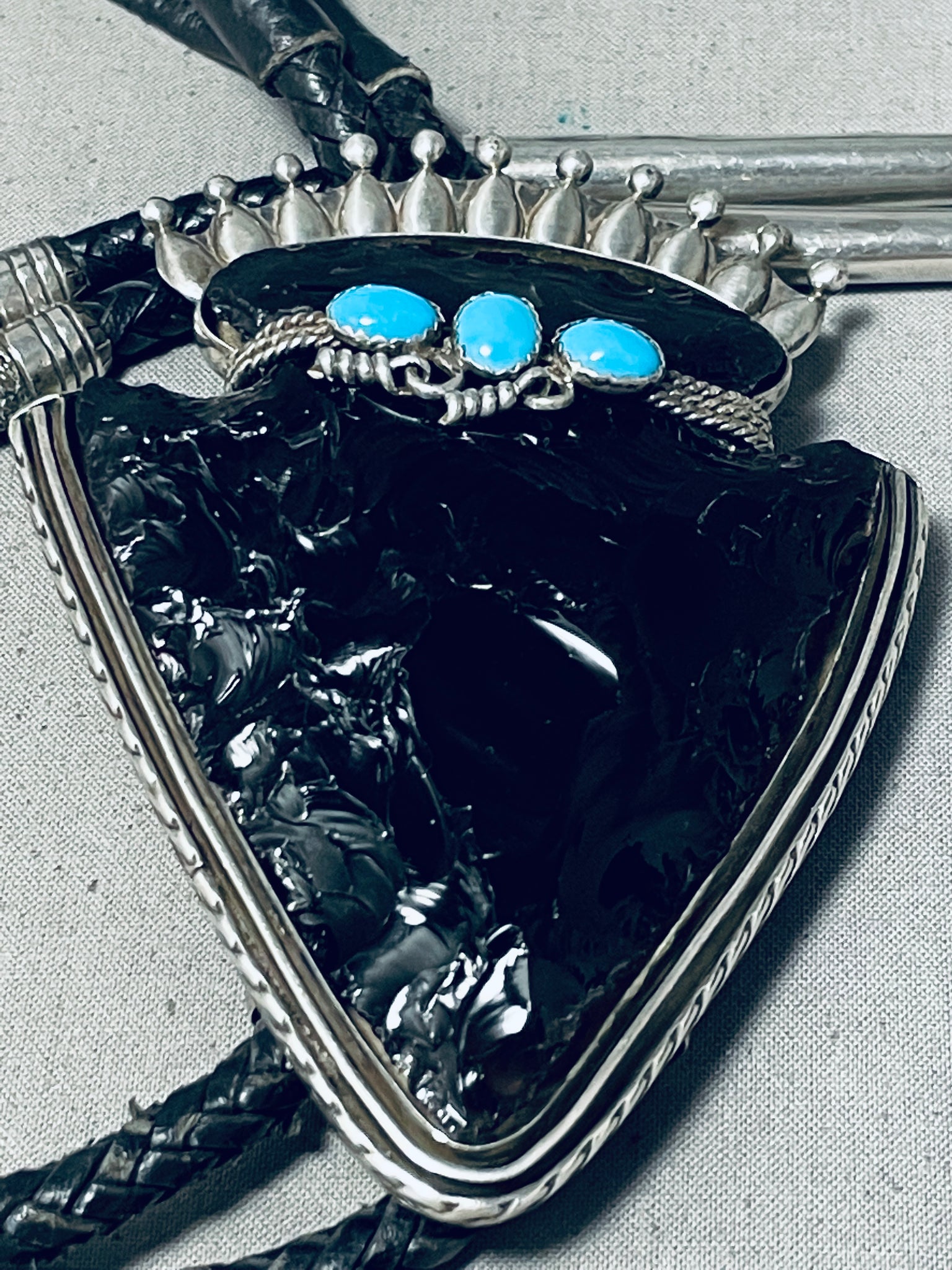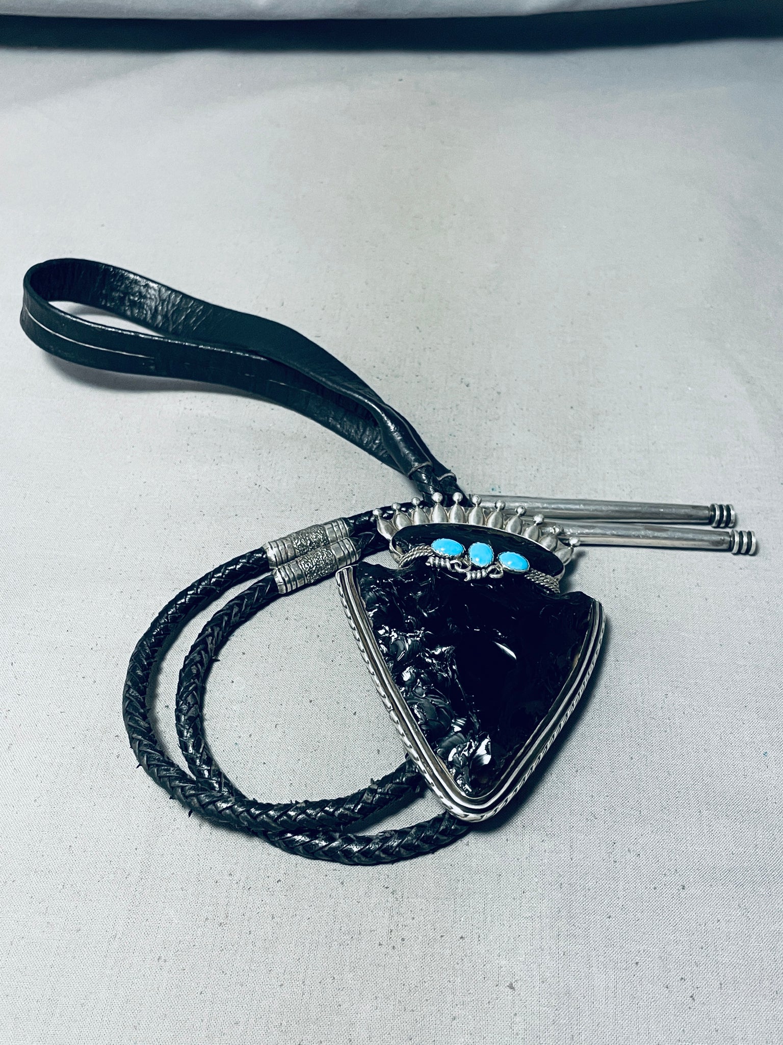 Authentic 154 Grams Vintage Native American Navajo Turquoise Arrowhead Sterling Silver Bolo Tie