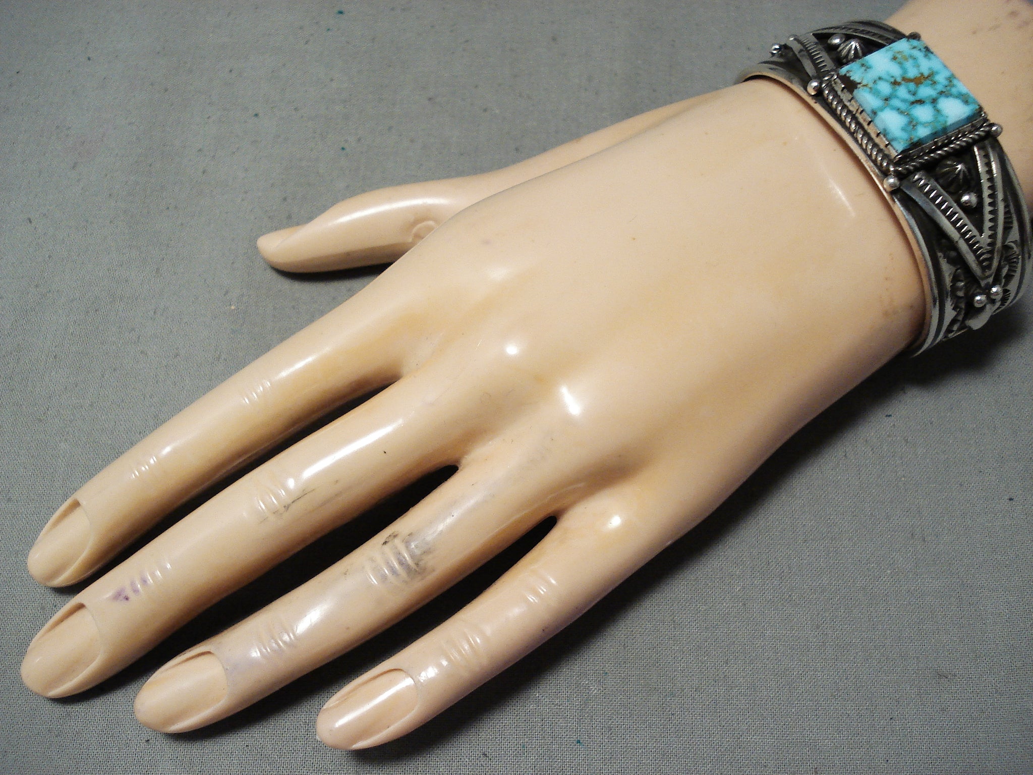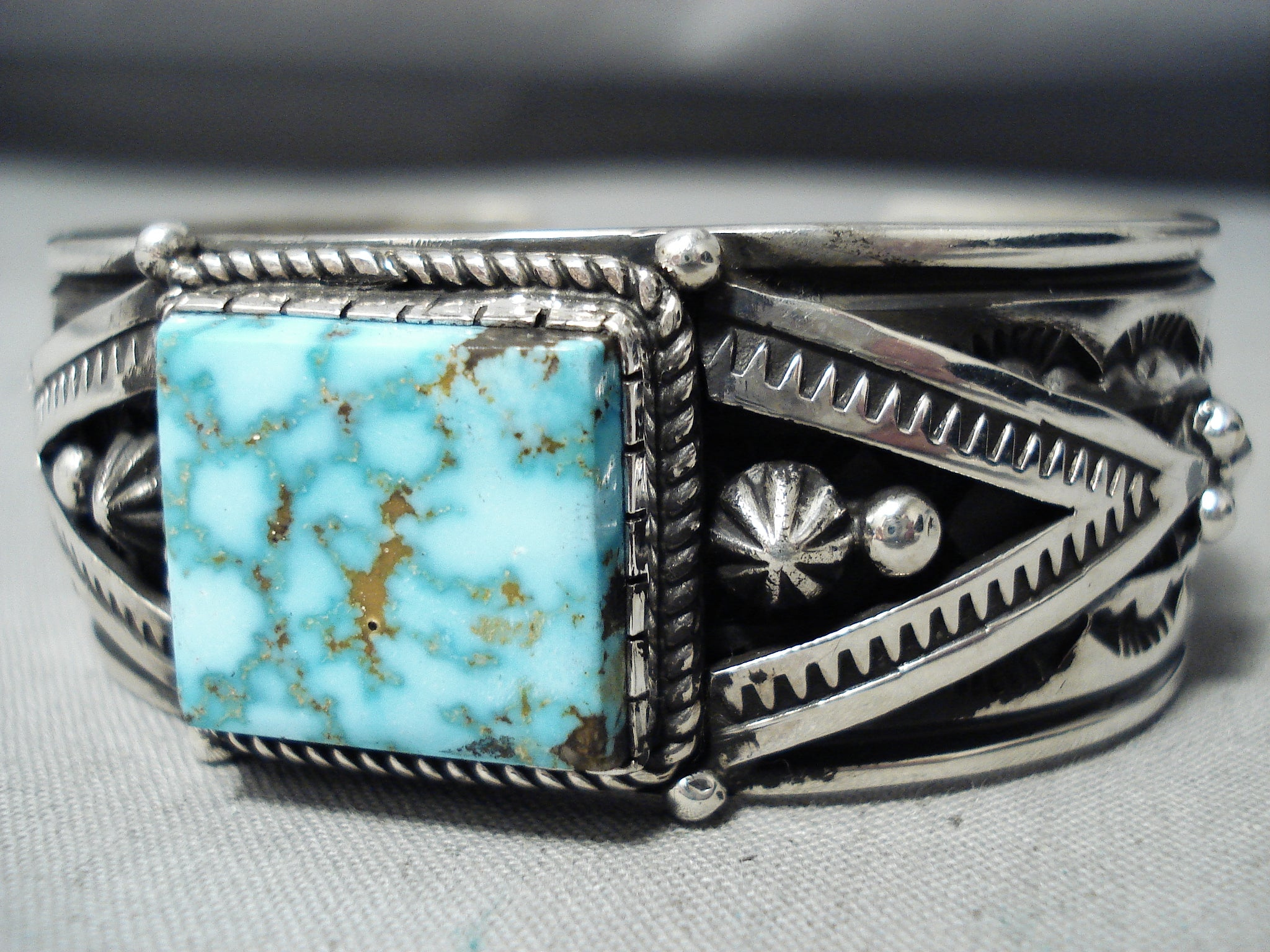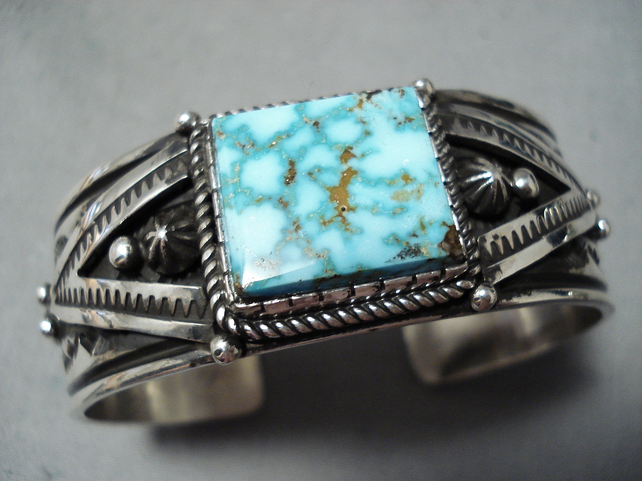 Authentic Albert Jake Native American Navajo High Grade Turquoise Sterling Silver Bracelet