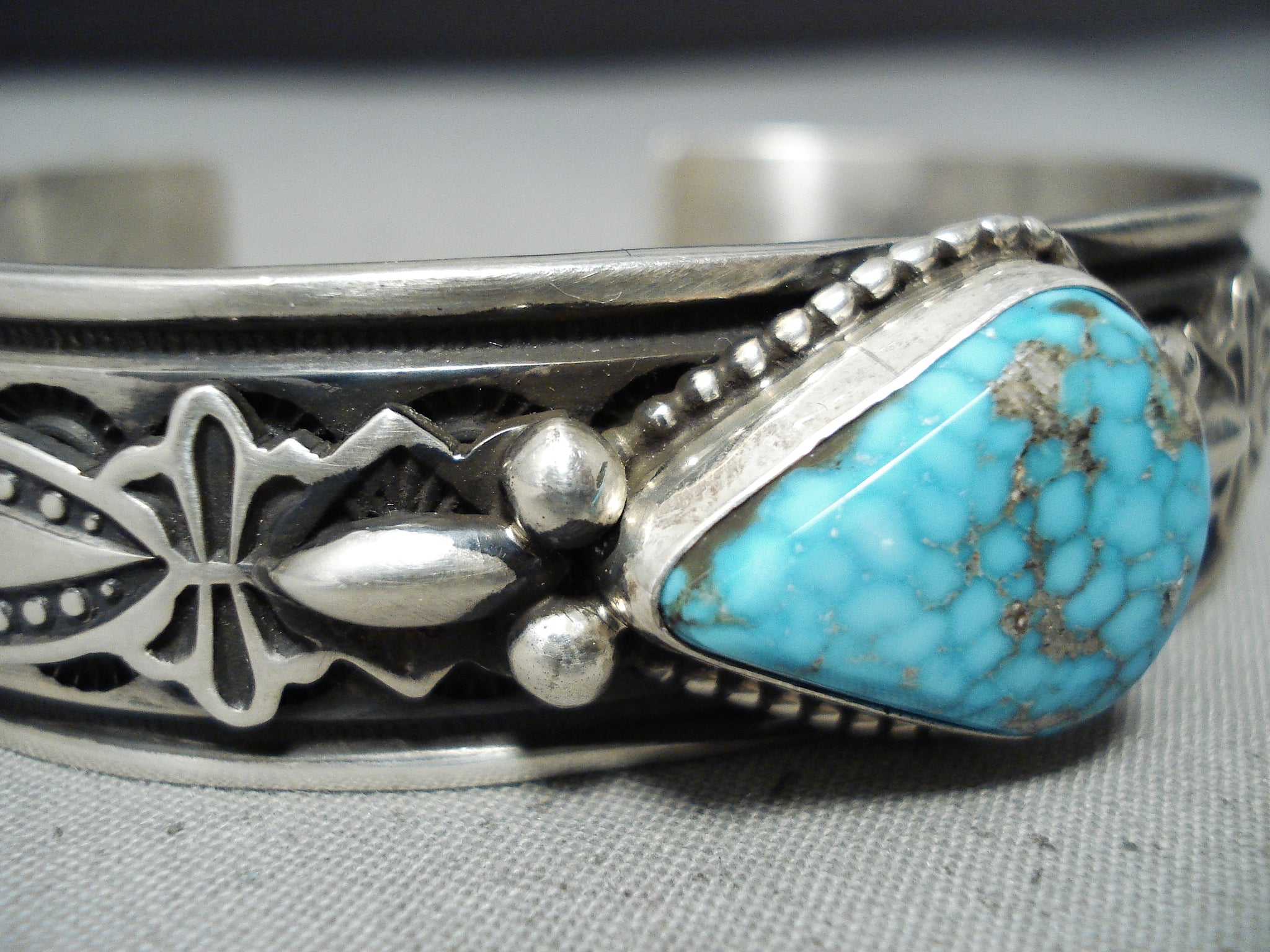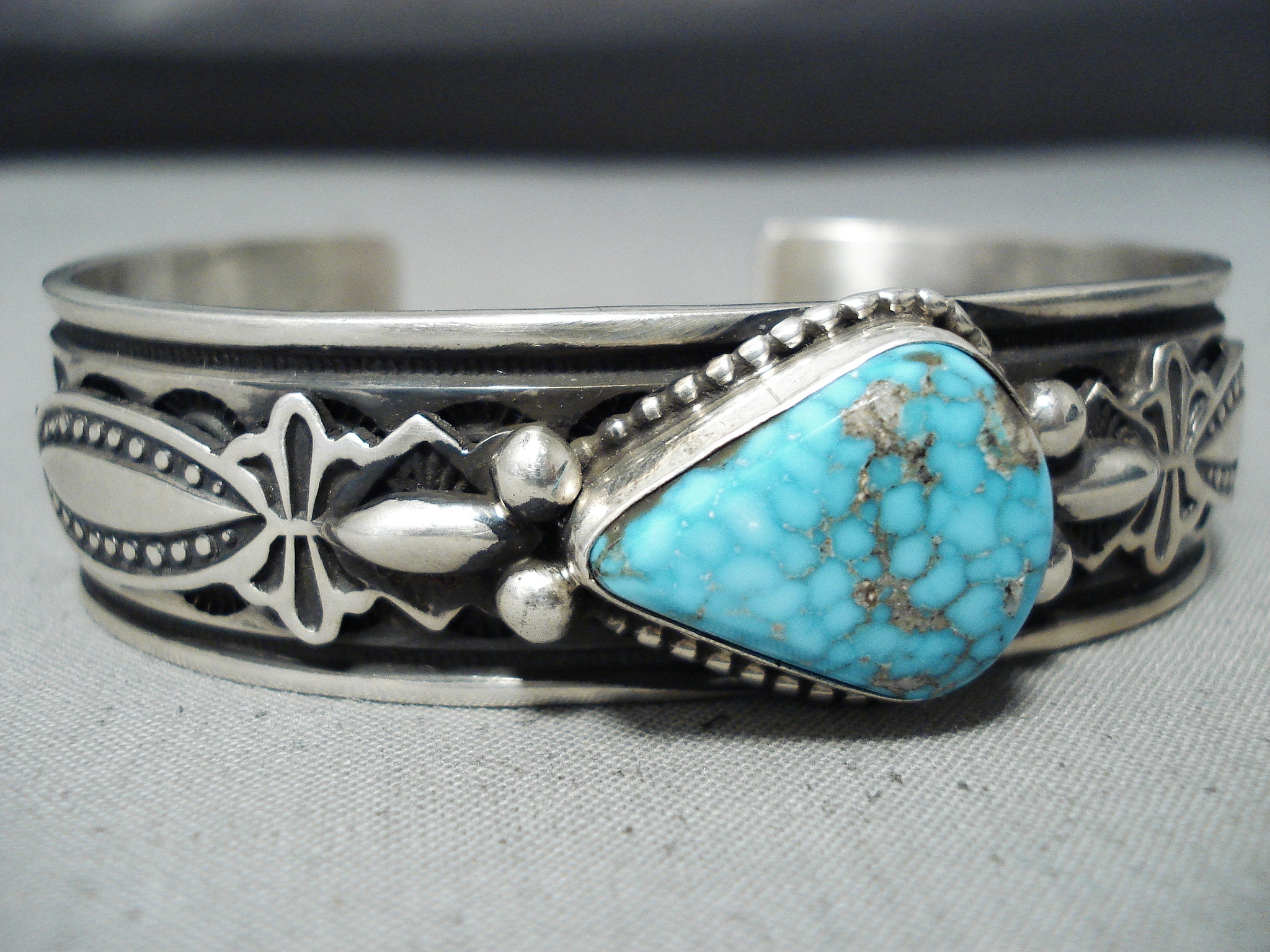Authentic Albert Jake Native American Navajo Turquoise Sterling Silver Bracelet