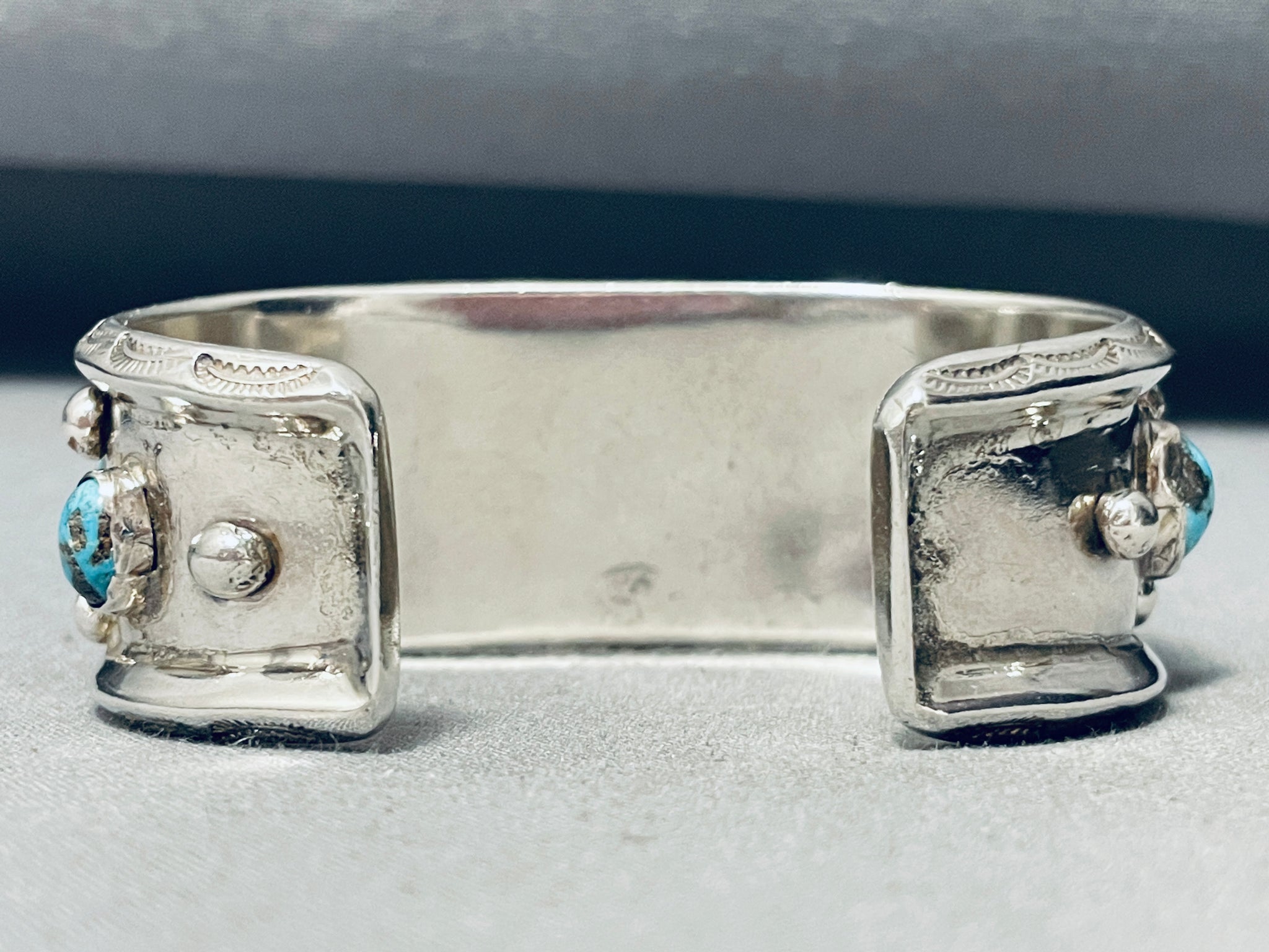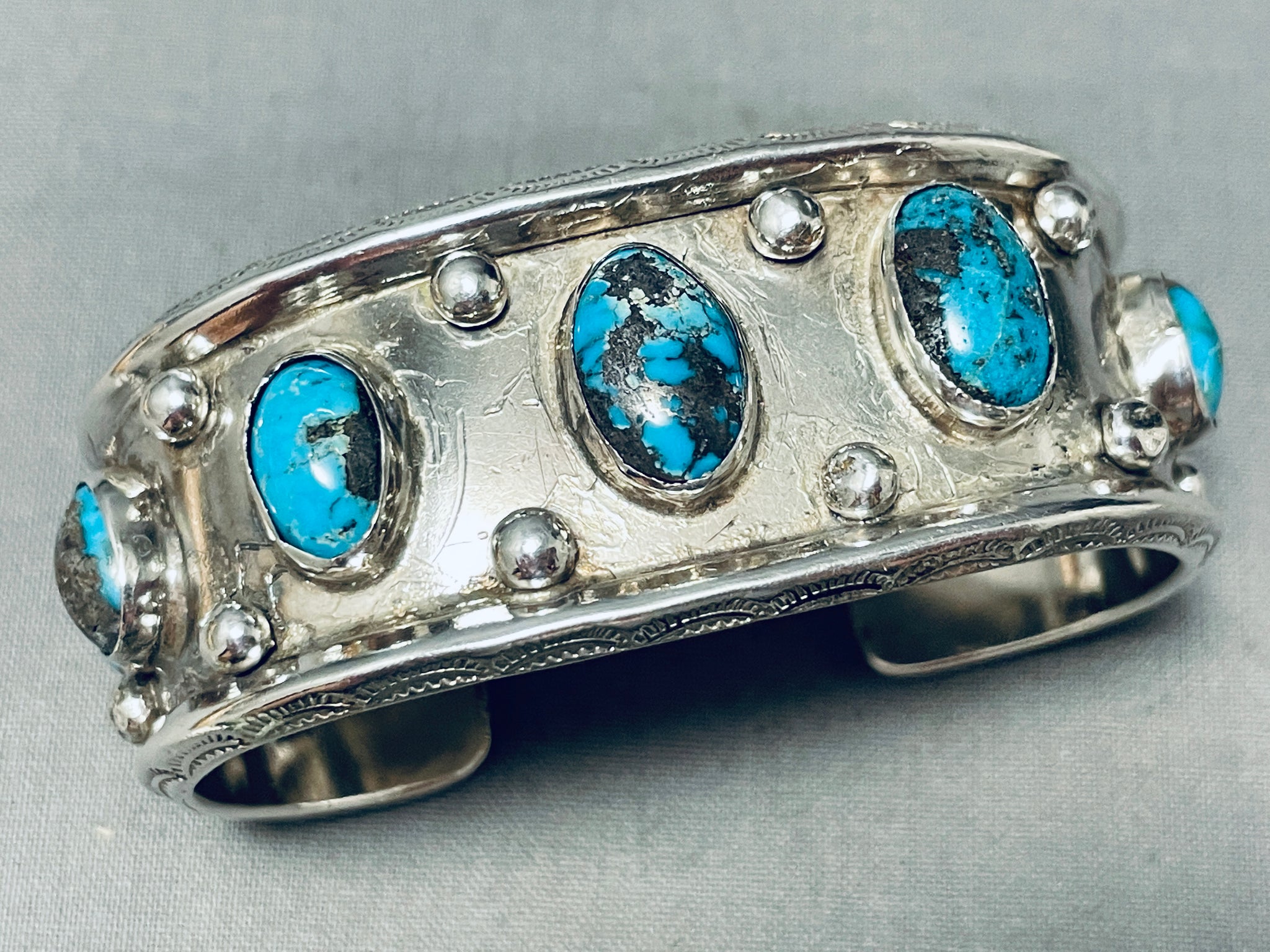 Authentic Early Deposit Bisbee Turquoise Vintage Native American Navajo Sterling Silver Bracelet
