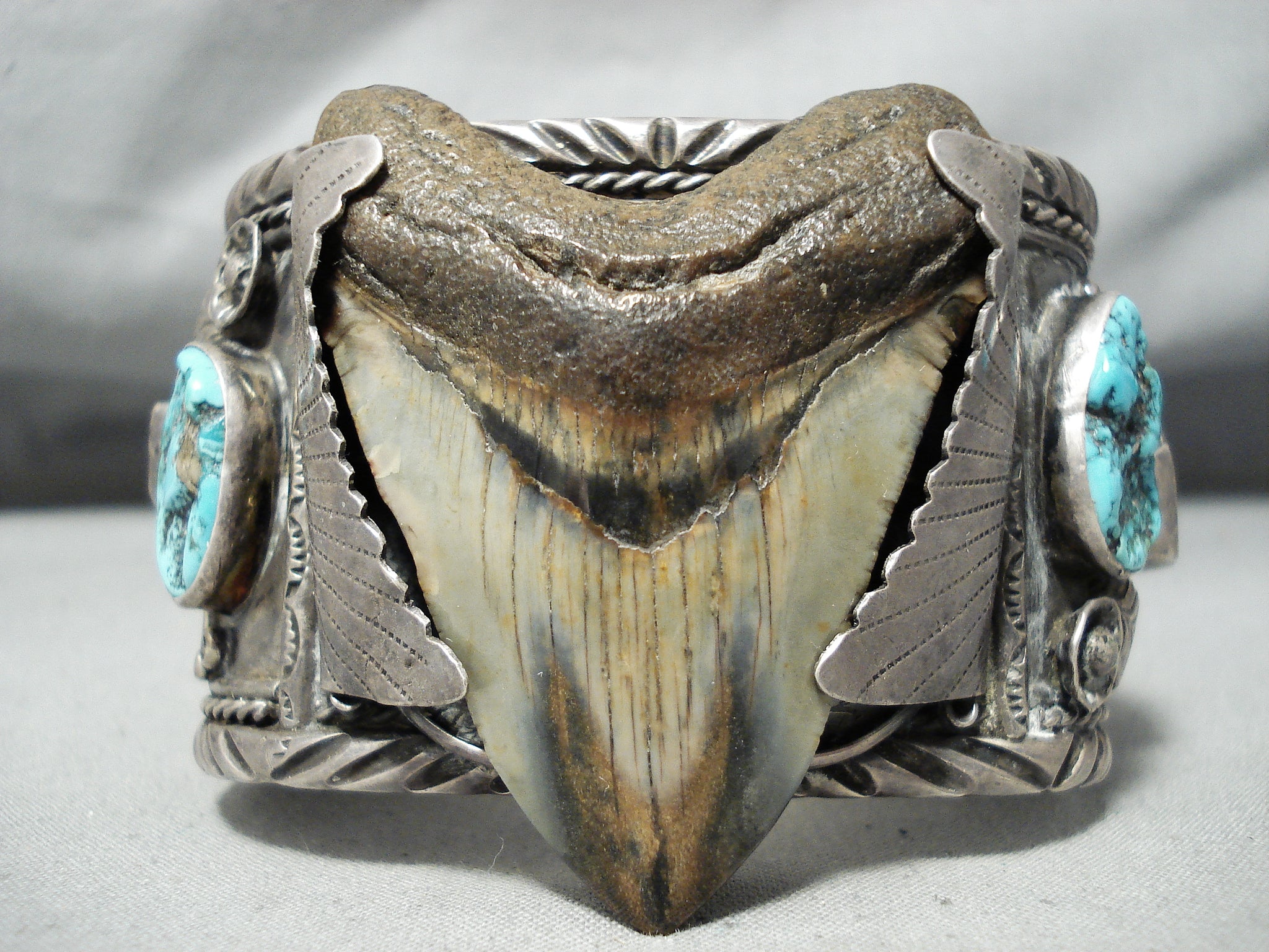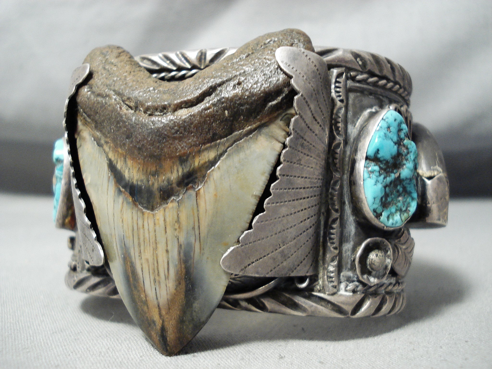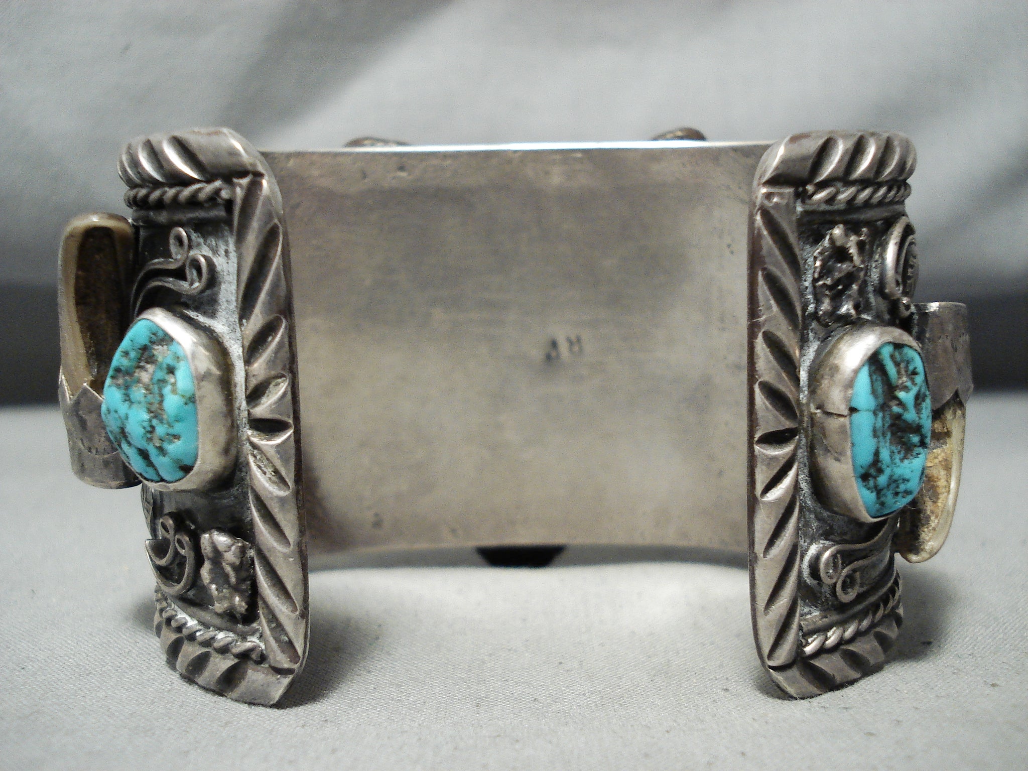 Authentic Extremely Vintage Native American Navajo Turquoise Megeladon Sterling Silver Bracelet