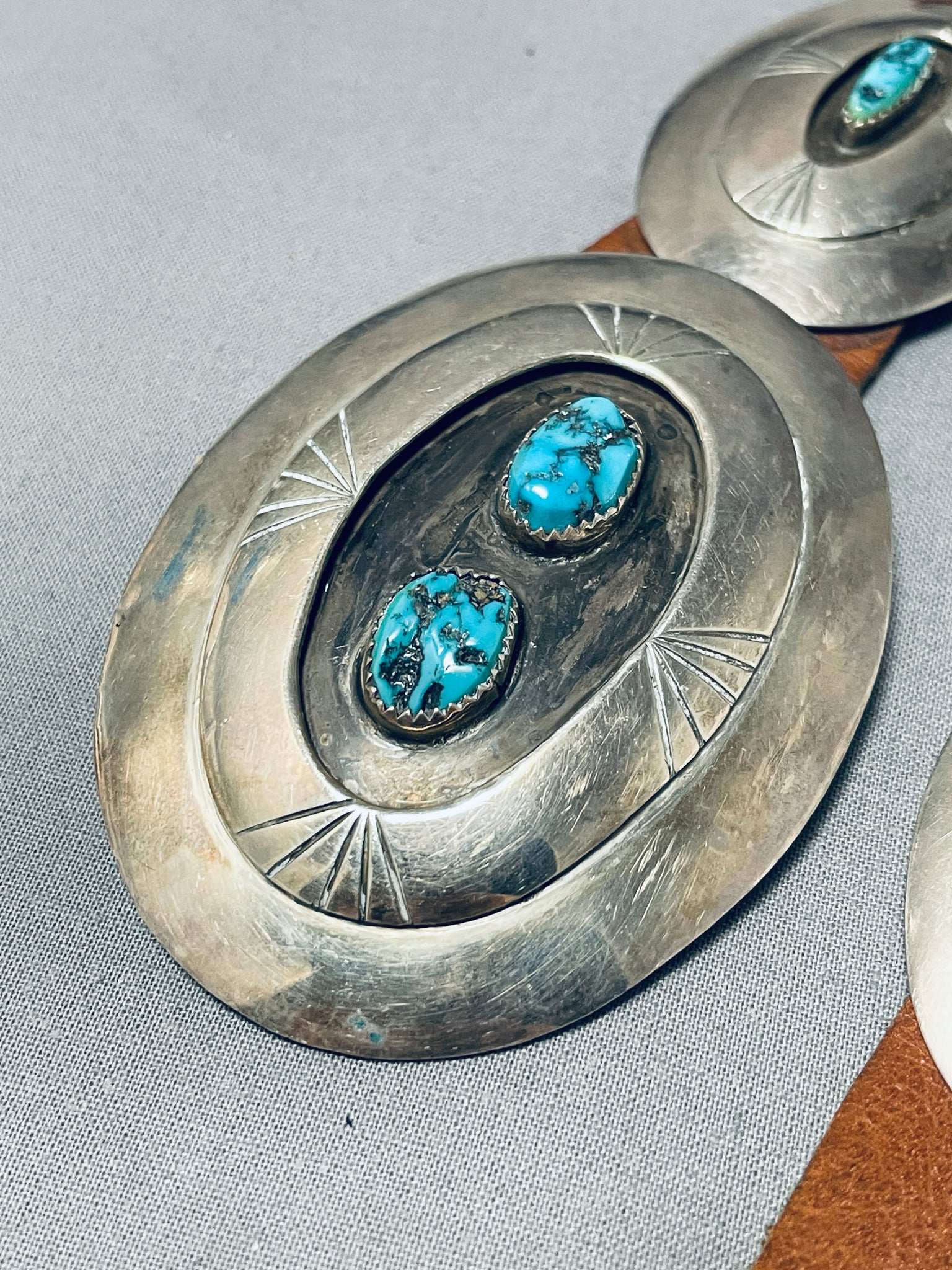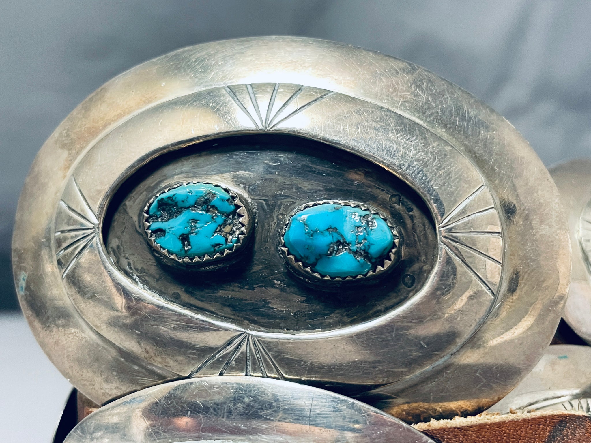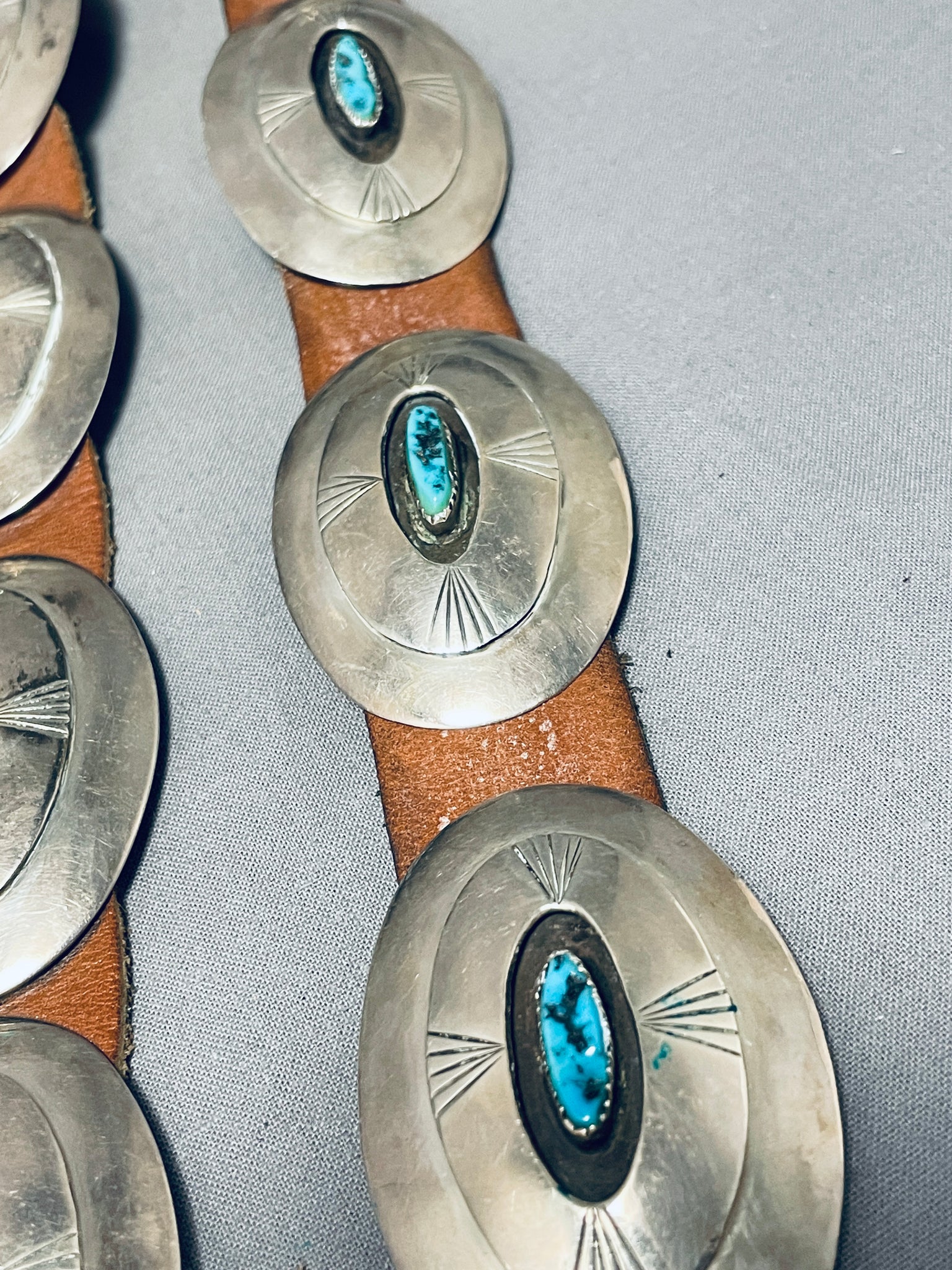 Authentic Hand Tooled Vintage Native American Navajo Turquoise Sterling Silver Concho Belt