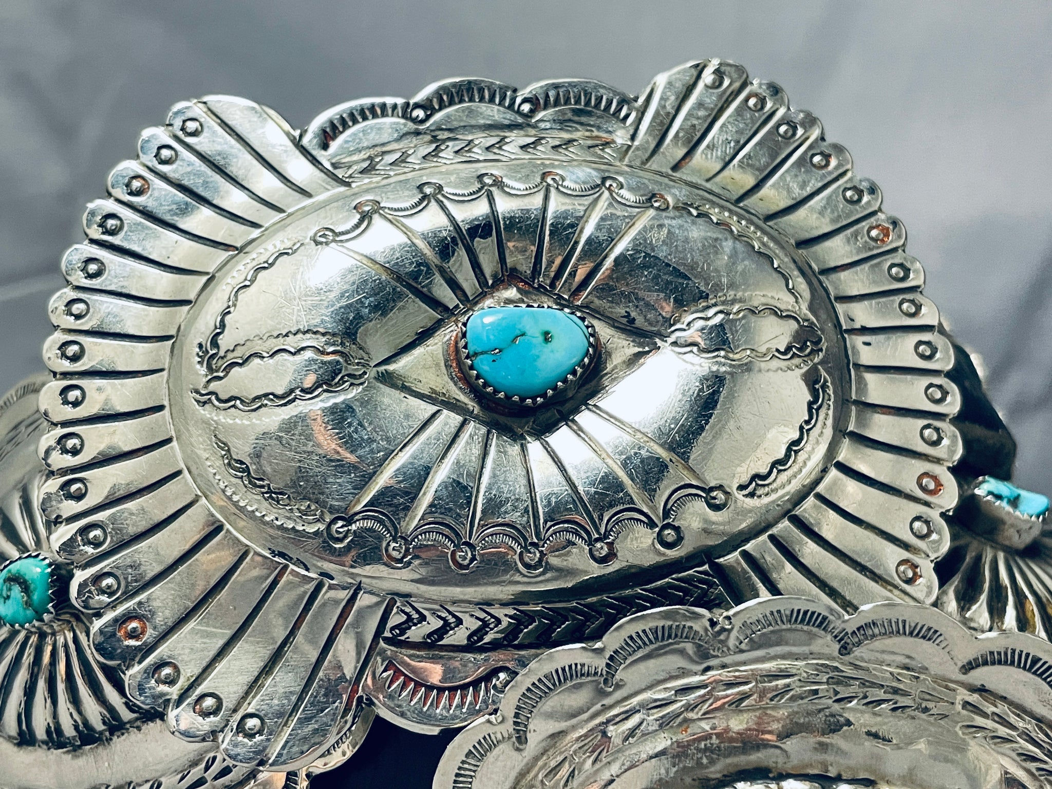 Authentic Hand Wrought Sterling Silver Vintage Native American Navajo Turquoise Concho Belt