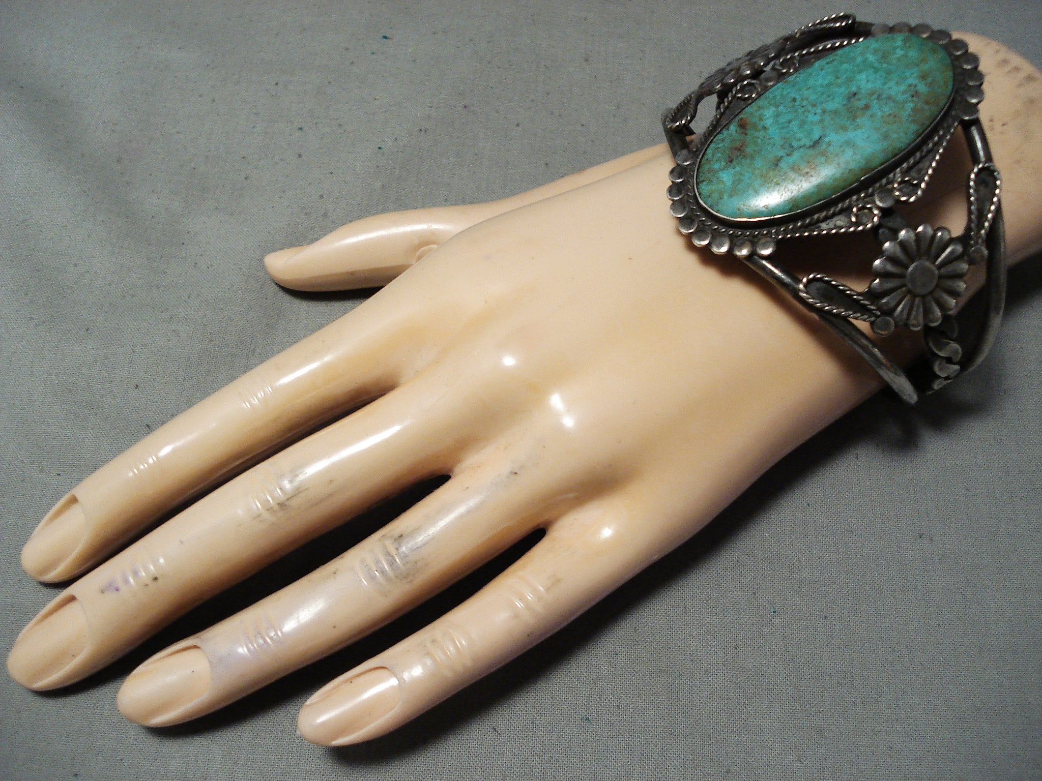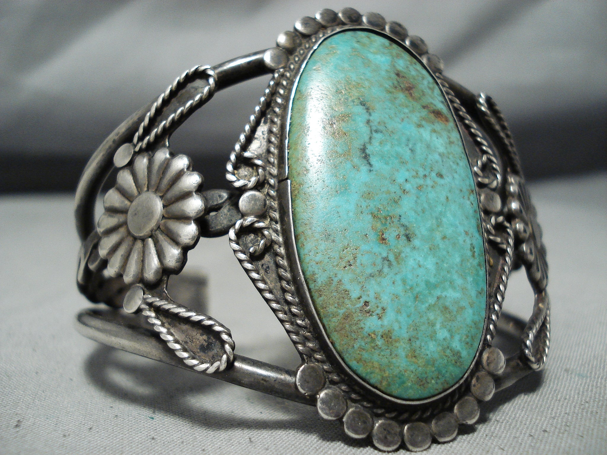 Authentic Huge Vintage Native American Navajo Royston Turquoise Sterling Silver Bracelet