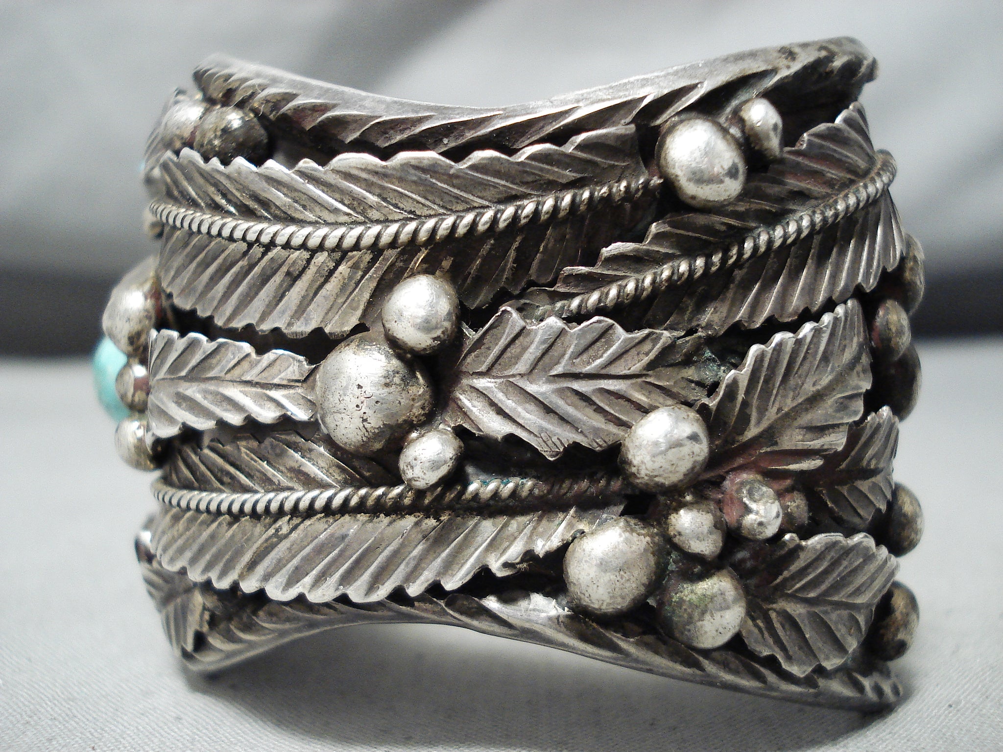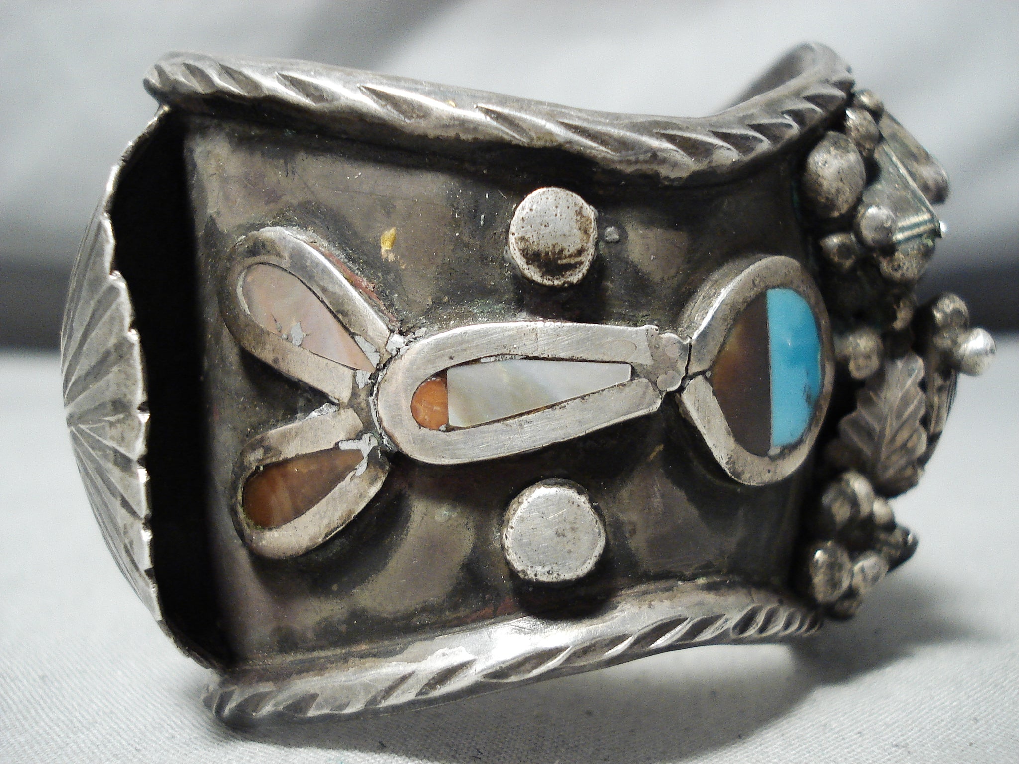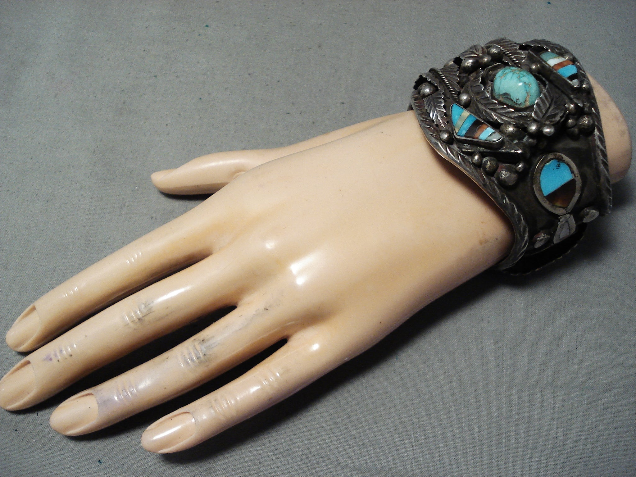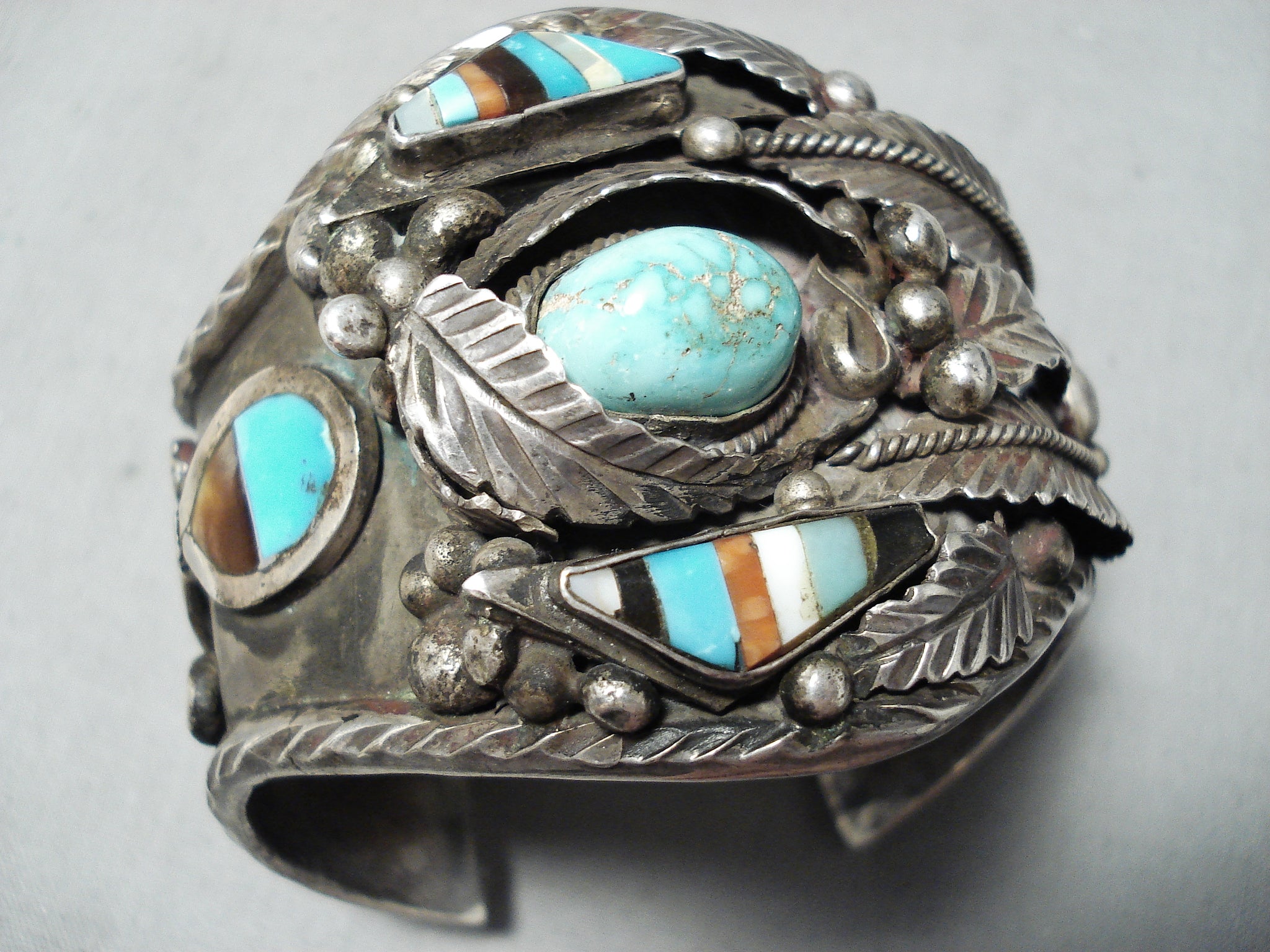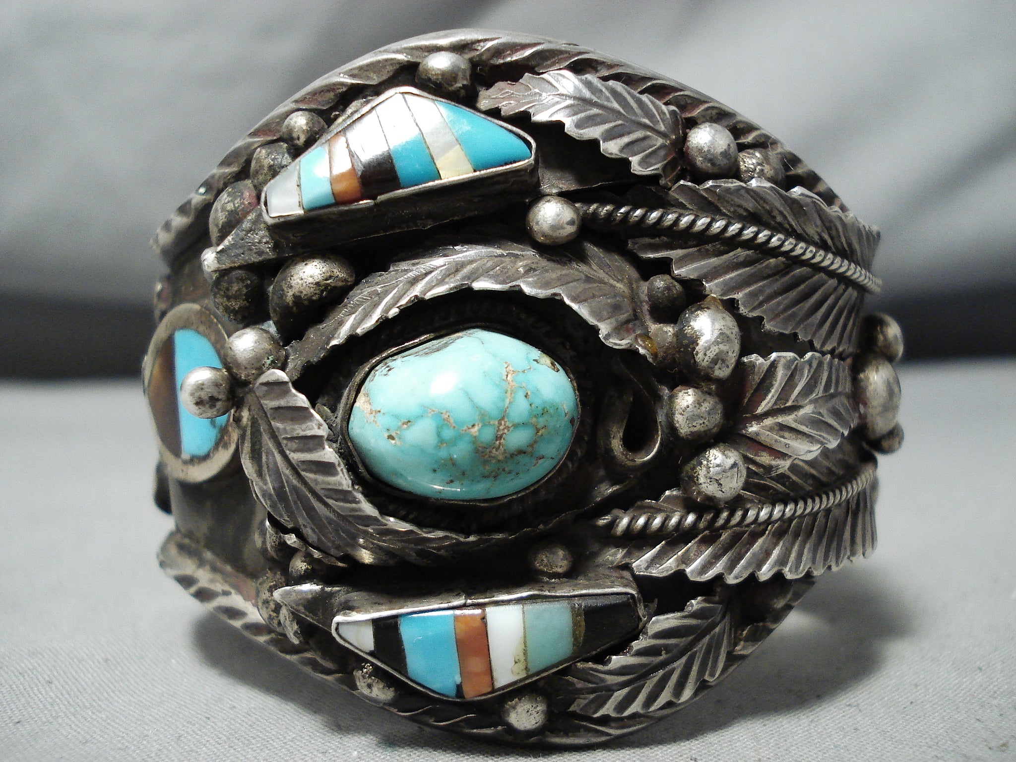 Authentic Museum Vintage Native American Navajo Turquoise Inlay Sterling Silver Bracelet