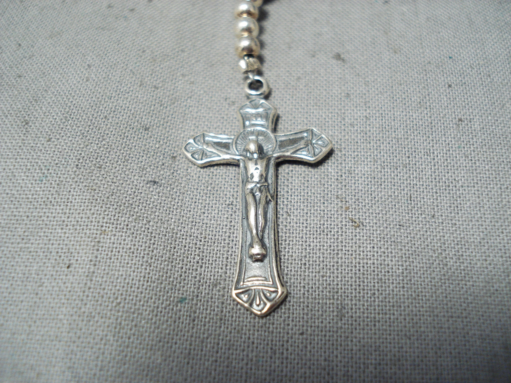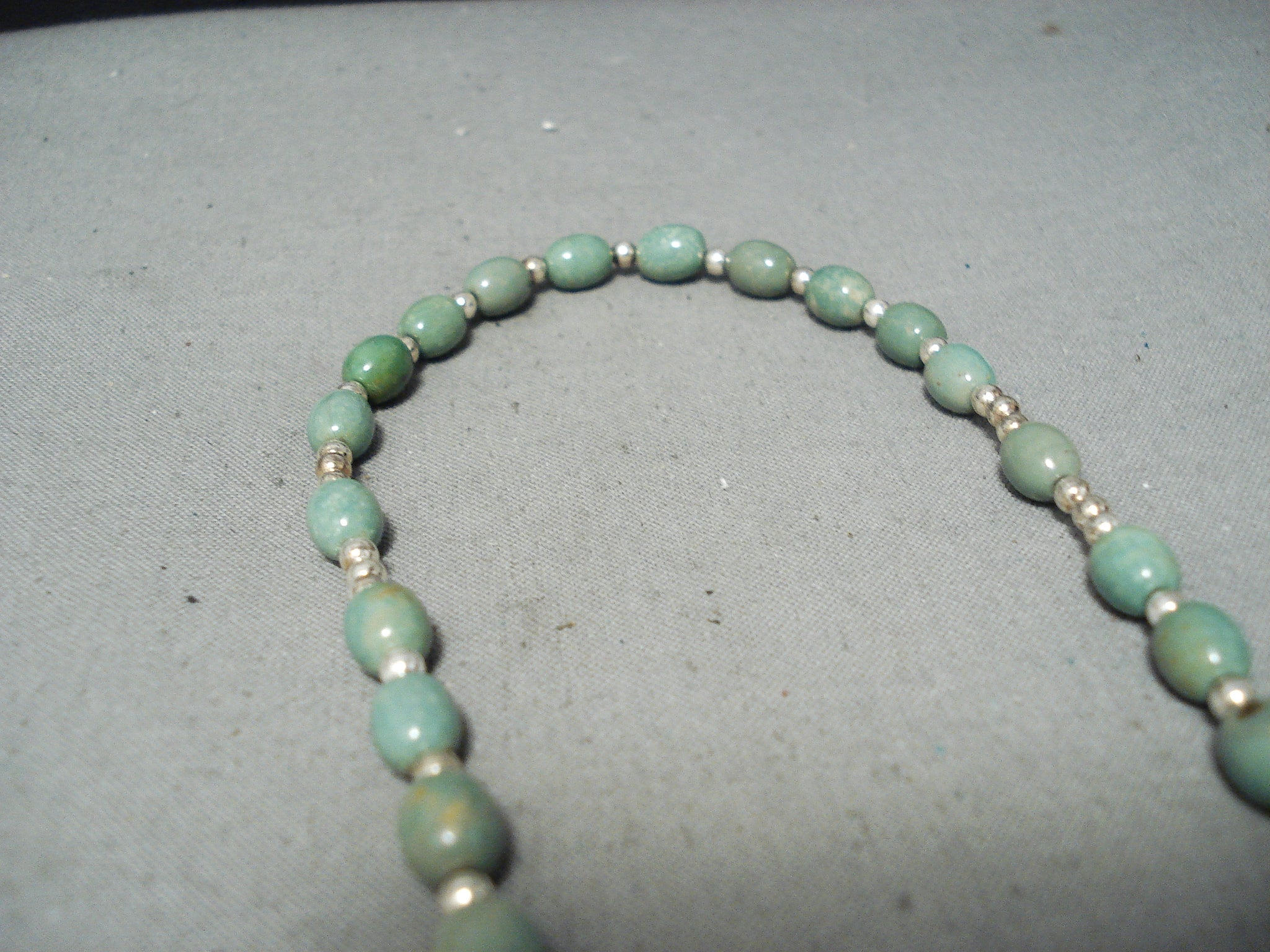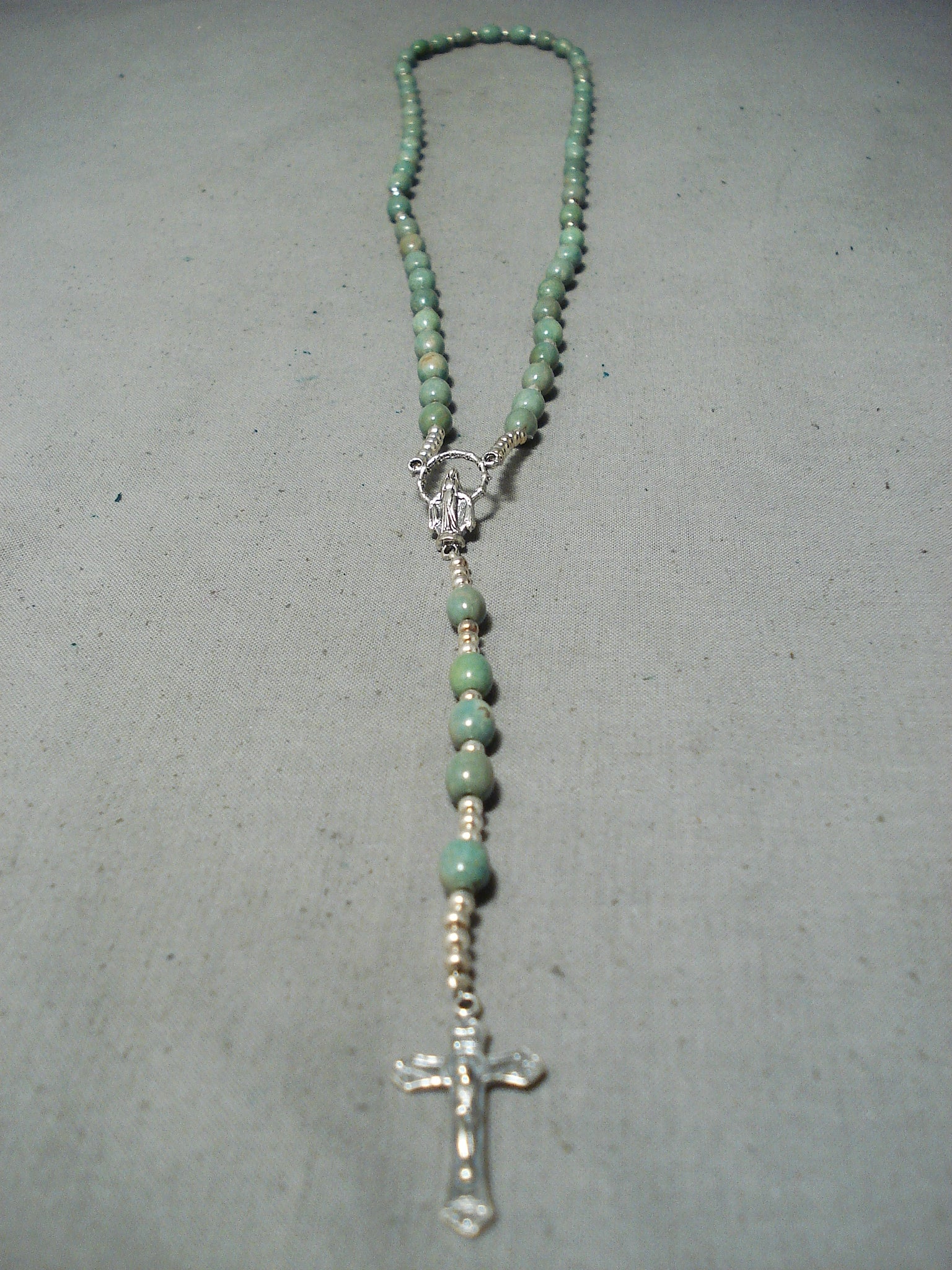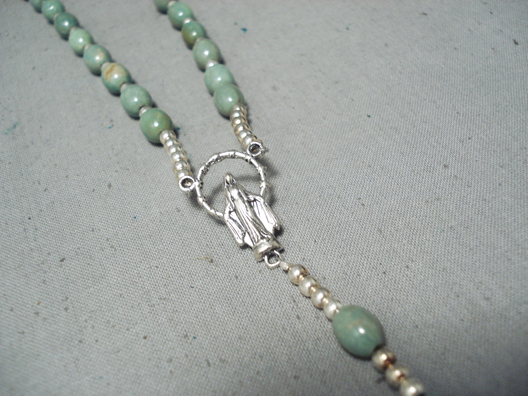 Authentic Native American Navajo Green Turquoise Sterling Silver Rosary Necklace