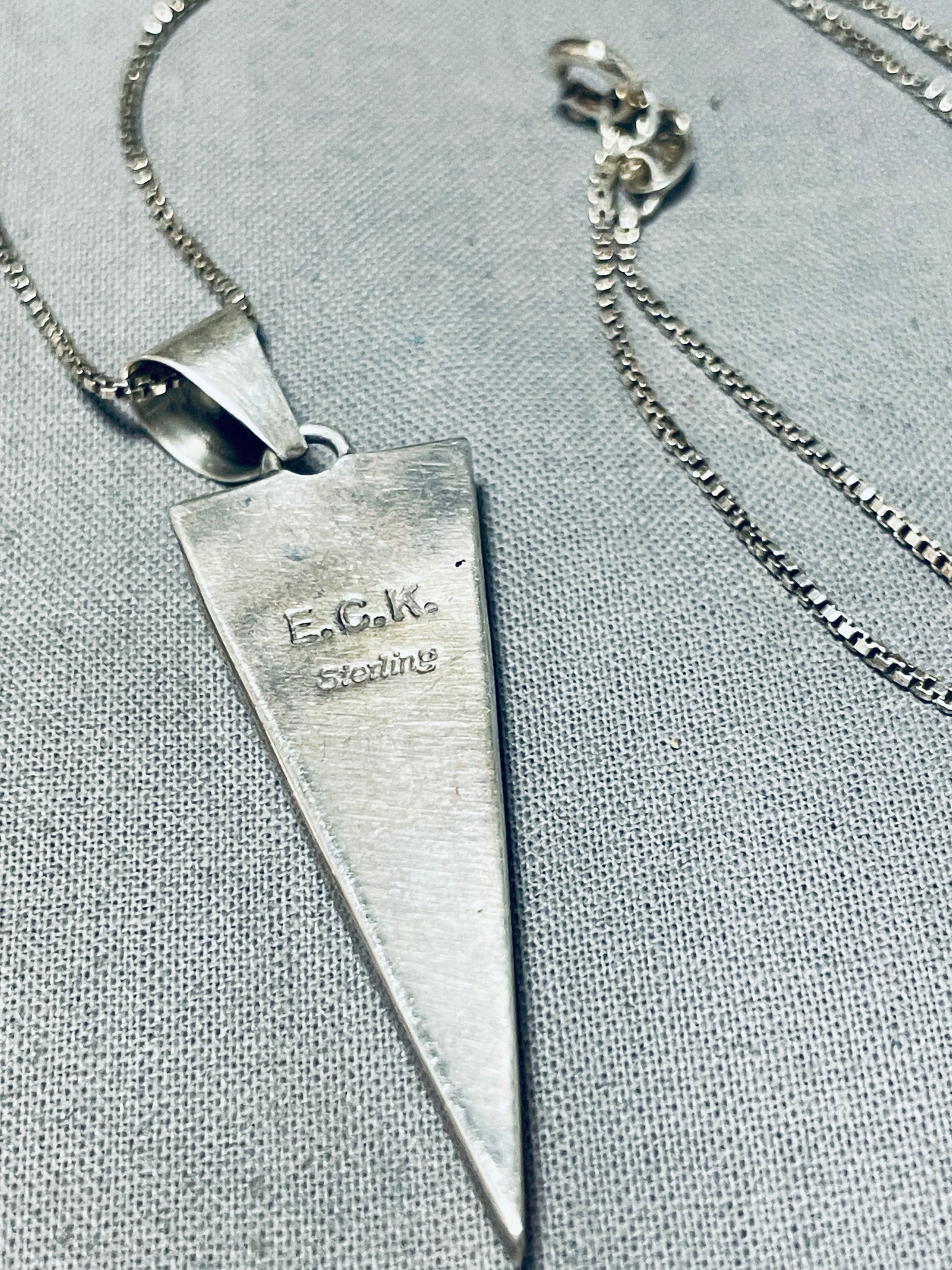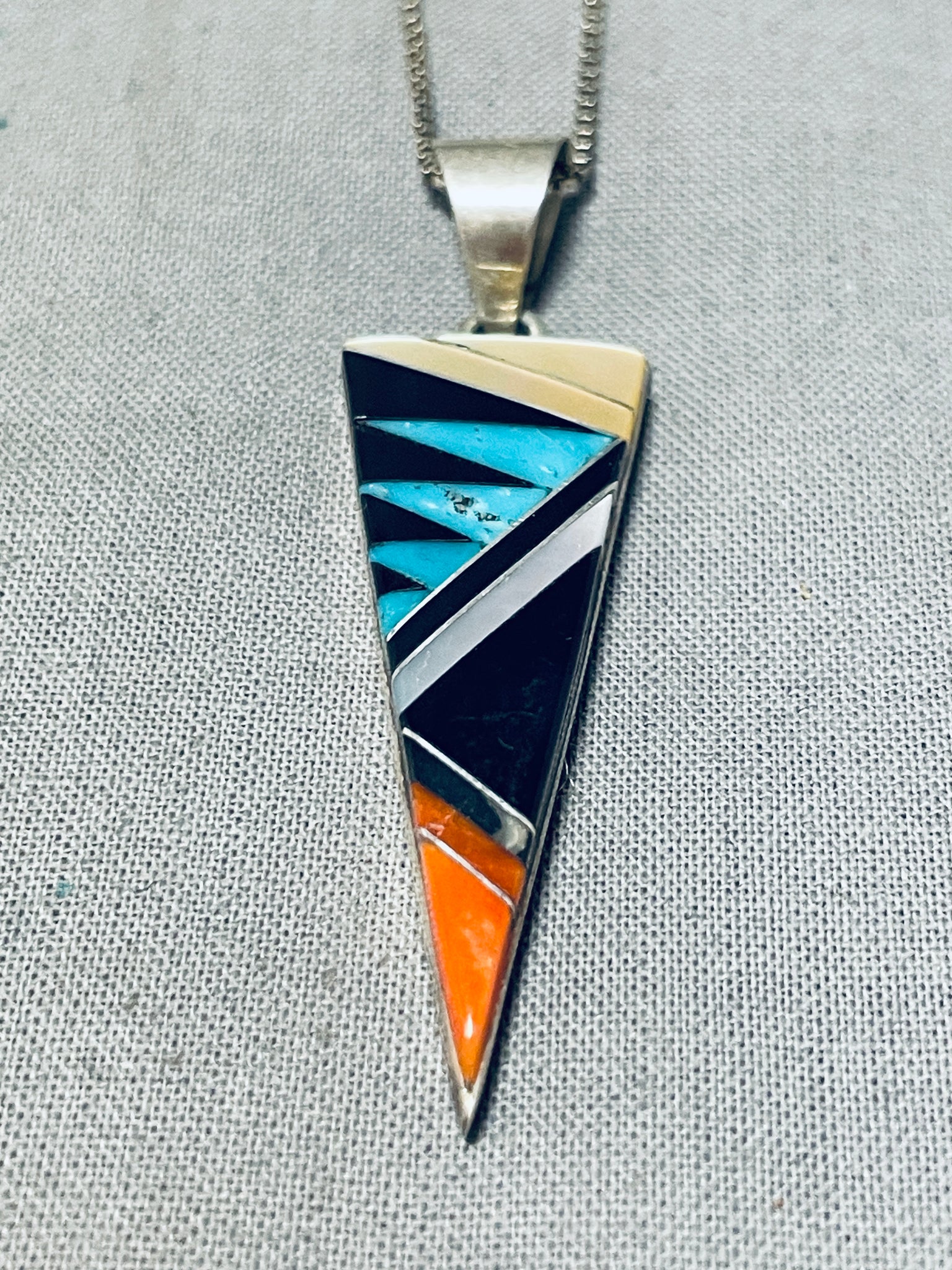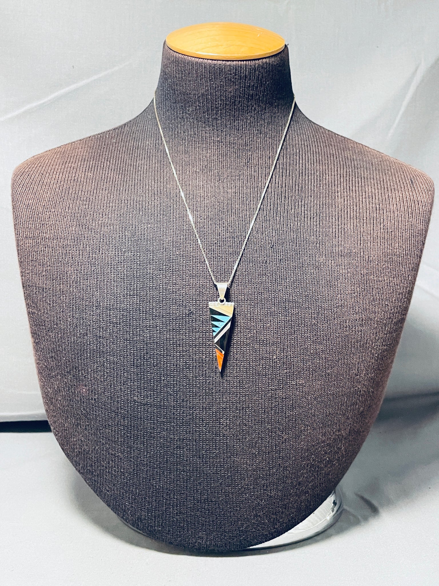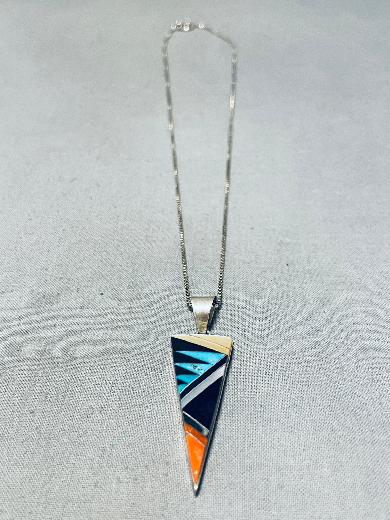 Authentic Native American Navajo Turquoise Coral Jet Sterling Silver Necklace