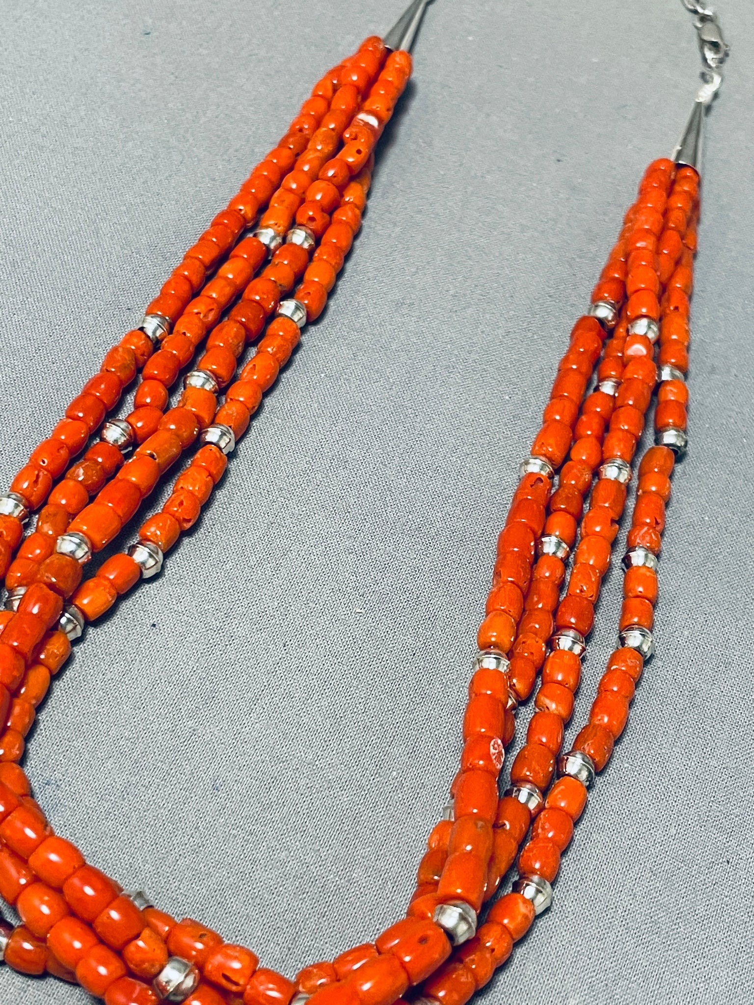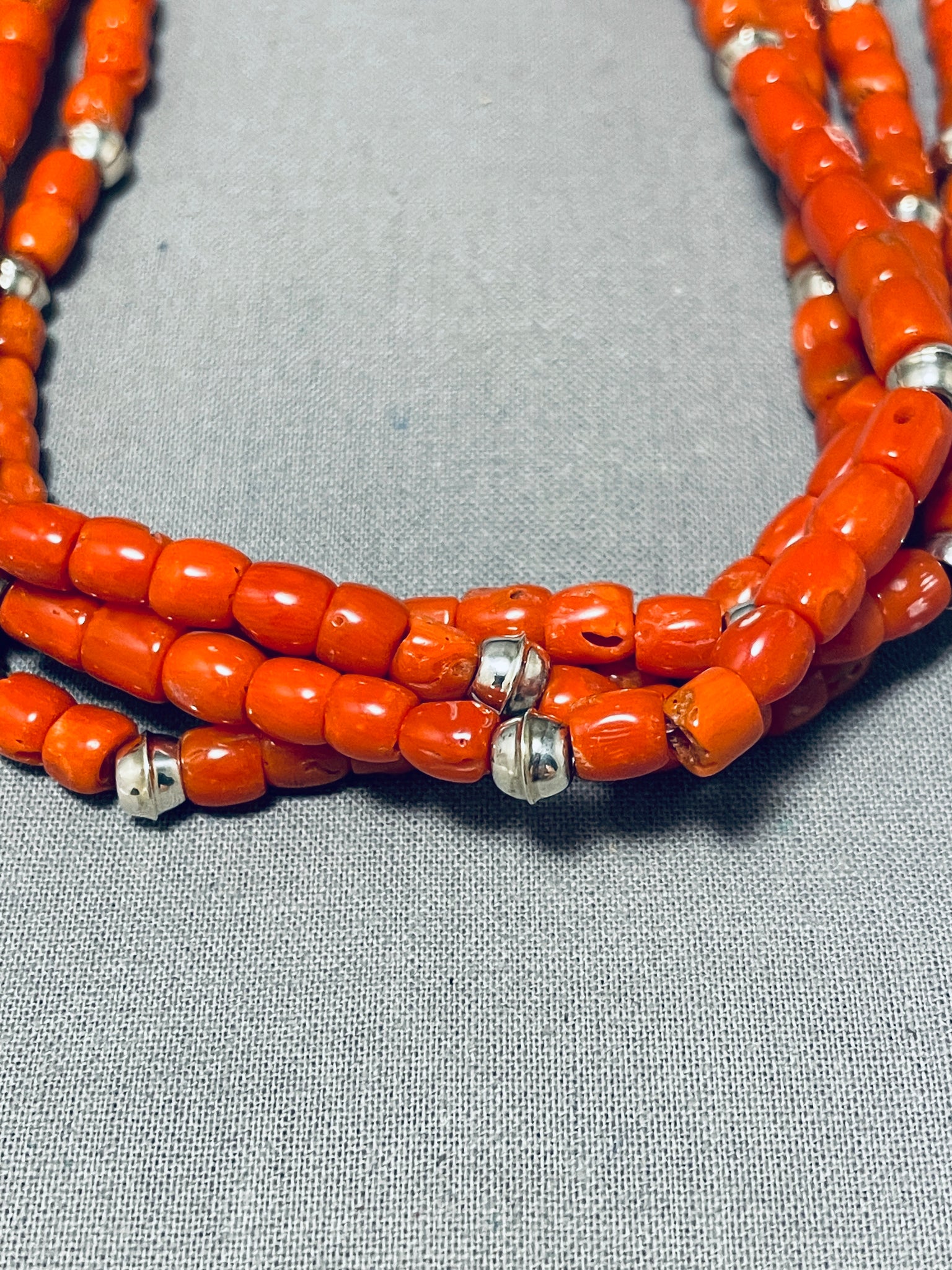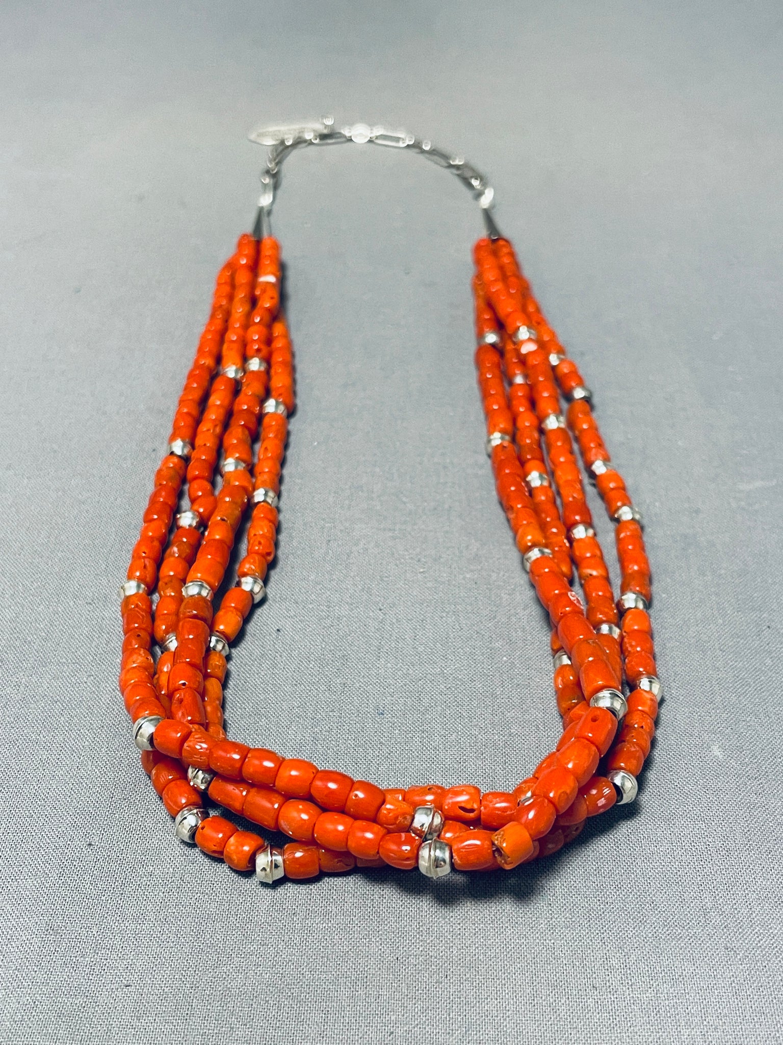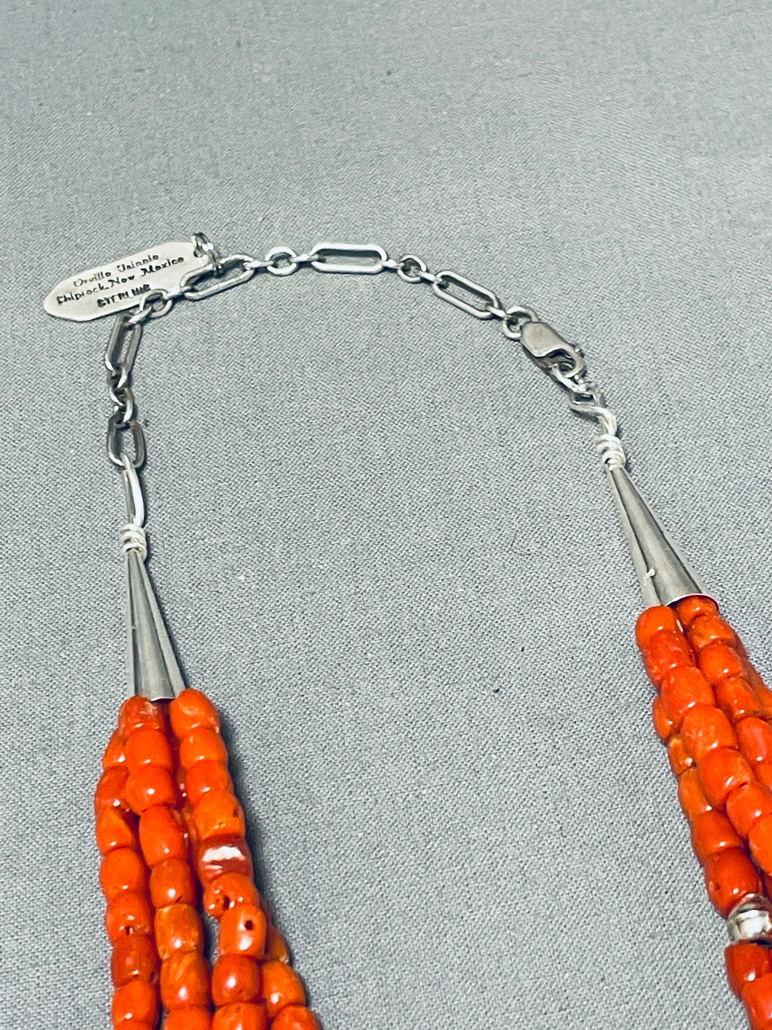 Authentic Orville Tsinnie Native American Navajo Coral Sterling Silver Necklace
