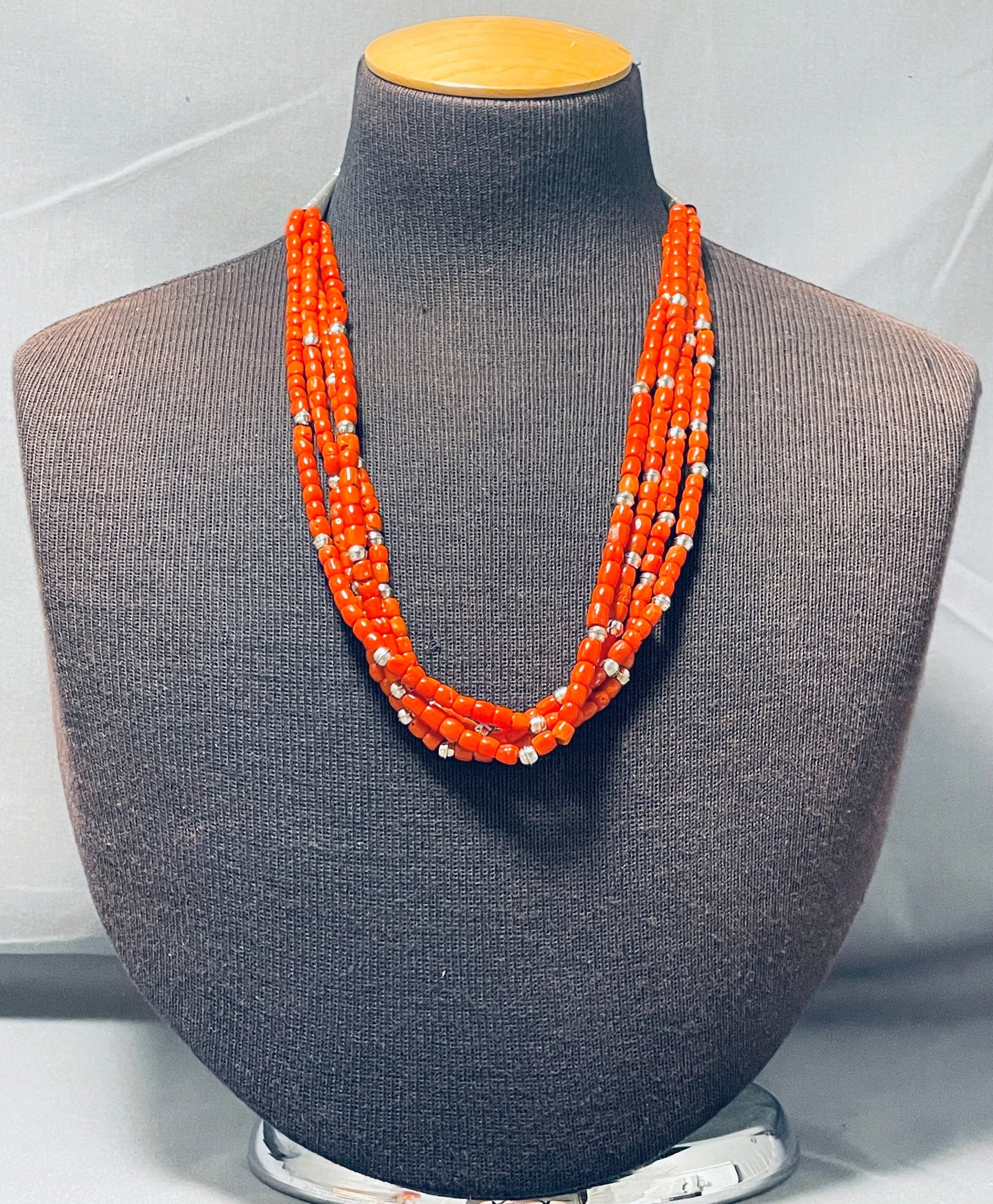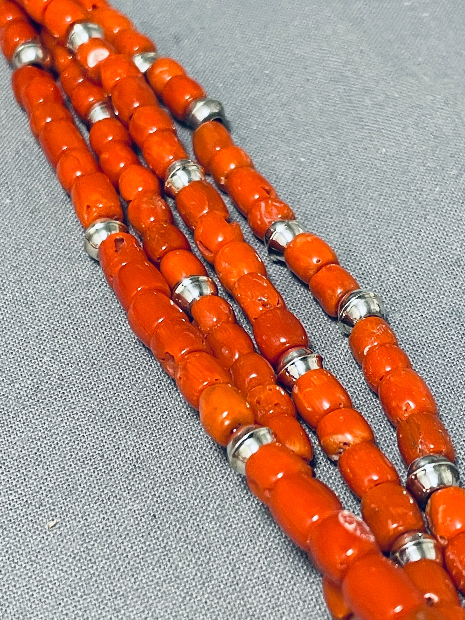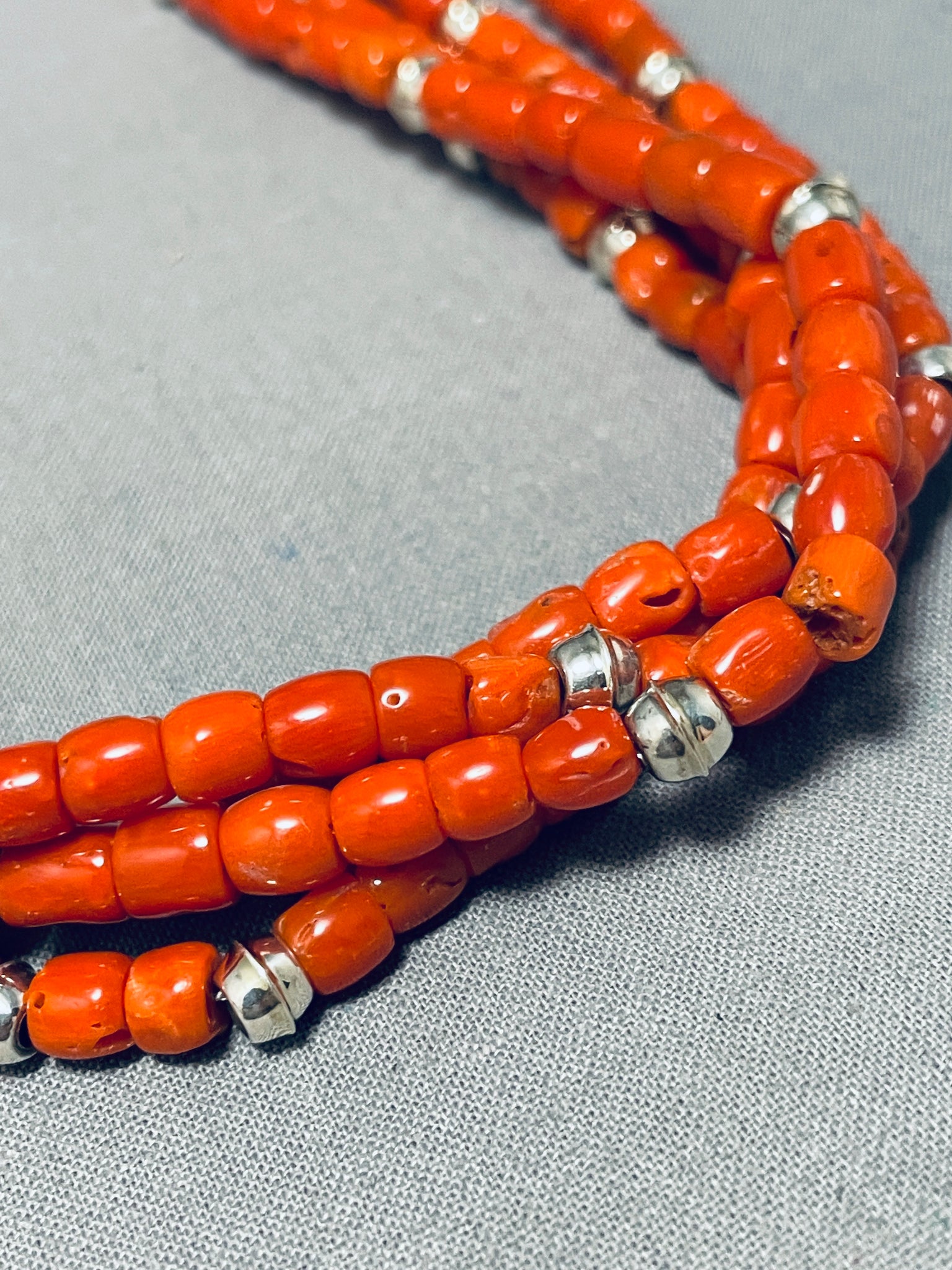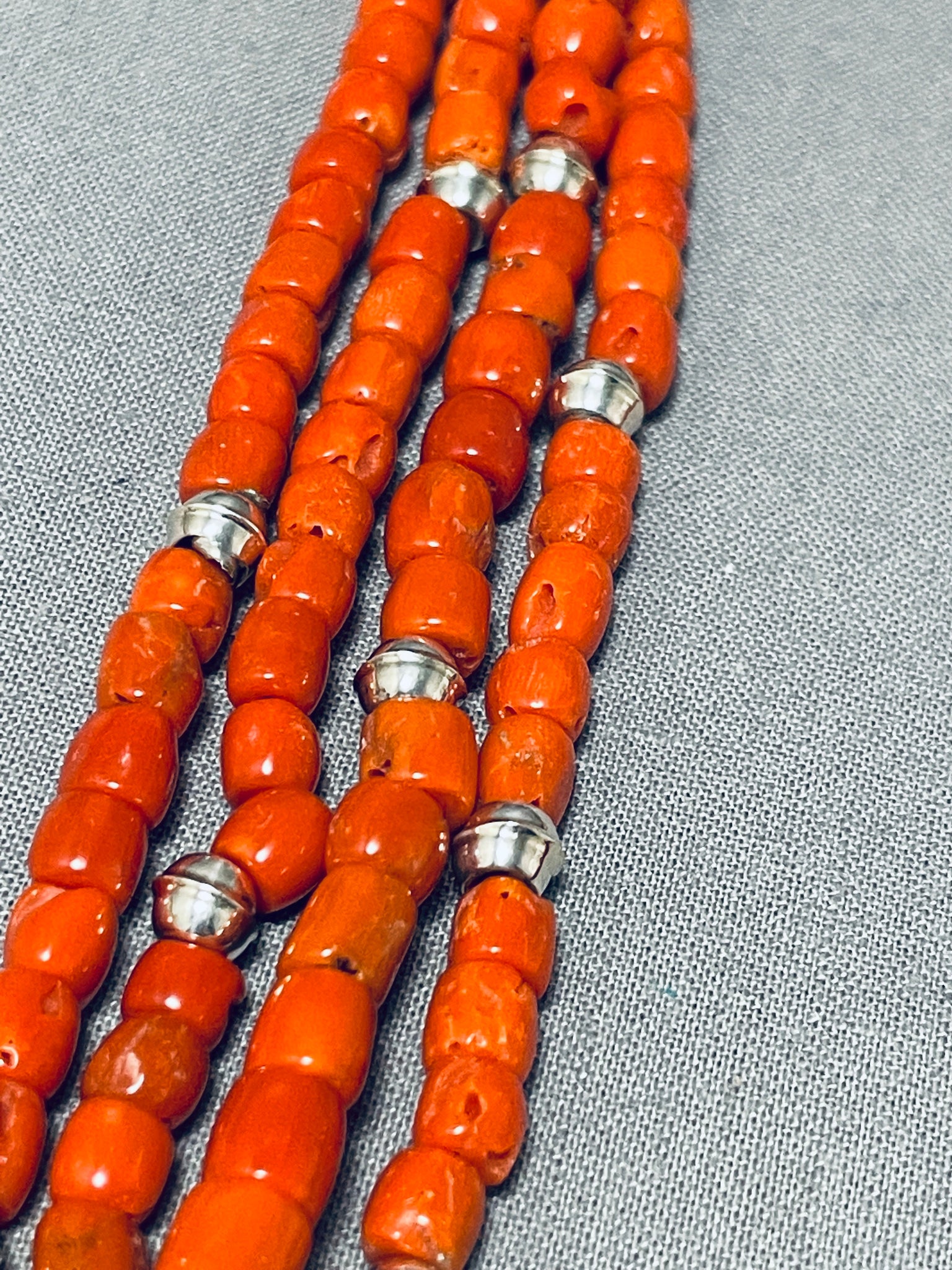 Authentic Orville Tsinnie Native American Navajo Coral Sterling Silver Necklace