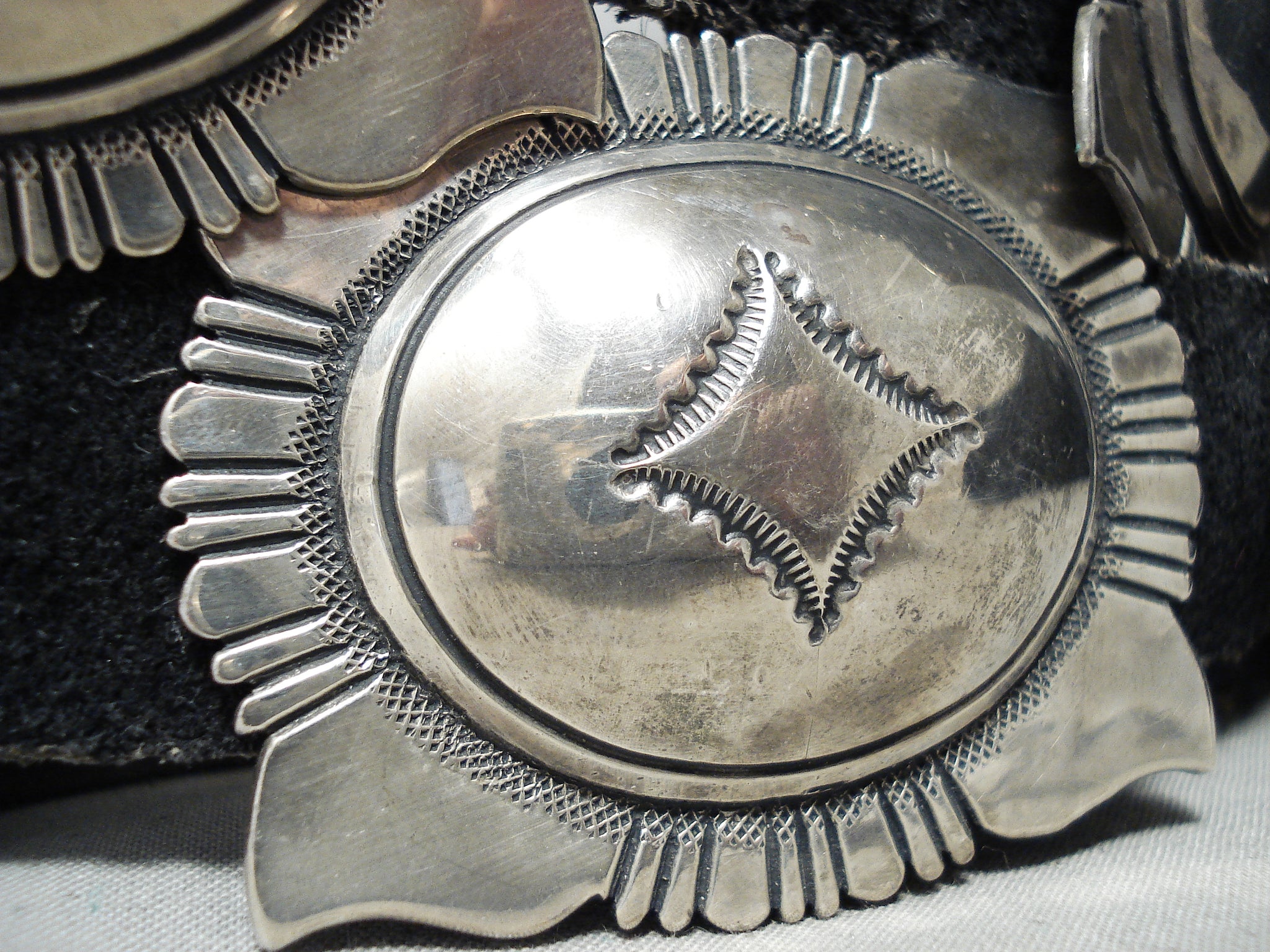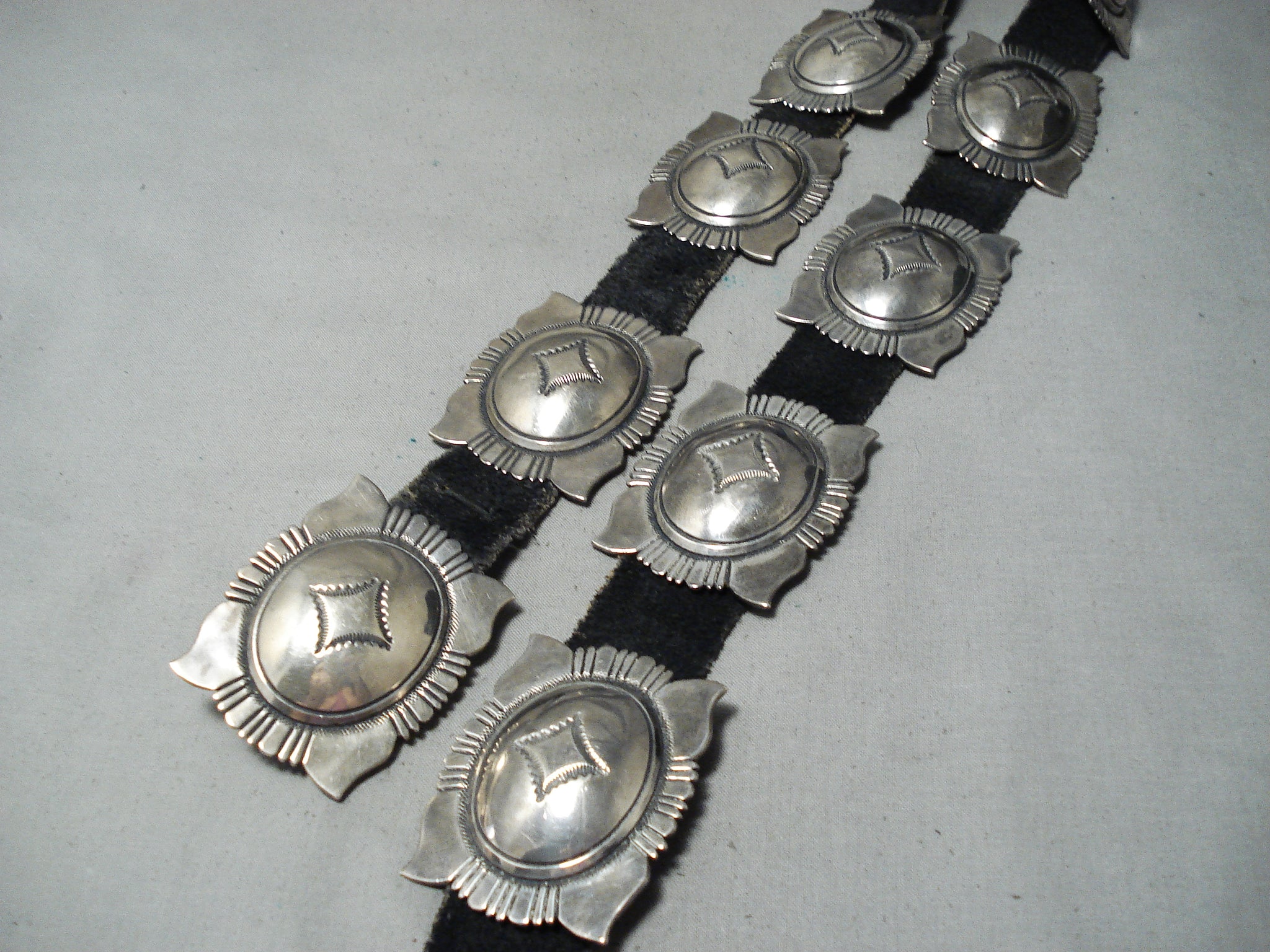 Authentic Rare Vintage Native American Navajo Thomas Singer Sterling Silver Concho Belt