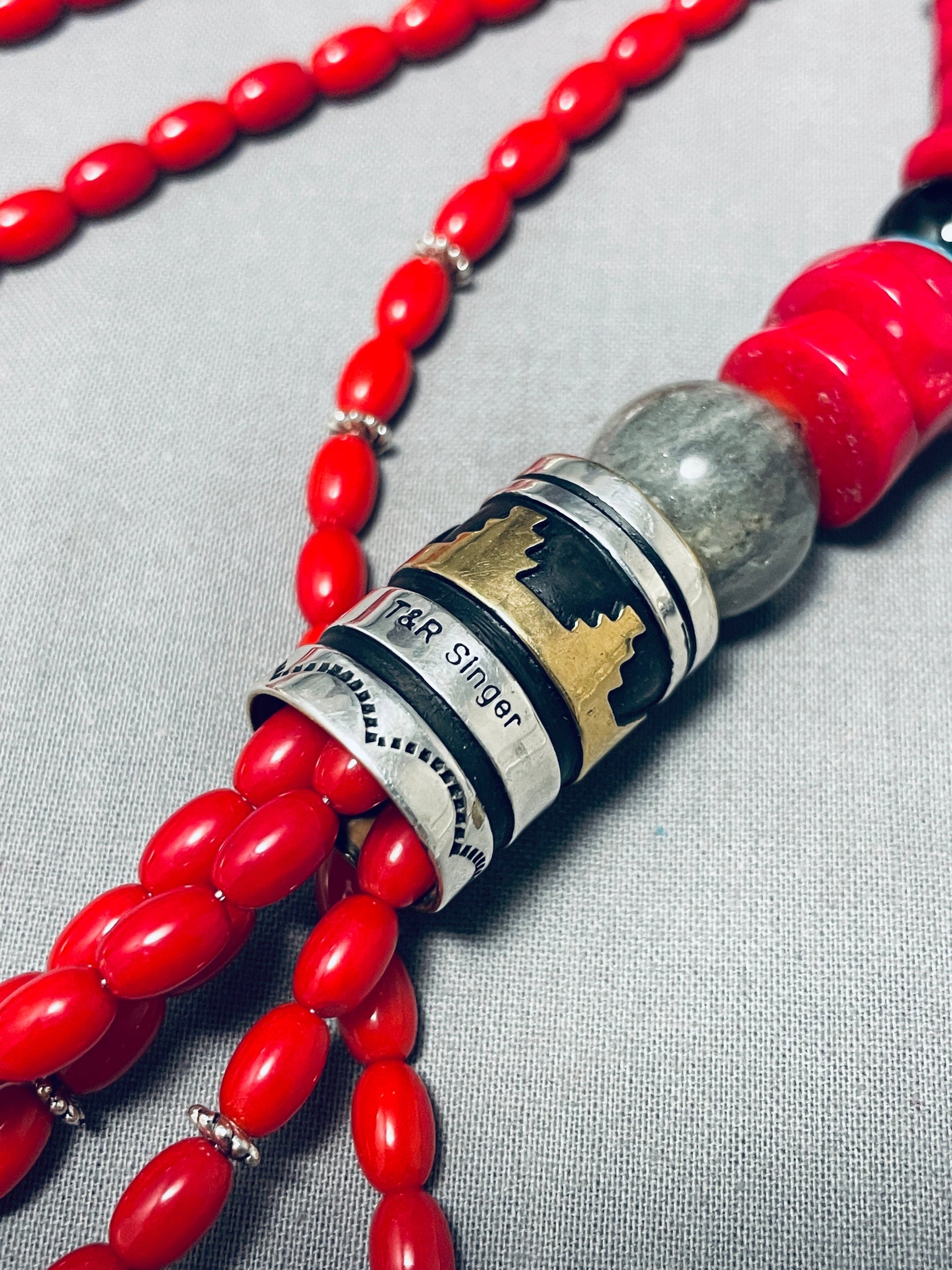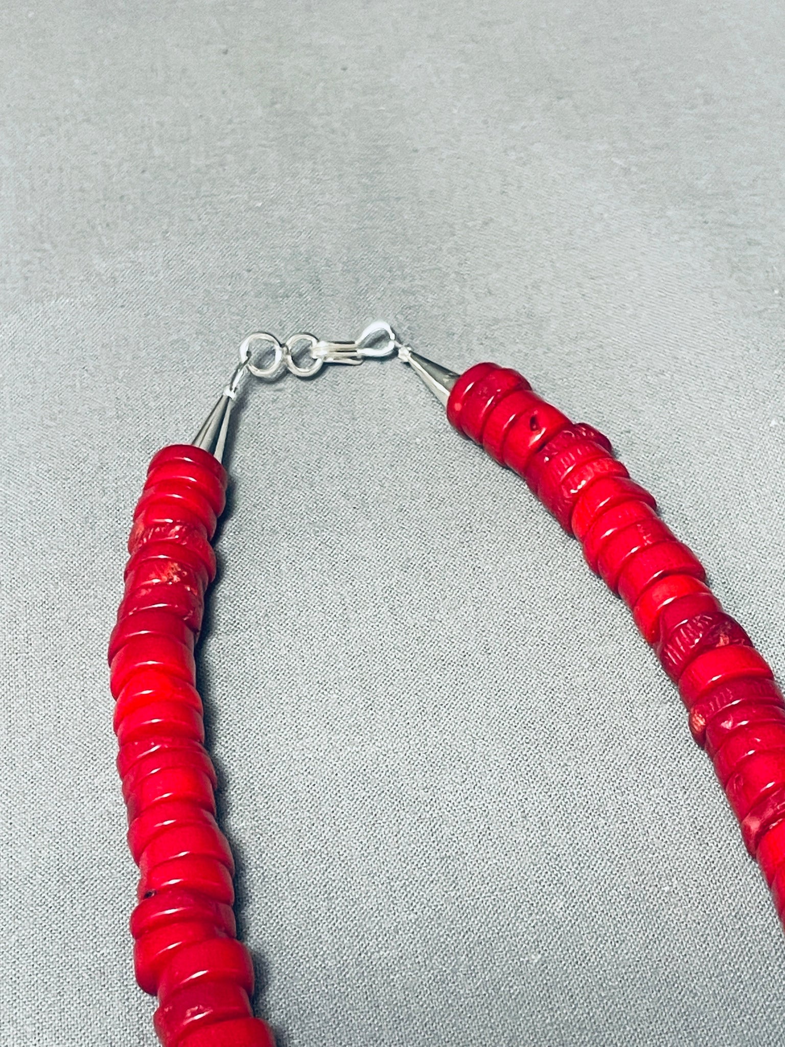 Authentic Singer Coral Native American Navajo Sterling Silver Turquoise Necklace