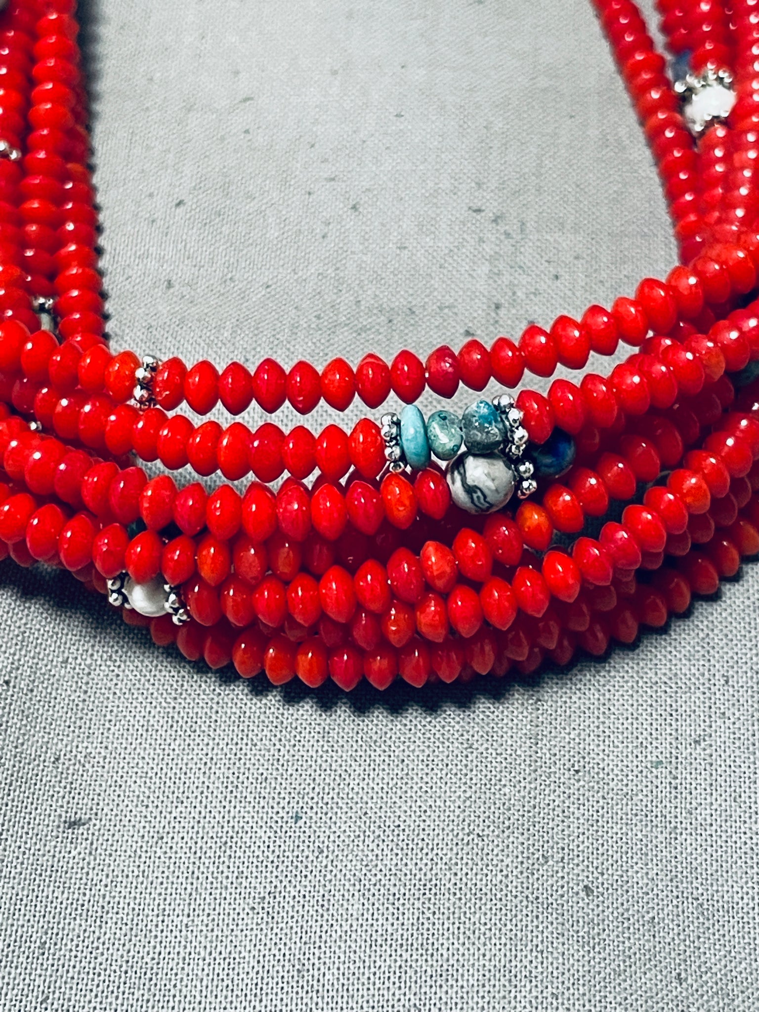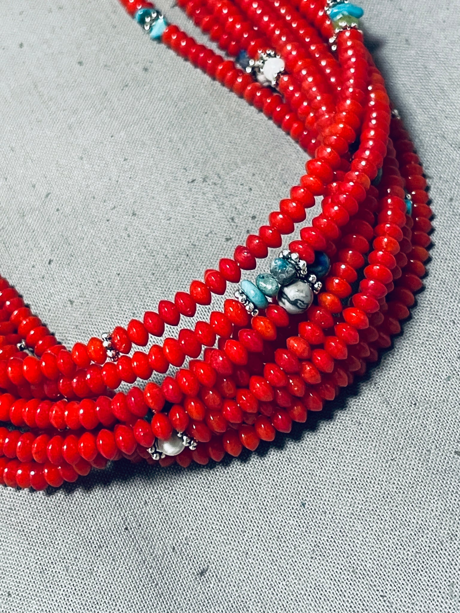 Authentic Singer Coral Native American Navajo Turquoise Sterling Silver Necklace