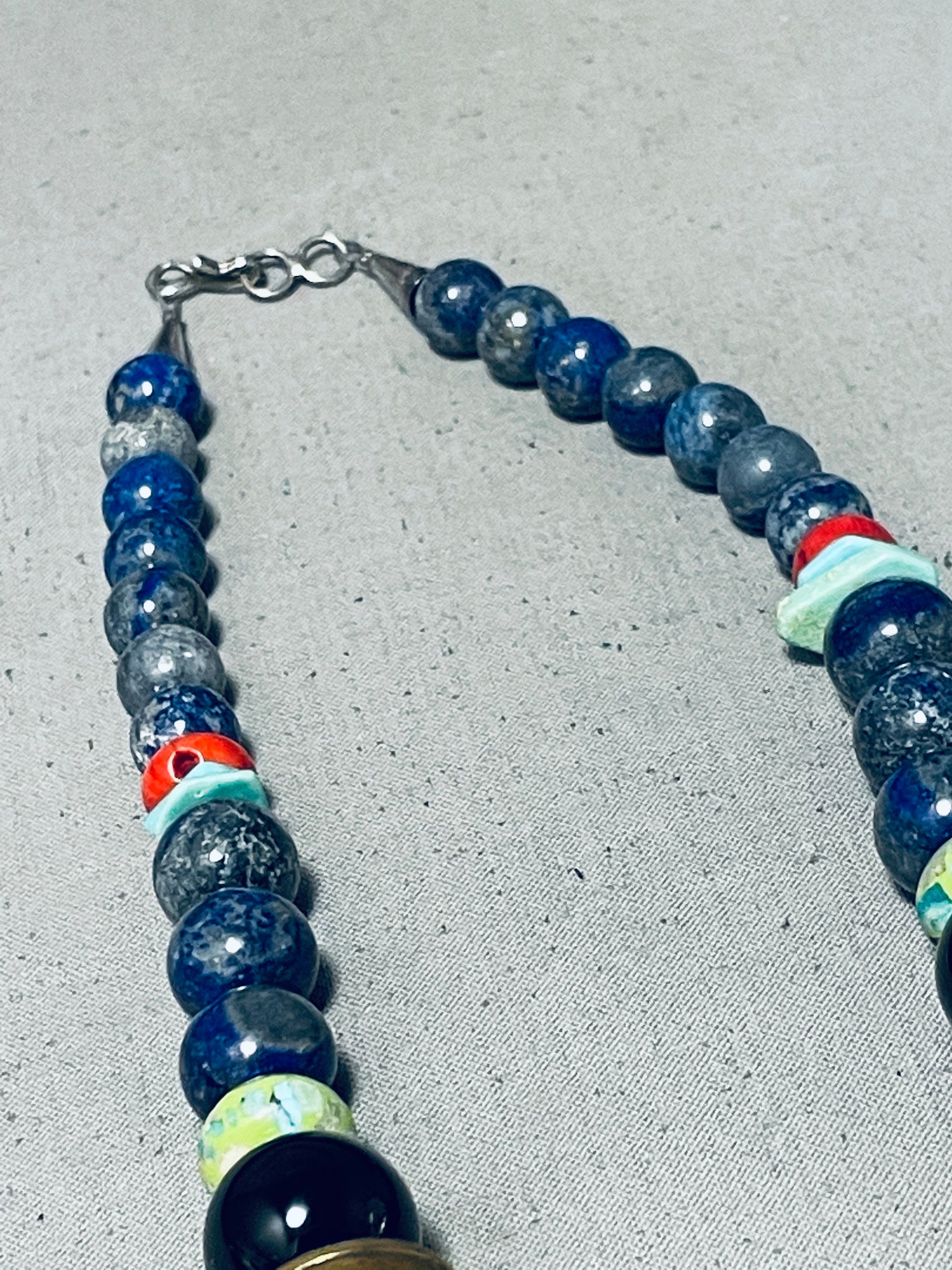 Authentic Singer Lapis Vintage Native American Navajo Sterling Silver Turquoise Necklace