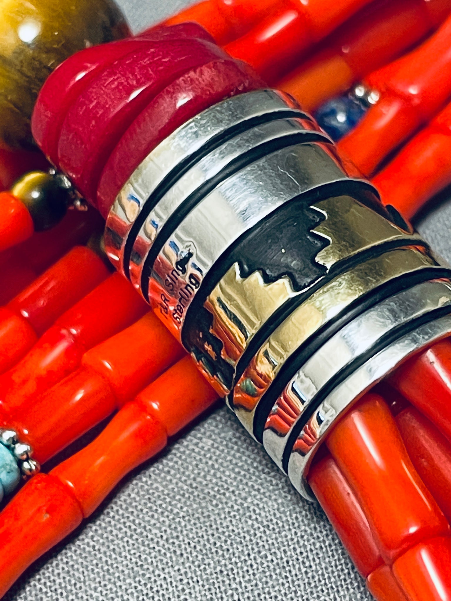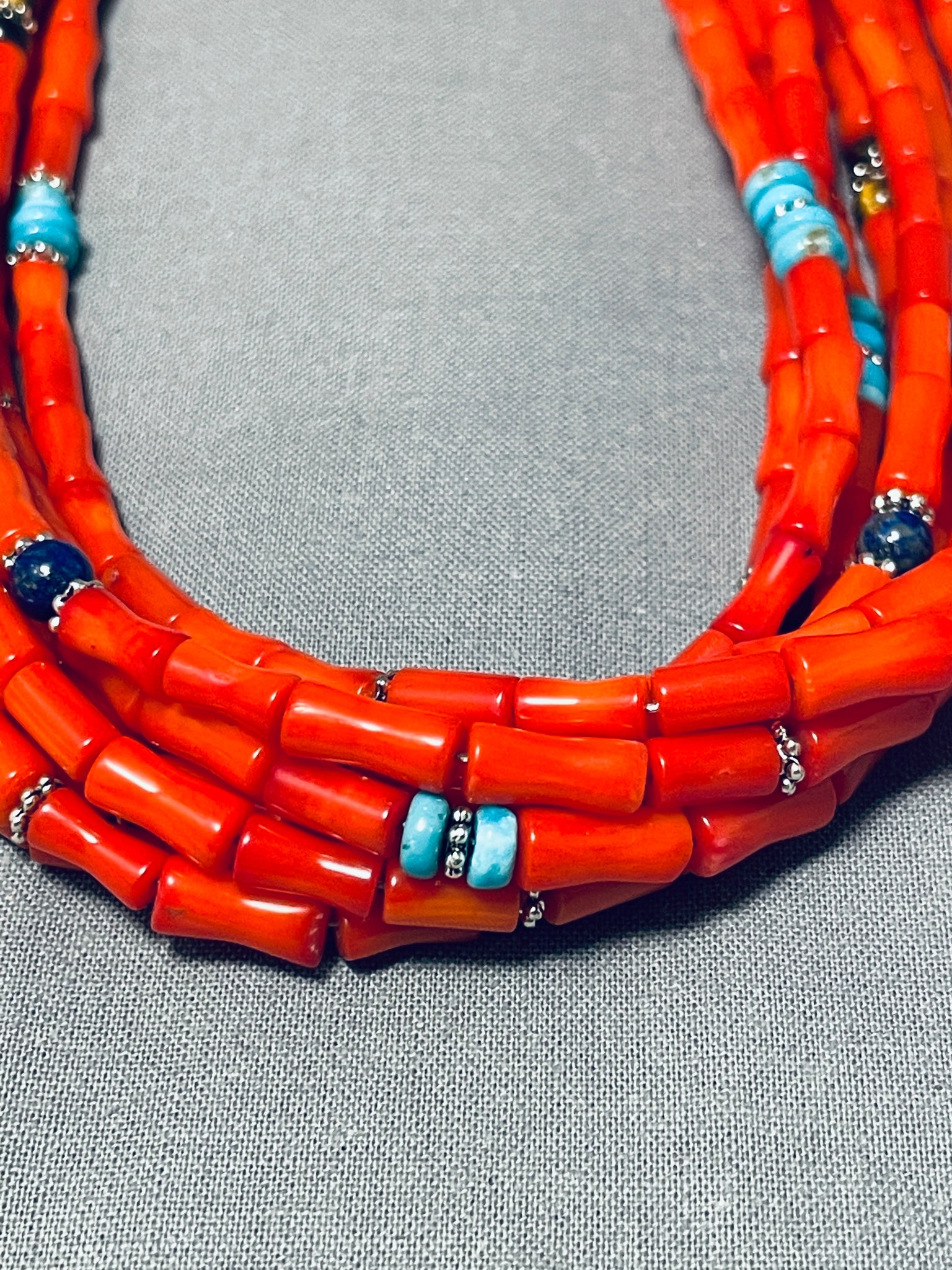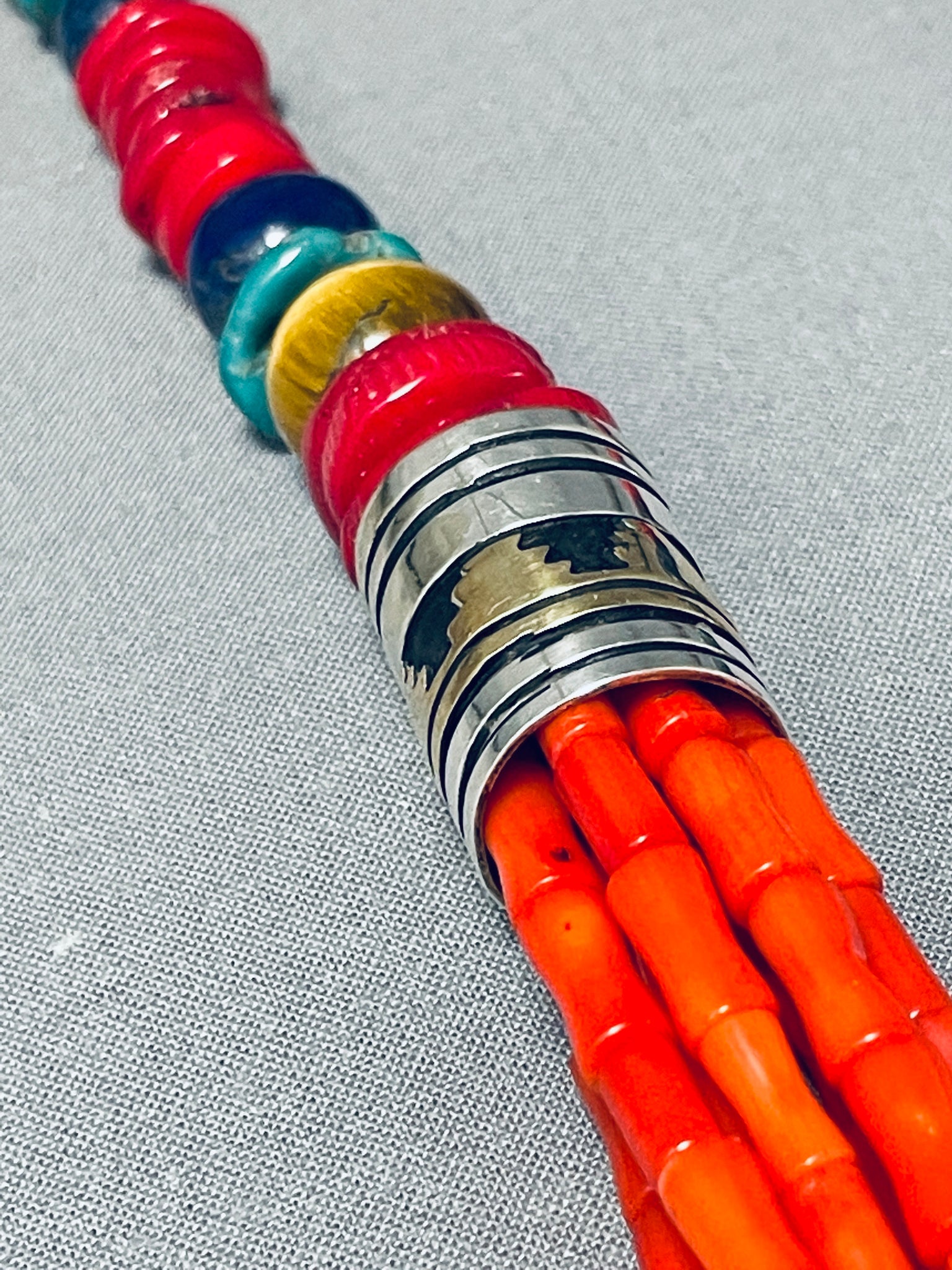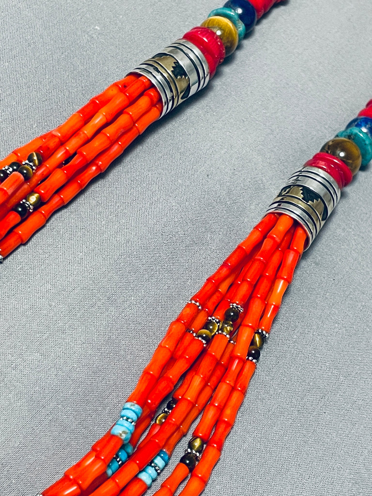 Authentic Singer Native American Navajo Coral Turquoise Sterling Silver Necklace