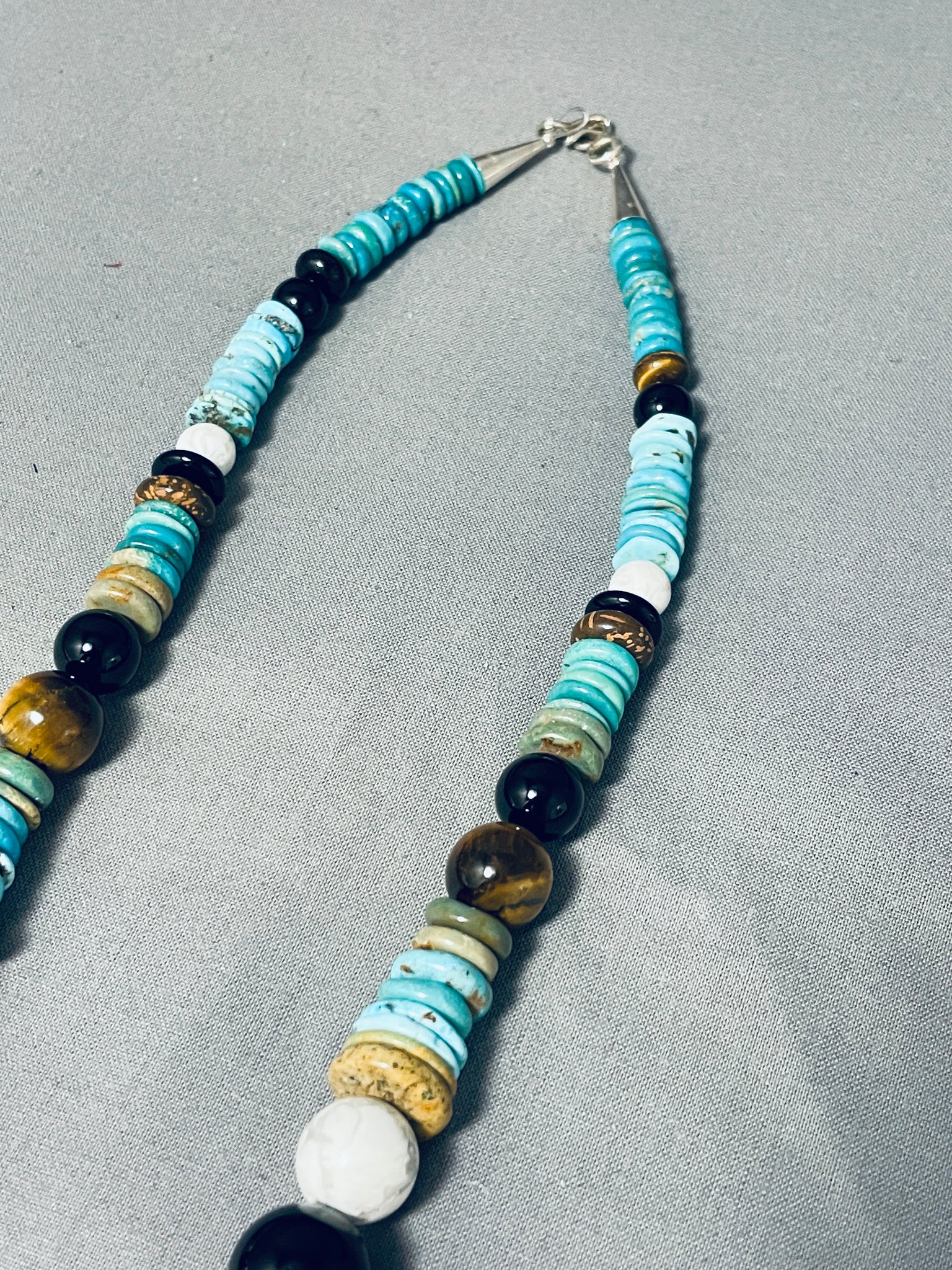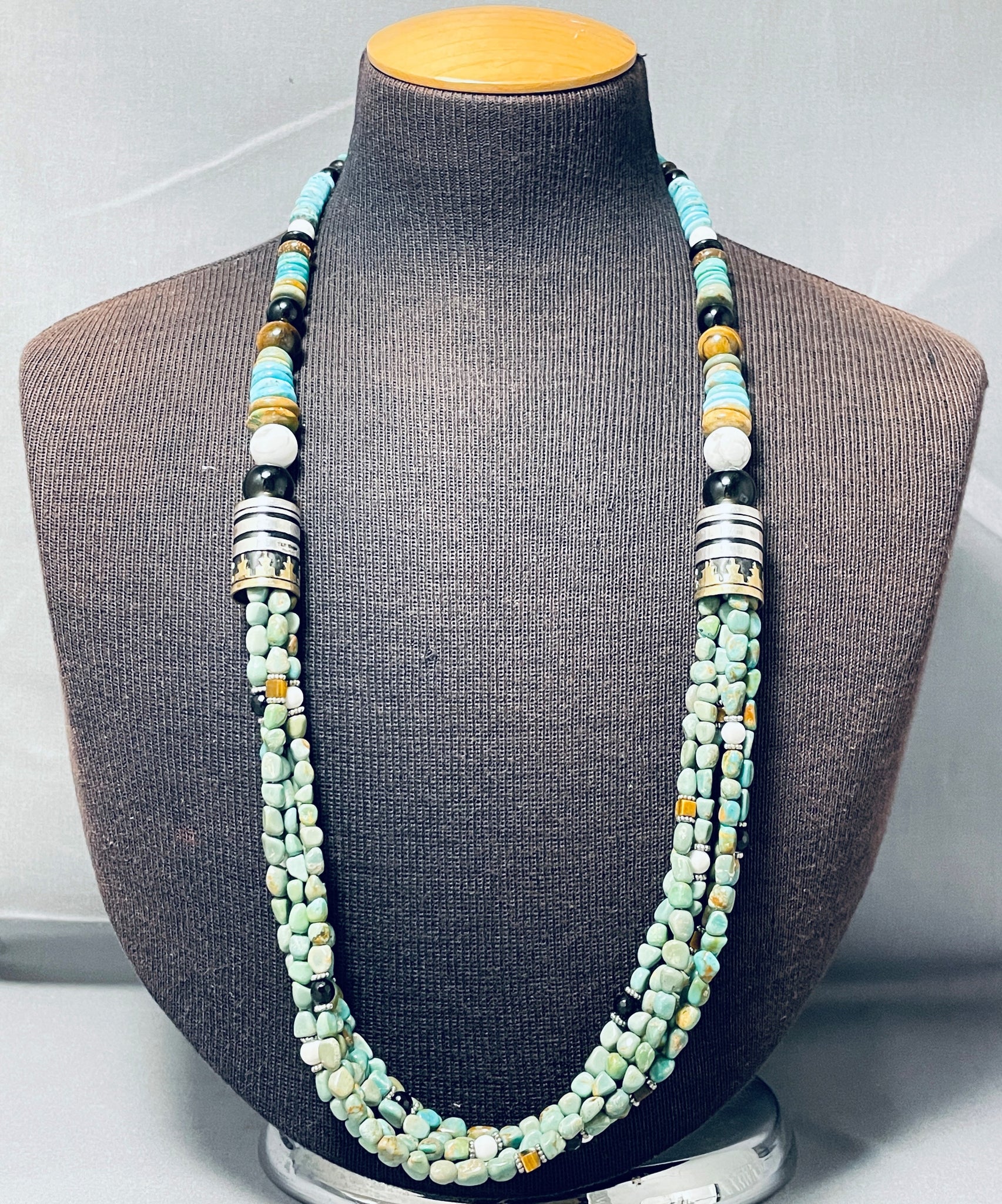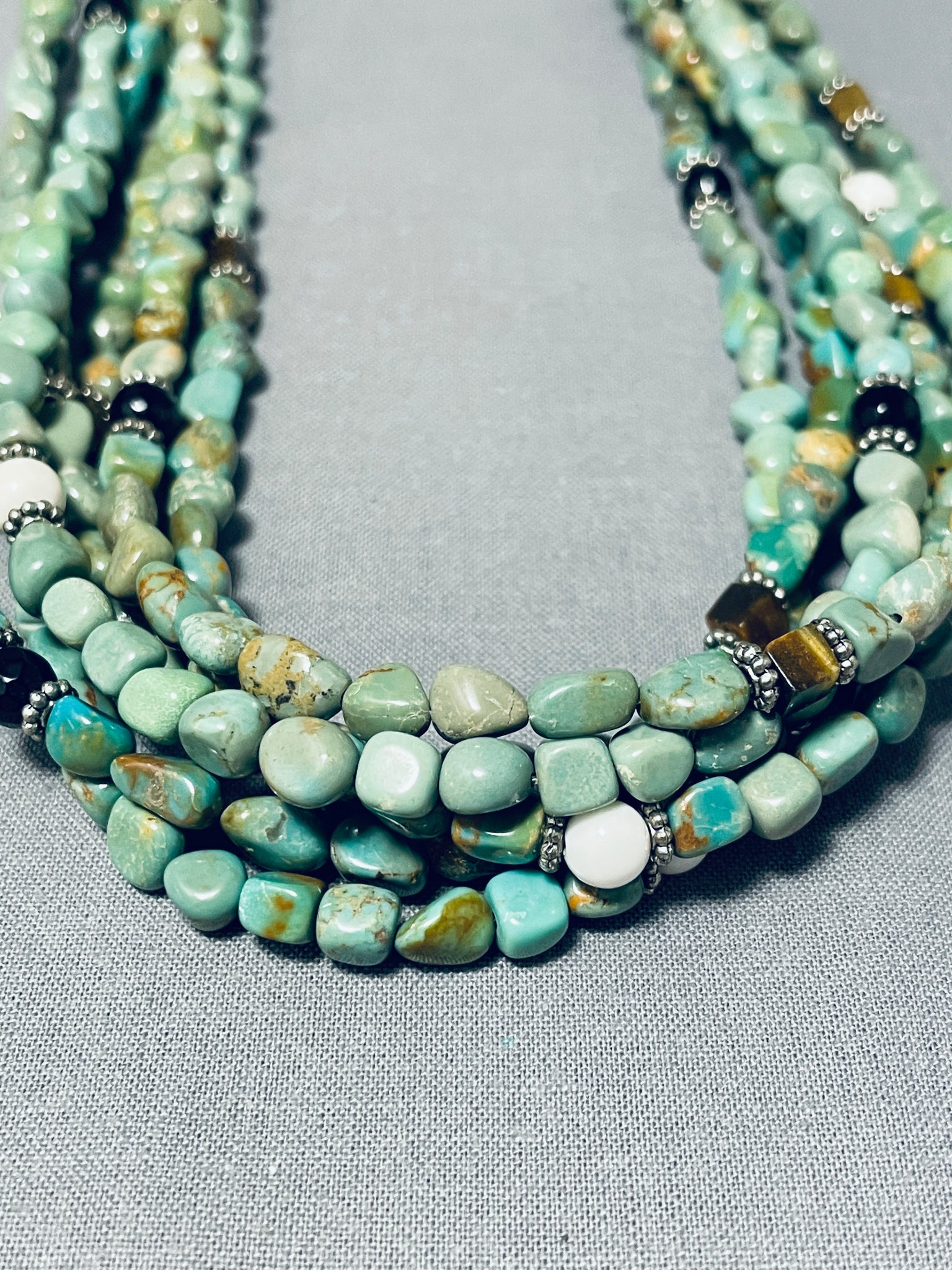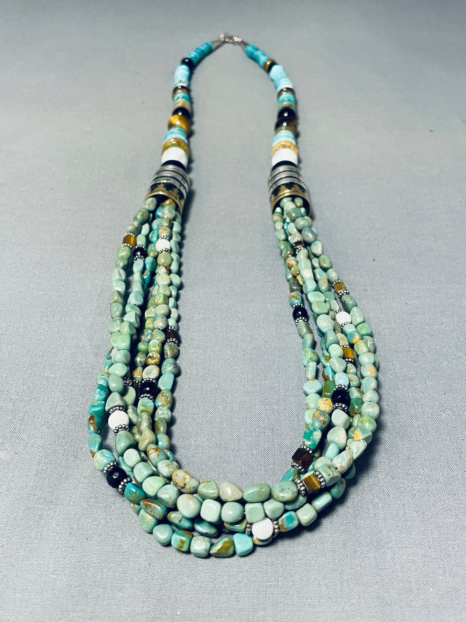 Authentic Singer Native American Navajo Green Turquoise Sterling Silver Necklace