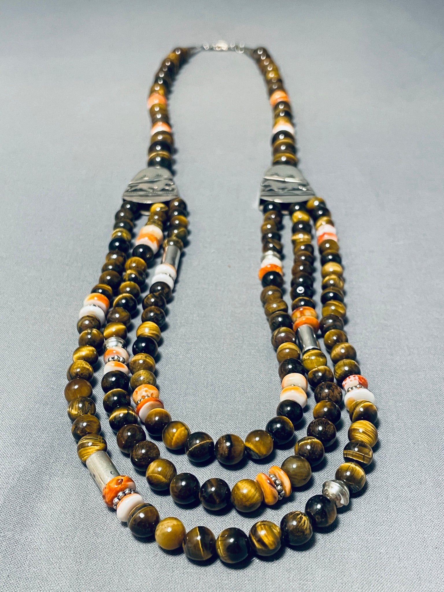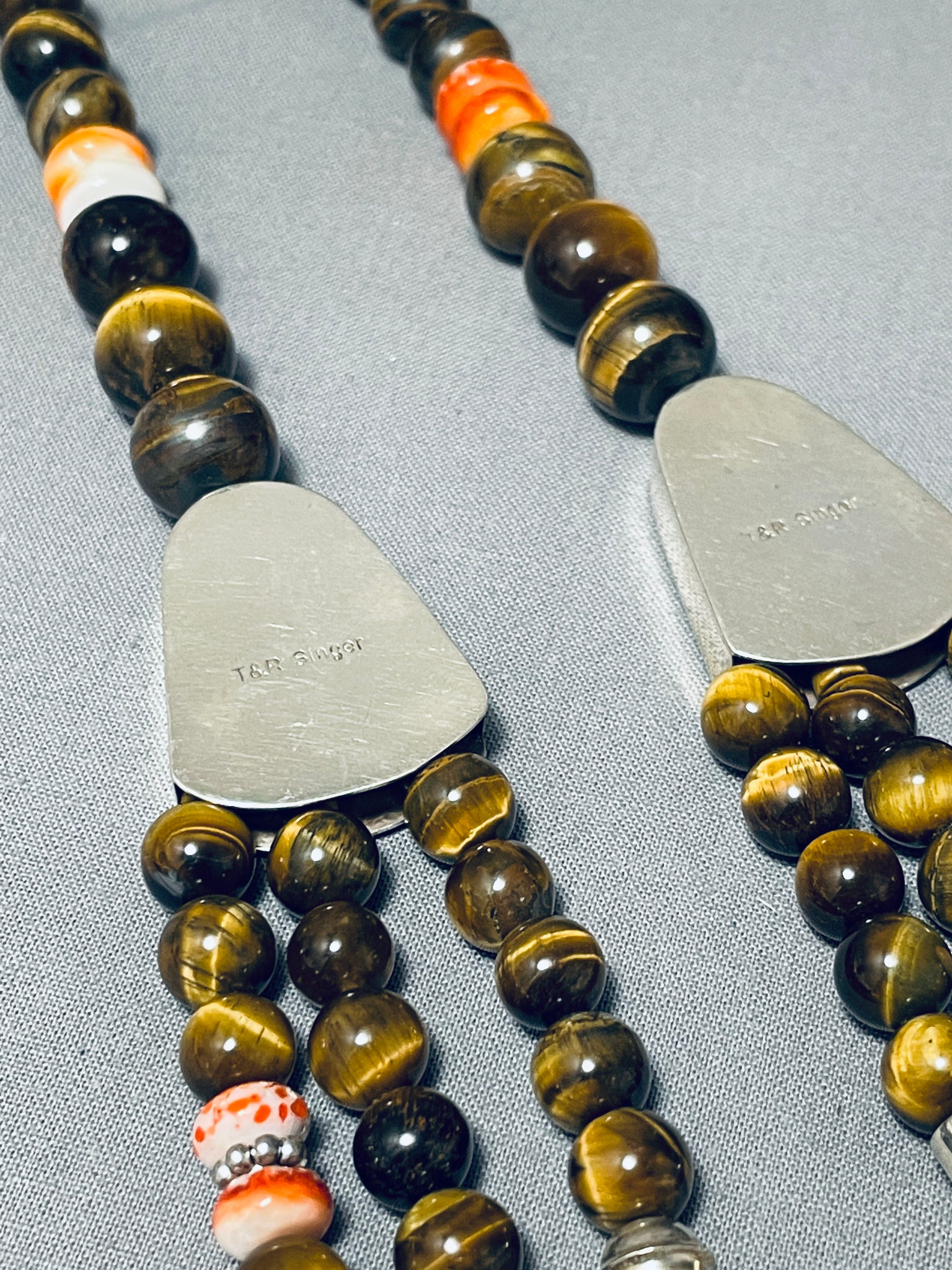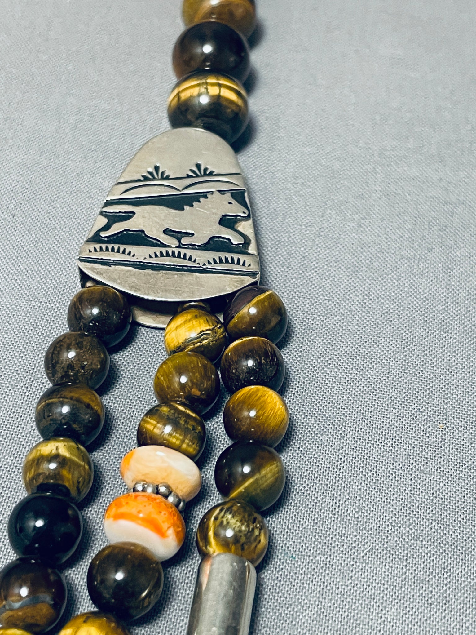 Authentic Singer Rare Native American Navajo Tigers Eye Sterling Silver Necklace