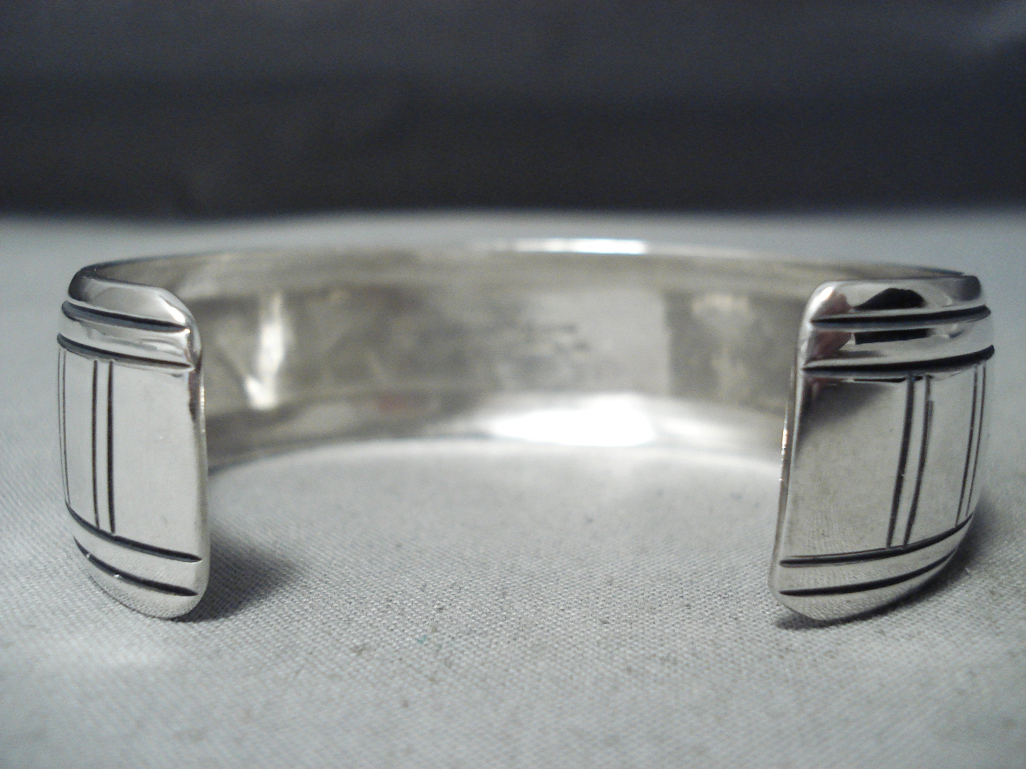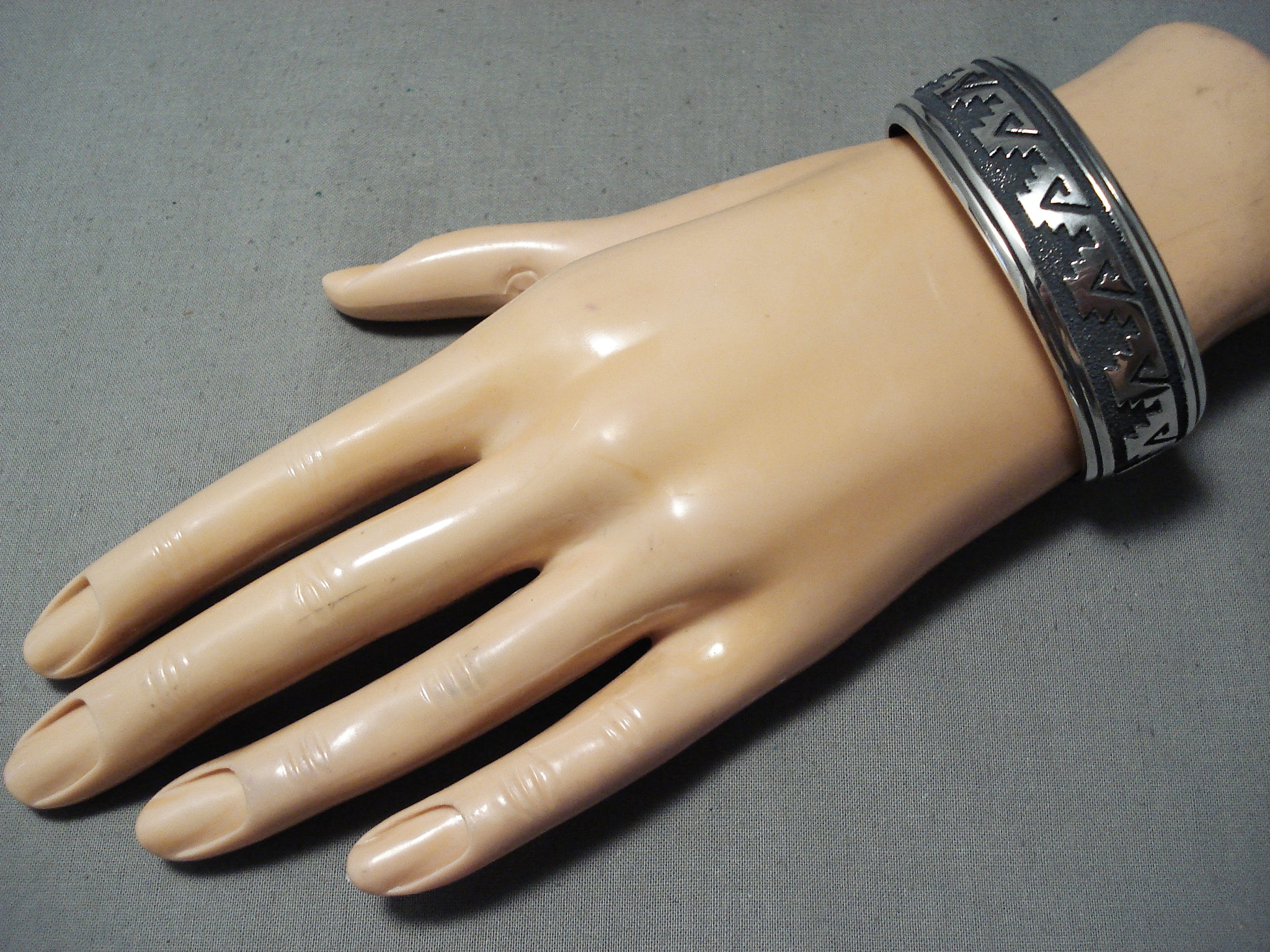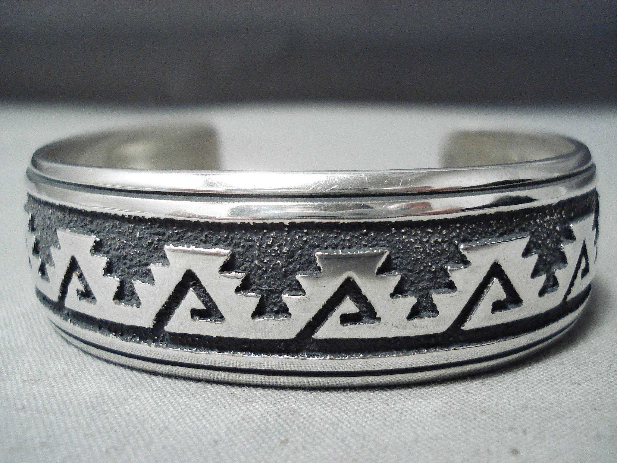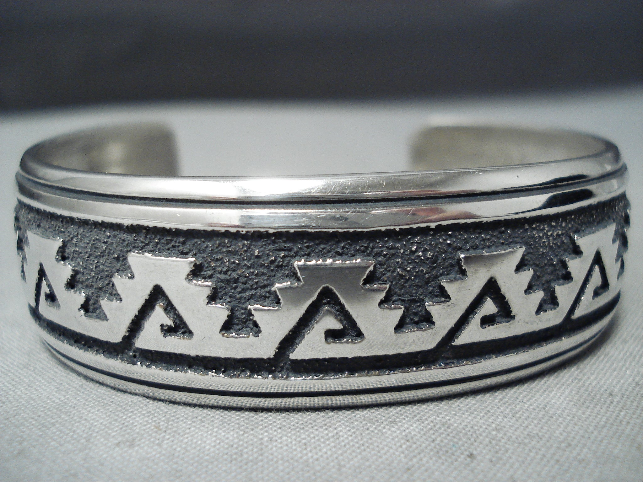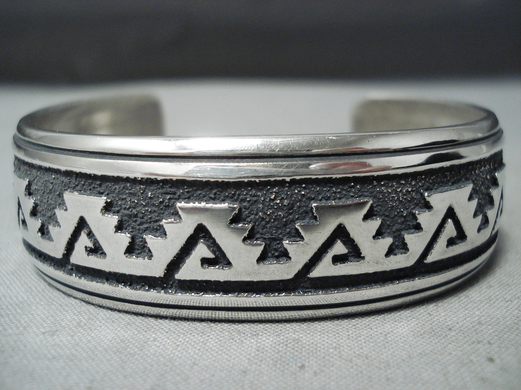 Authentic Thomas Singer Vintage Native American Navajo Sterling Silver Geometric Bracelet